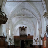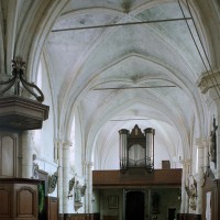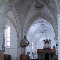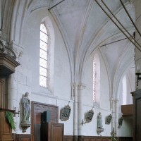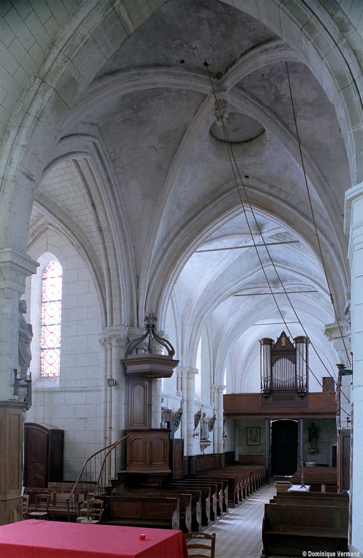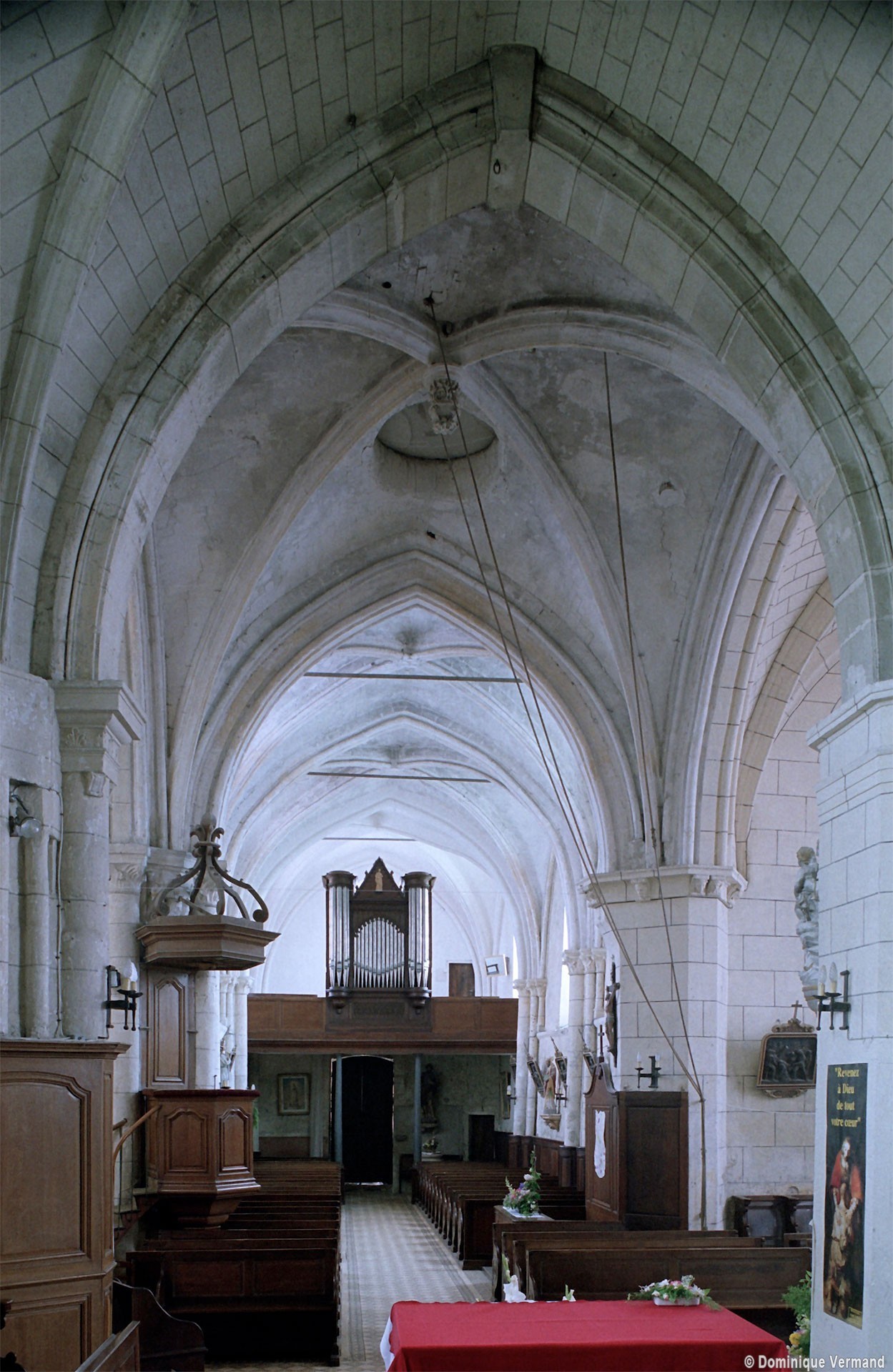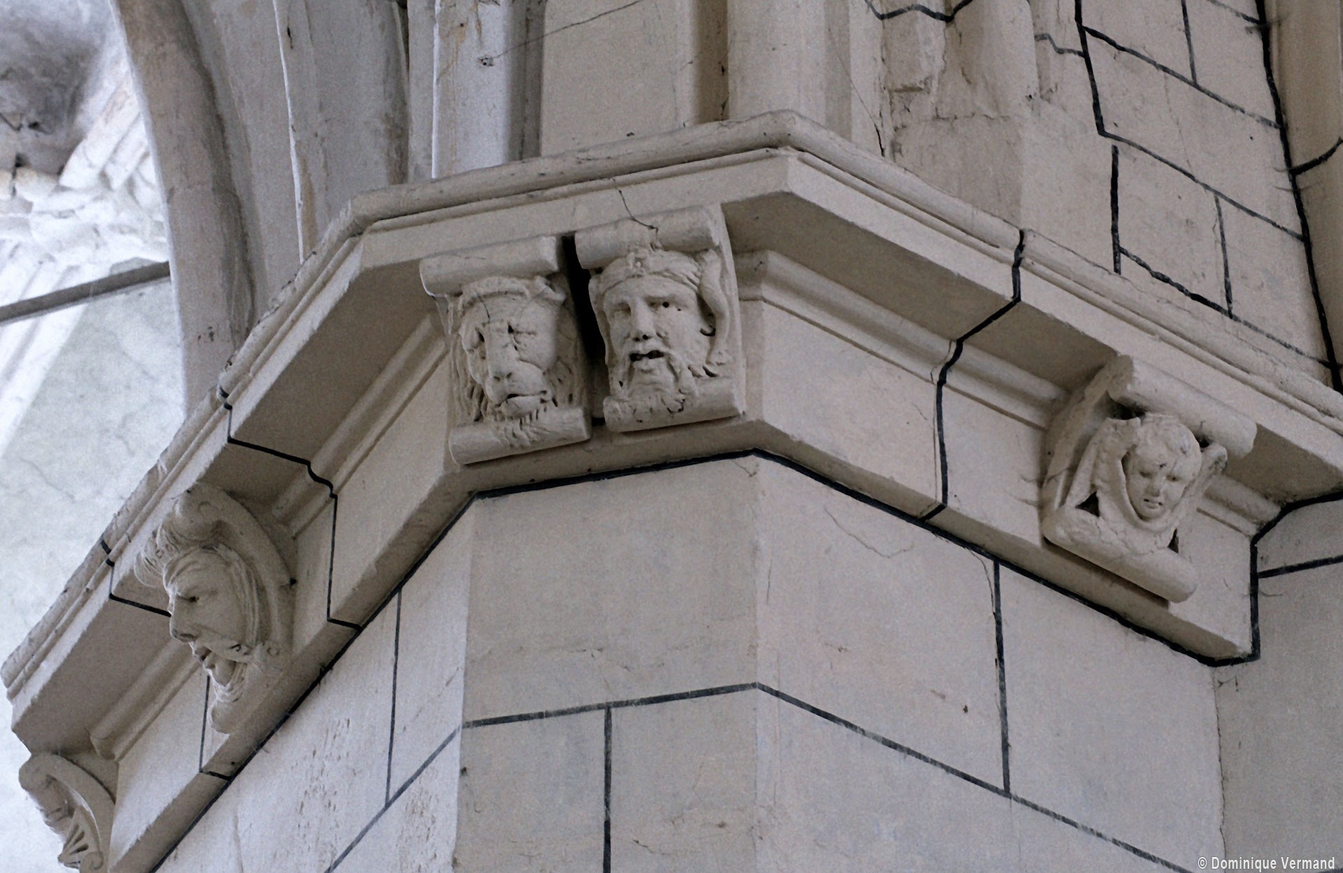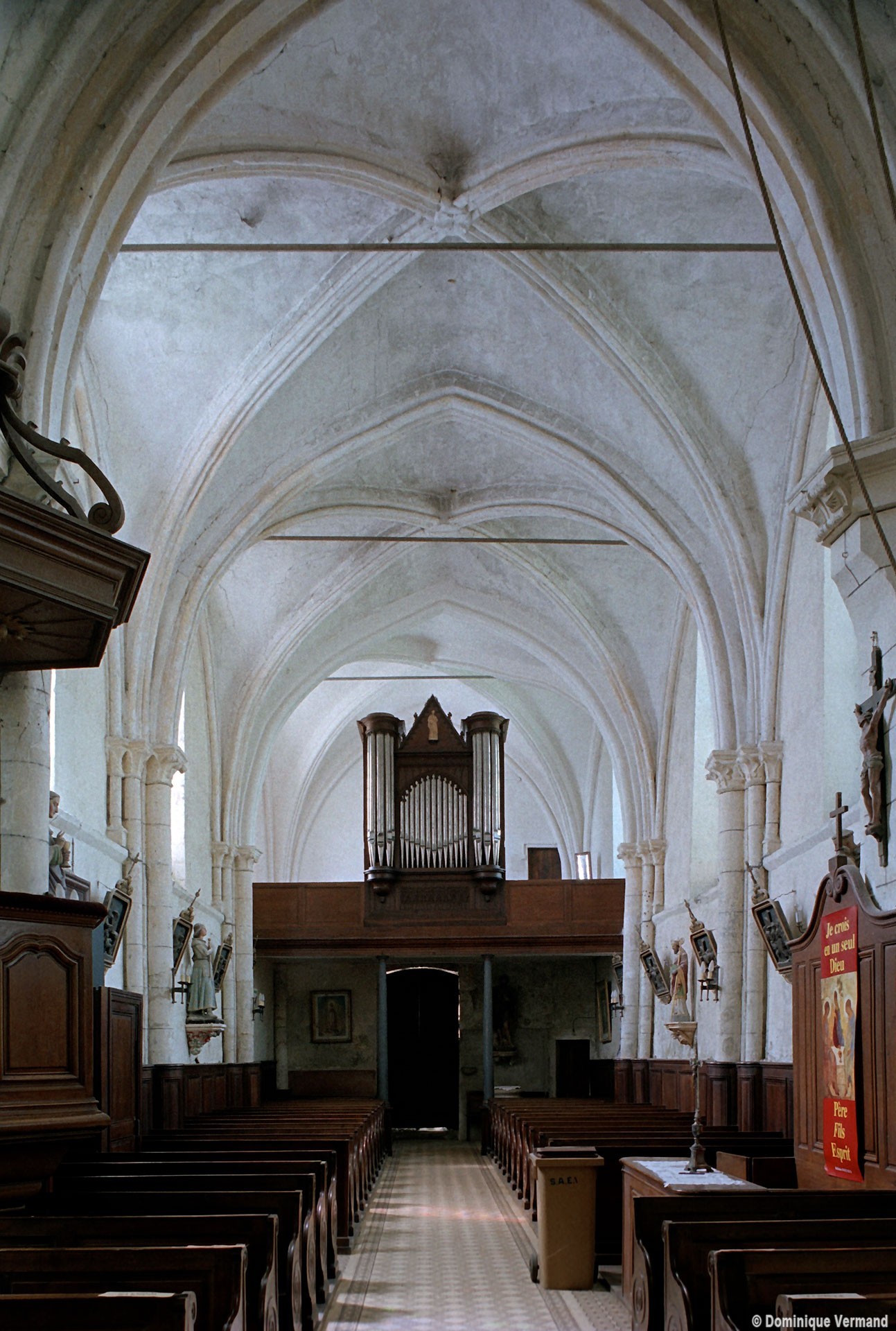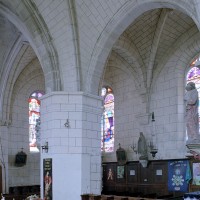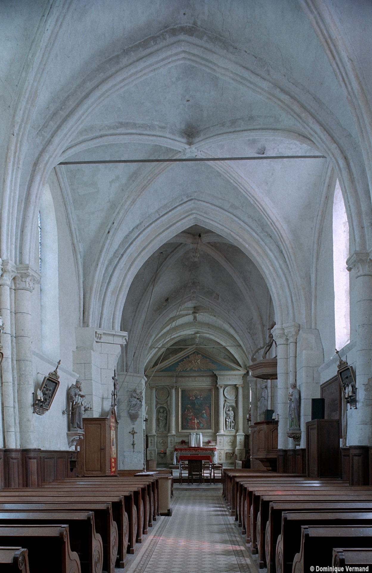 La nef, dont l’élévation est rigoureusement reprise dans le croisillon sud, est une construction très soignée et d’une grande élégance. Doubleaux, ogives et formerets de la voûte sont reçus sur un faisceau constitué d’une demi colonne et de quatre colonnettes par l’intermédiaire de chapiteaux décorés de crochets et de feuilles découpées. Contrairement à celles associées aux doubleaux et ogives, les colonnettes recevant l’arc formeret prennent naissance sur un bandeau saillant qui court à mi hauteur de l’élévation de la nef comme du transept.