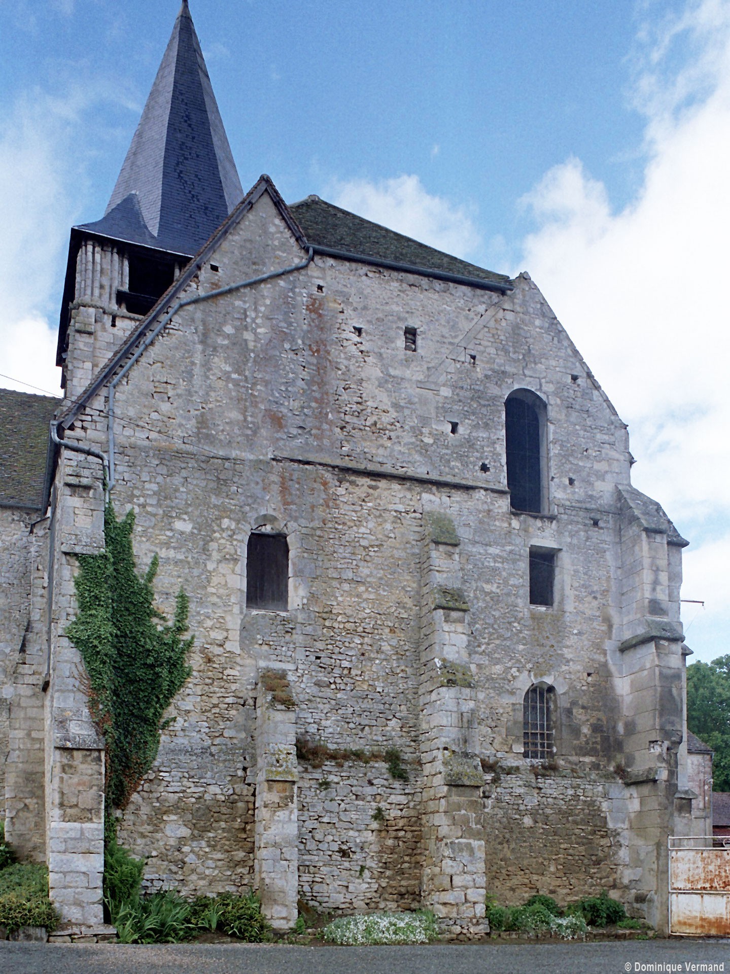 L’église remonte pour l’essentiel à la fin du 12ème siècle et son plan comprenait alors une nef unique de trois travées, un transept saillant avec clocher à la croisée et un chœur à chevet plat, parfaite illustration de la croix latine. Ce schéma sera perturbé au 16ème siècle avec le doublement vers l’est du croisillon nord, ainsi transformé en chapelle, cette dernière suivie d’une construction à deux étages qui vient s’aligner sur le chevet plat du chœur et dont la fonction reste incertaine.