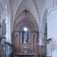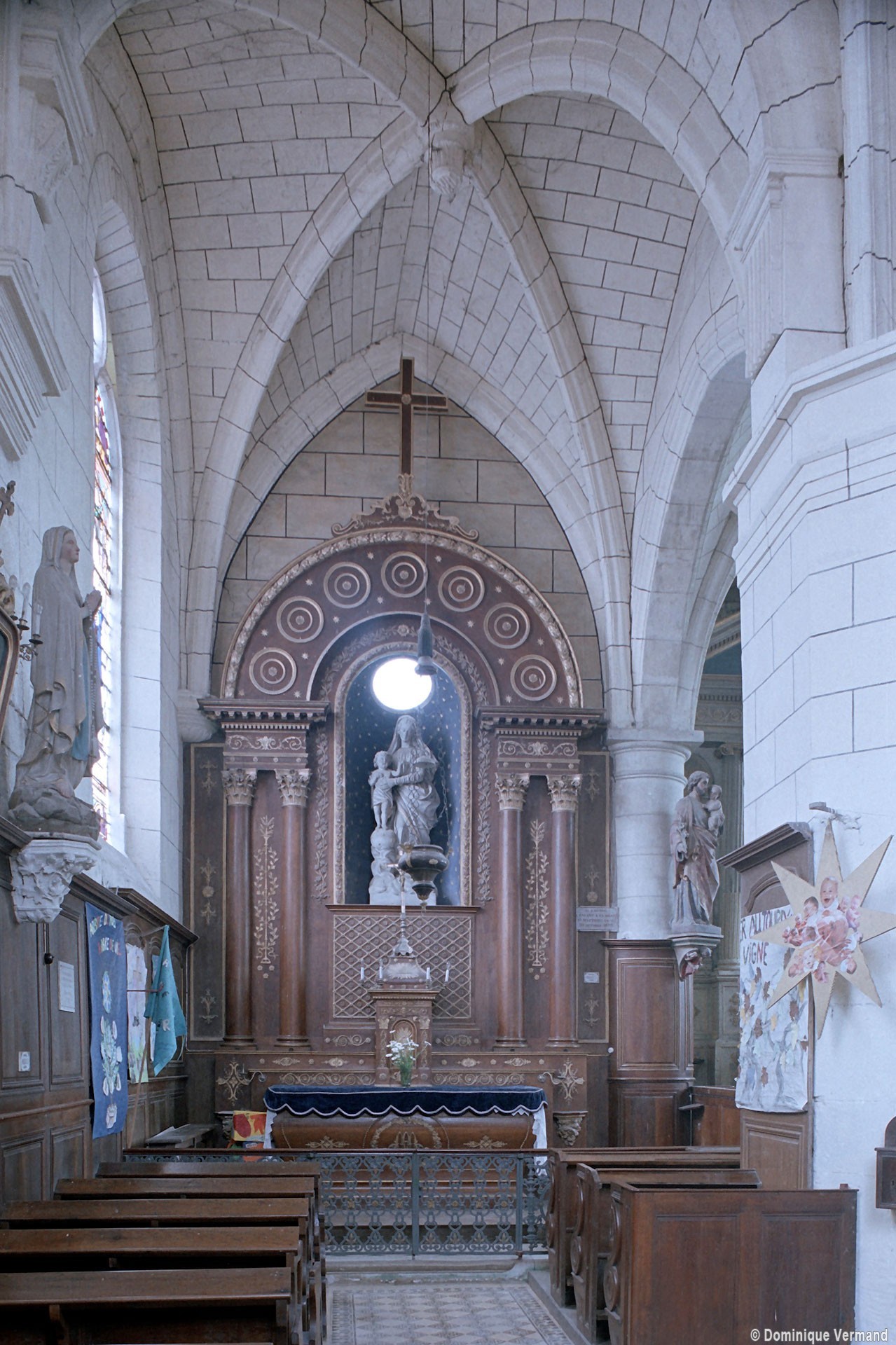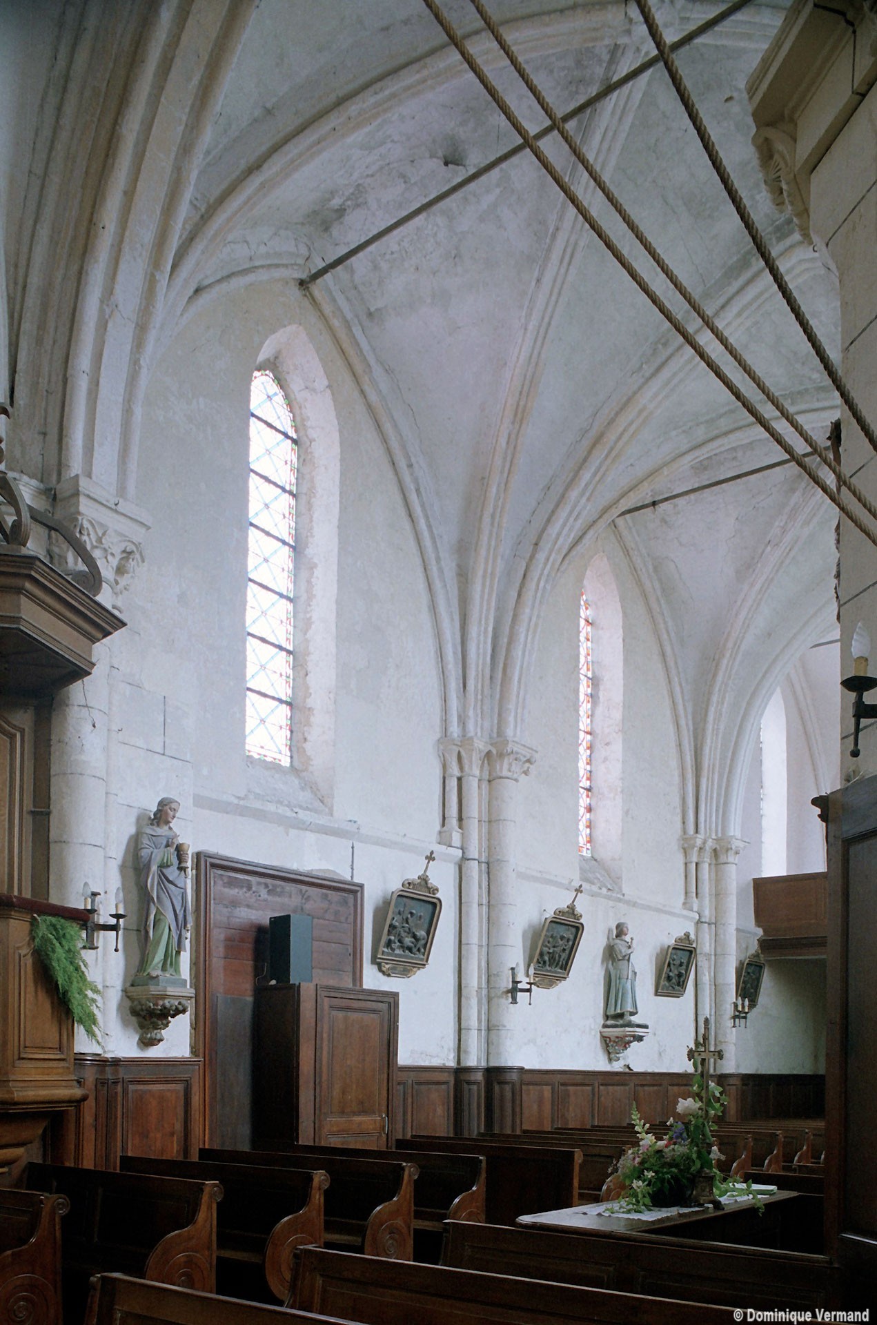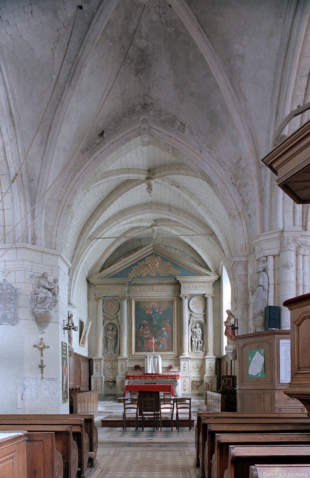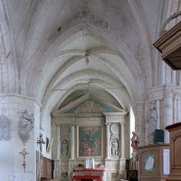 Trop reconstruit, le chœur, voûté seulement en 1898, n’a pas d’intérêt et la chapelle nord, due à la famille de Pellevé, seigneurs de Liancourt, appartient déjà, avec ses fenêtres en plein cintre, à la Renaissance. L’autel principal (néoclassique) et celui de la chapelle (néo roman) méritent d’être mentionnés, tout comme un rare petit orgue à tuyaux de 1843 dû au facteur Lété, de Mirecourt (Vosges) (2003).
