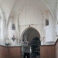 Le second quart du 16ème siècle verra à nouveau la reconstruction du chœur, dont les deux nouvelles travées sont couvertes d’intéressantes voûtes caractéristiques de ce temps. La première montre des petits arcs qui relient l’extrémité de la clef pendante aux ogives tandis que la seconde n’est constituée que de liernes et de tiercerons. Avec leur réseau en plein cintre, les fenêtres latérales appartiennent clairement à la Renaissance. Deux remarquables retables avec dais, de la fin du 16ème siècle, encadrent la travée du clocher (2003, modifié 2015).