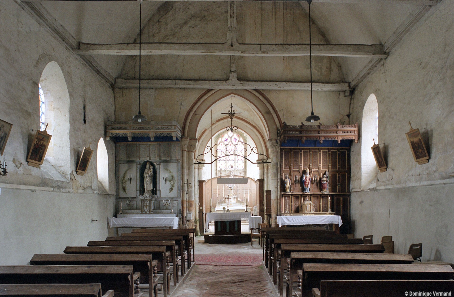 D’un abord assez austère dû en partie à l’extrême dépouillement de son clocher, Saint-Lucien est en réalité un petit édifice fort intéressant. Tout en longueur, le plan juxtapose une nef unique, une travée portant le clocher et un chœur de plan rectangulaire. La nef, construite en silex et moellons mélangés, est sans doute d’origine ancienne (contreforts plats à mi-longueur, trace de porte au nord). Elle a été largement reprise vers la fin du 12ème siècle (contreforts à ressauts, fenêtres dont l’arc brisé est souligné par une petite moulure, corniche).