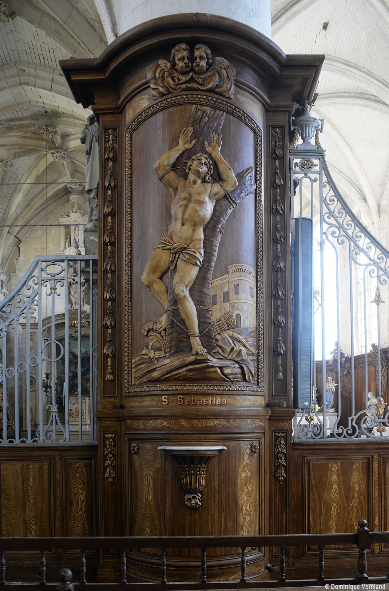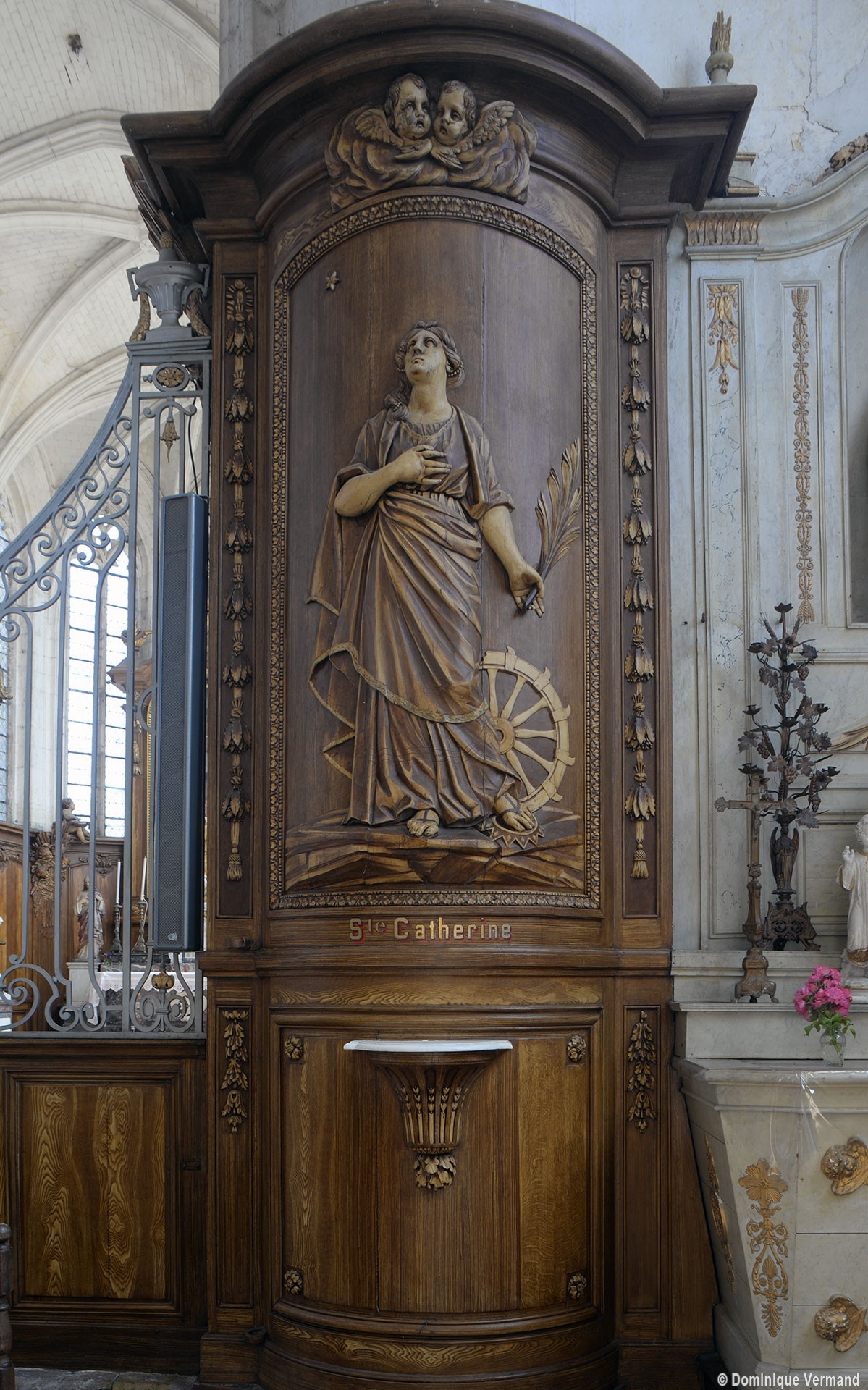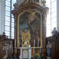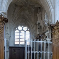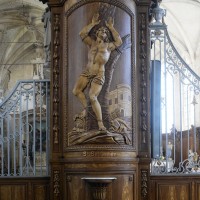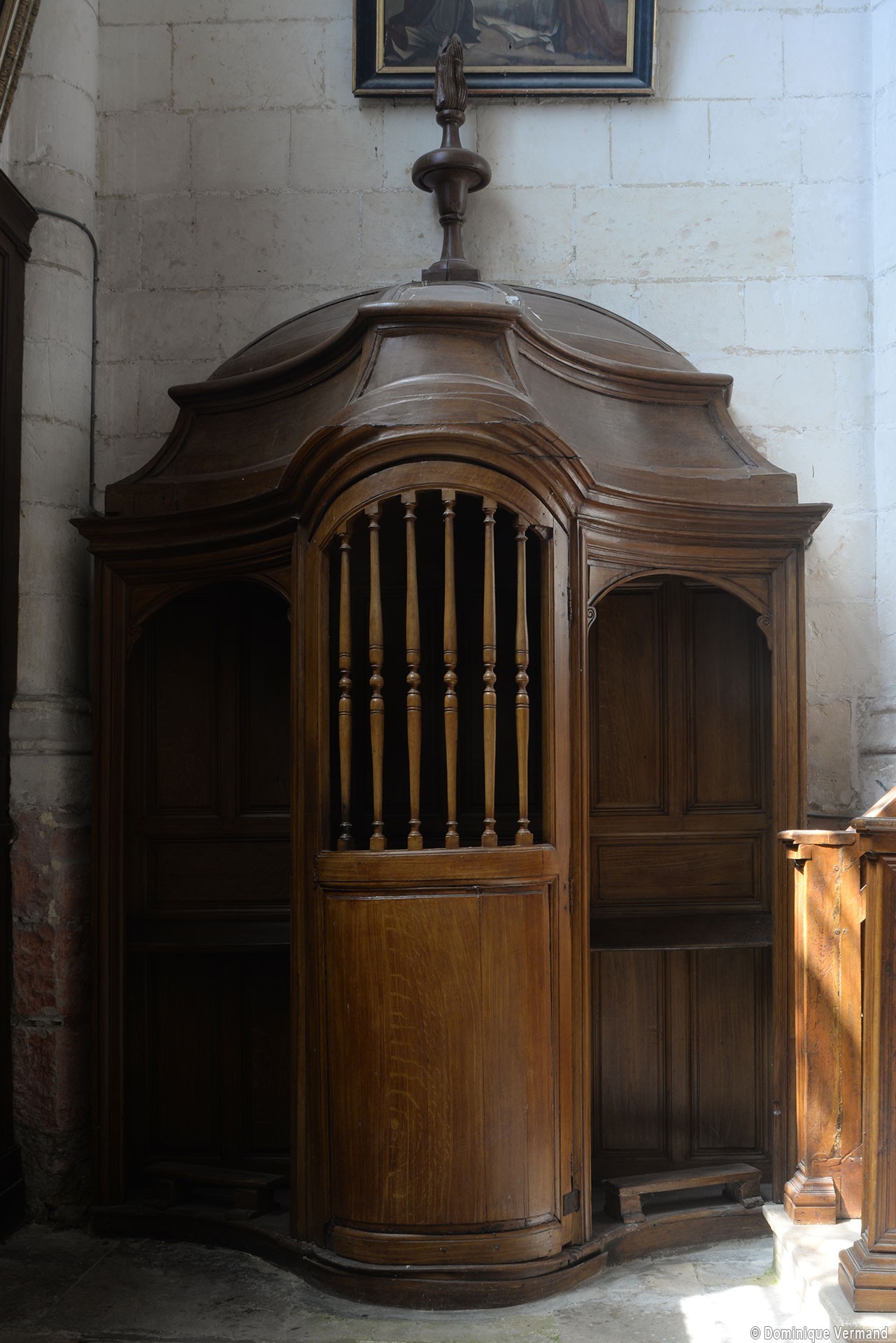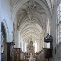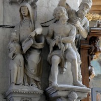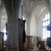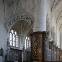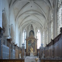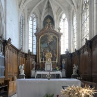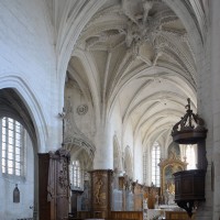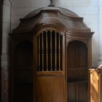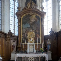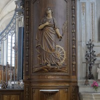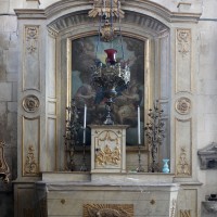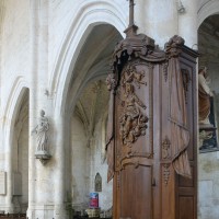 L’extérieur, dont la simplicité contraste avec la richesse de l’intérieur, est dominé par une haute tour à balustrade et dôme, bâtie en façade. La qualité du mobilier – boiseries du chœur du 18ème siècle, diverses sculptures dans la chapelle de la Vierge, dont un « Ange au lutrin » – ajoute à l’intérêt de ce bel édifice (1982).