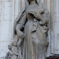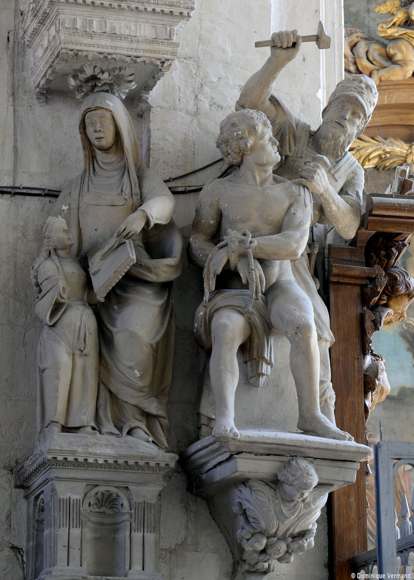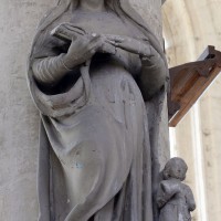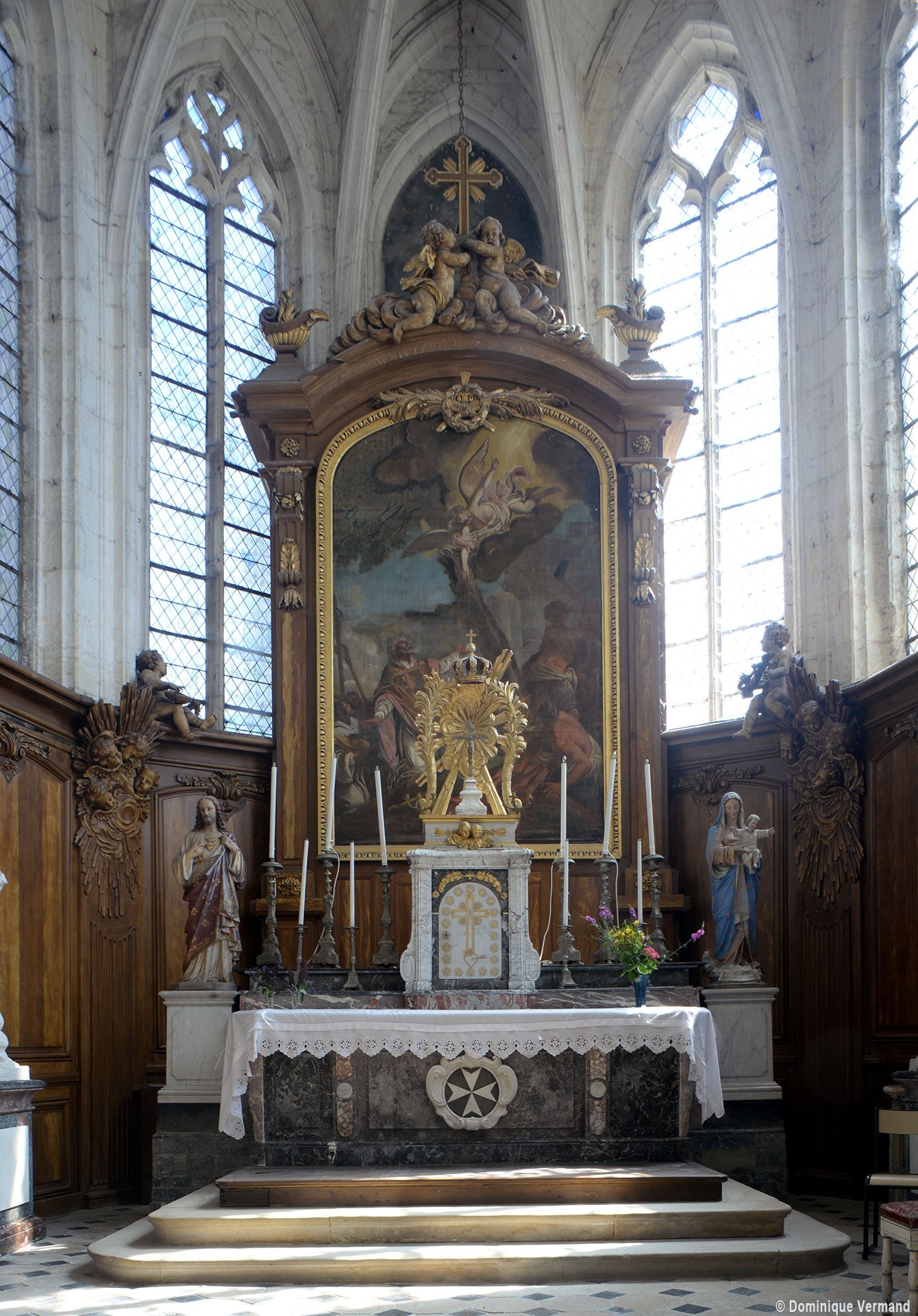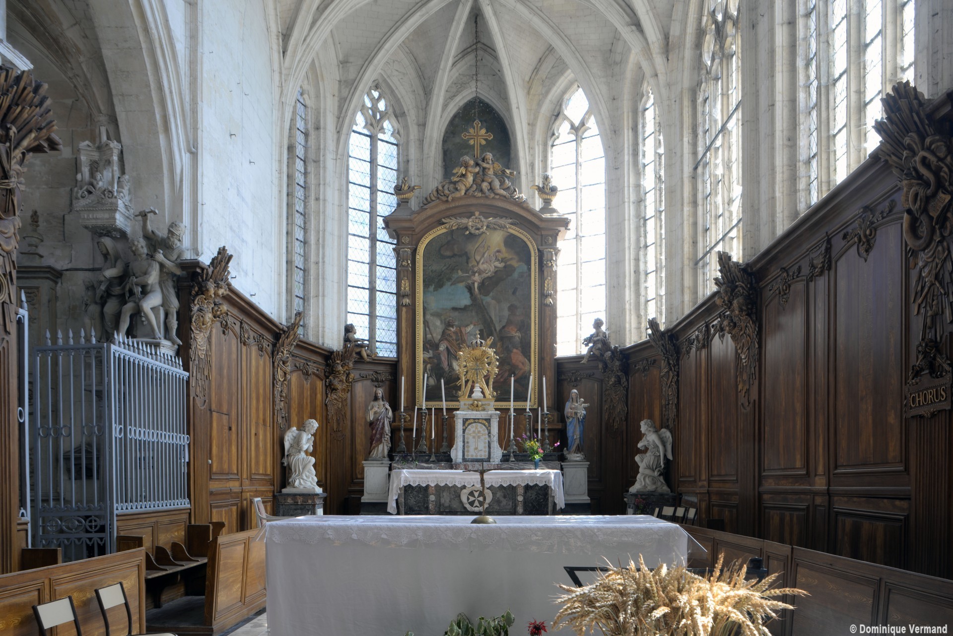 L’extérieur, dont la simplicité contraste avec la richesse de l’intérieur, est dominé par une haute tour à balustrade et dôme, bâtie en façade. La qualité du mobilier – boiseries du chœur du 18ème siècle, diverses sculptures dans la chapelle de la Vierge, dont un « Ange au lutrin » – ajoute à l’intérêt de ce bel édifice (1982).