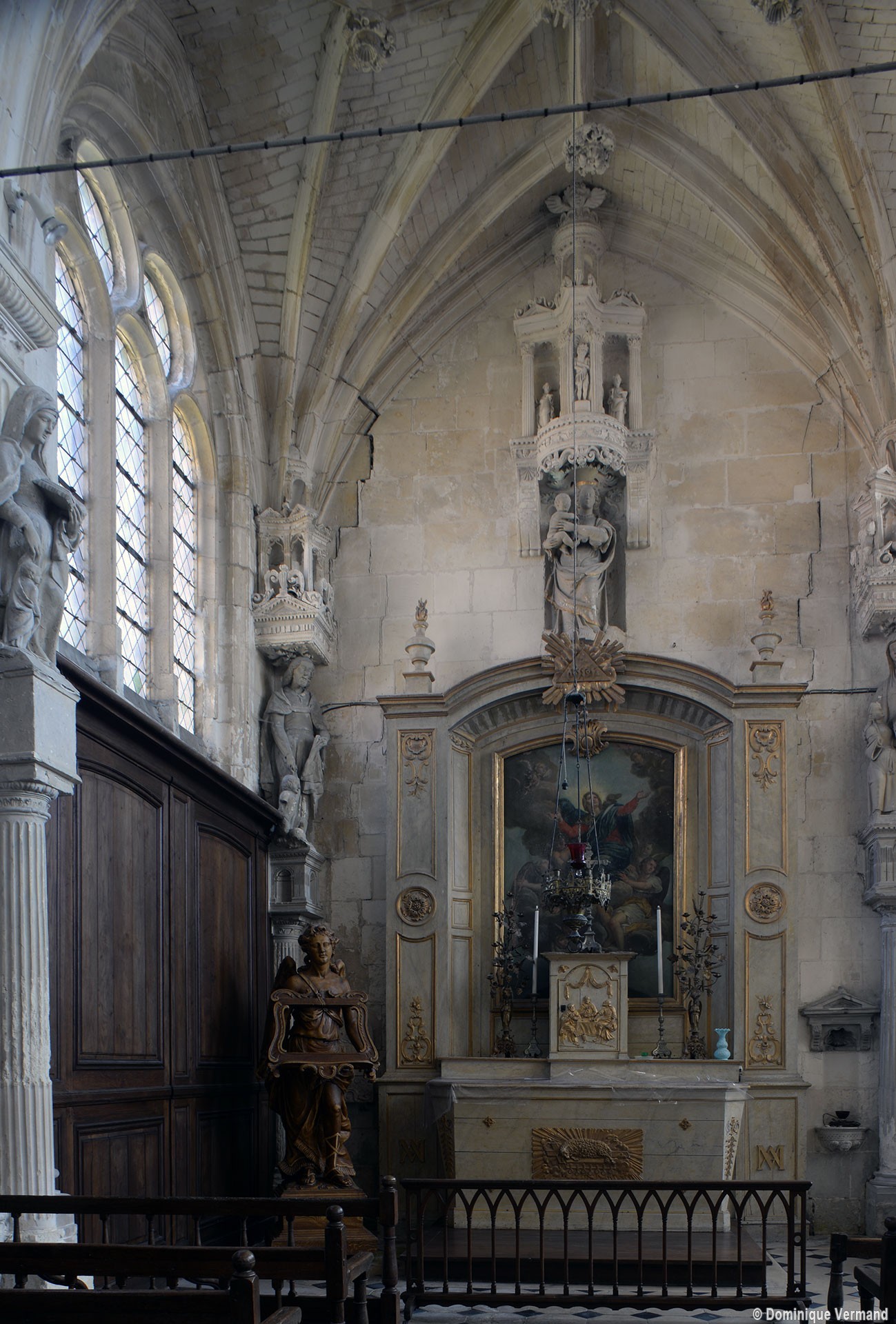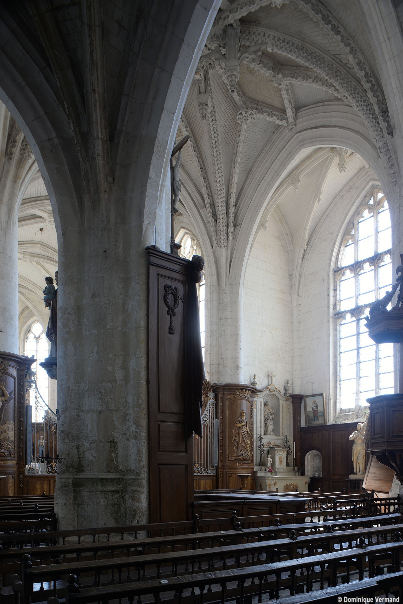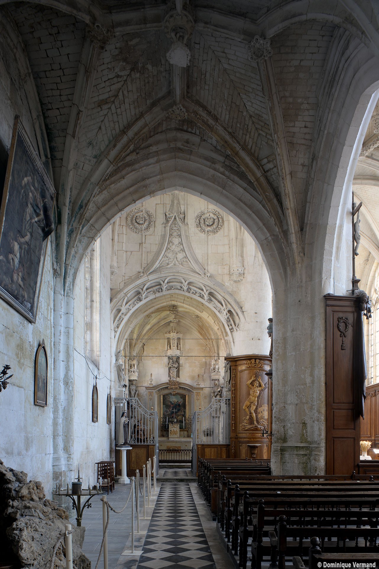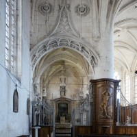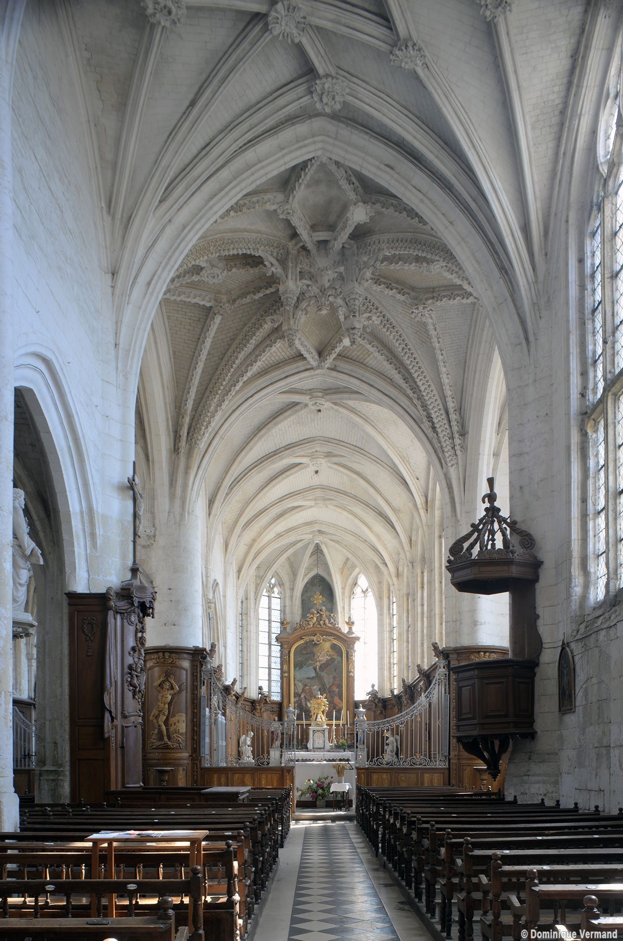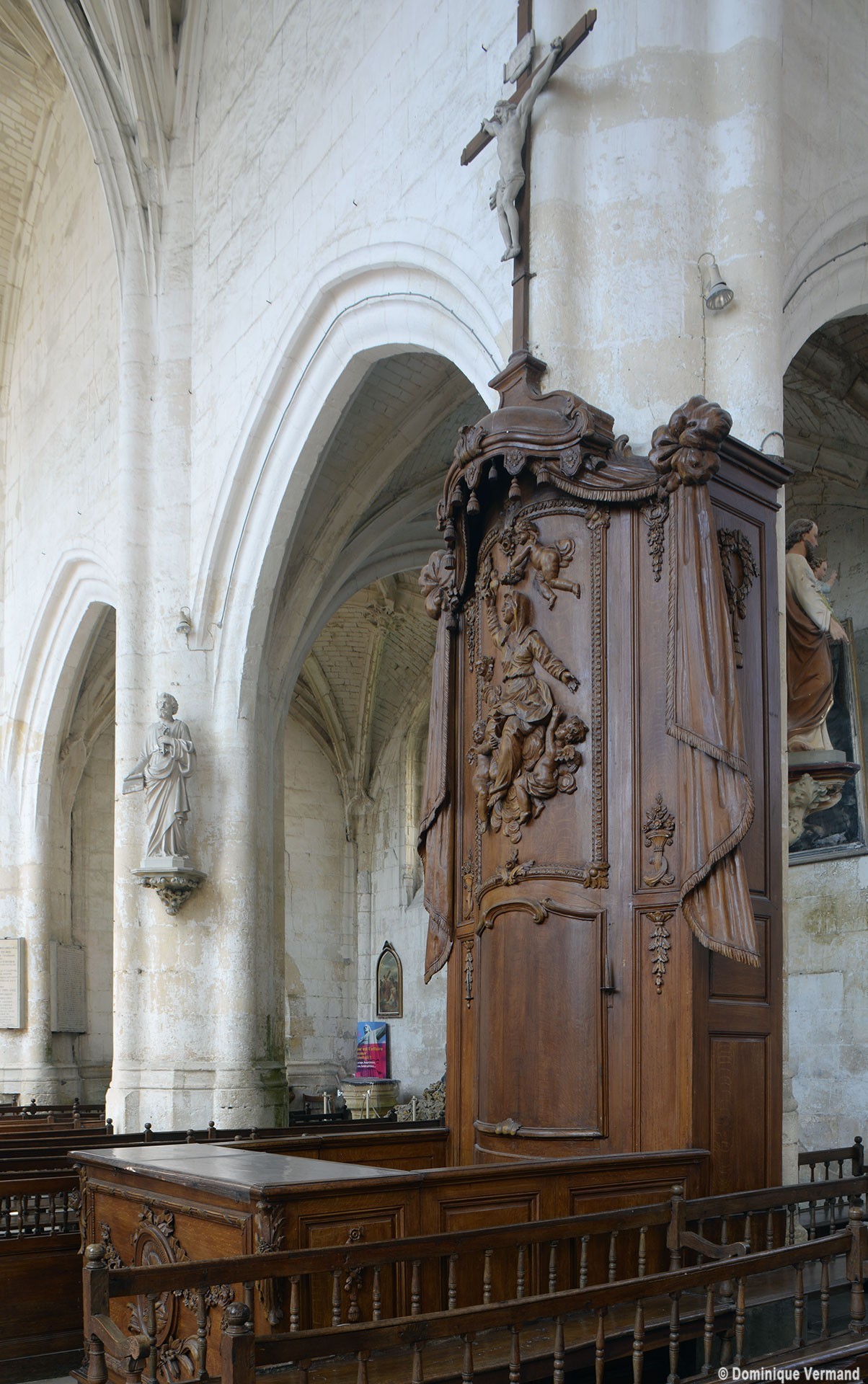 Incluse, comme Maignelay et Ravenel, dans le duché d’Halluin, elle apparaît comme un édifice de style gothique flamboyant, mélangé de quelques éléments de la Renaissance (chapelle de la Vierge, au nord du chœur). Simple dans le chœur, le réseau des voûtes se complique de liernes et de tiercerons ailleurs, et l’on remarquera surtout les ogives et clefs pendantes très délicatement ouvragées de la croisée du transept, où les voutains, comme au bras nord du transept, sont en outre curieusement appareillés.