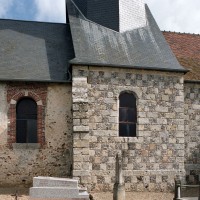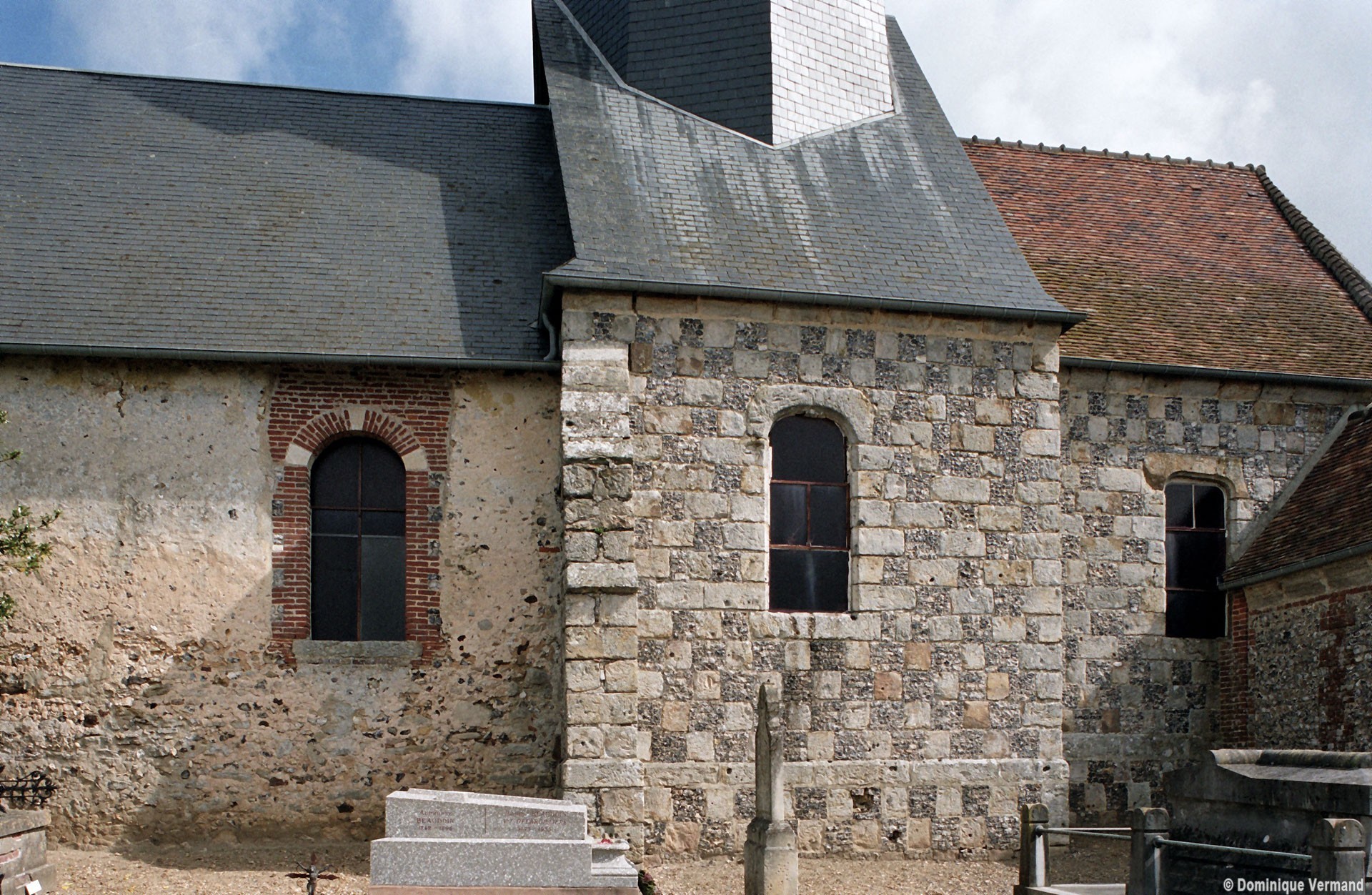 Construits en moellons mélangés à du silex, il se peut que le mur sud de la nef et la façade soient d’origine romane. Le choeur et les deux excroissances qui le précèdent, qui présentent un bel exemple de damier de grès et de silex, sont du 16ème siècle, de même que le mur nord de la nef, élargie à l’occasion de ces travaux.
