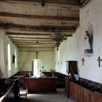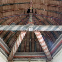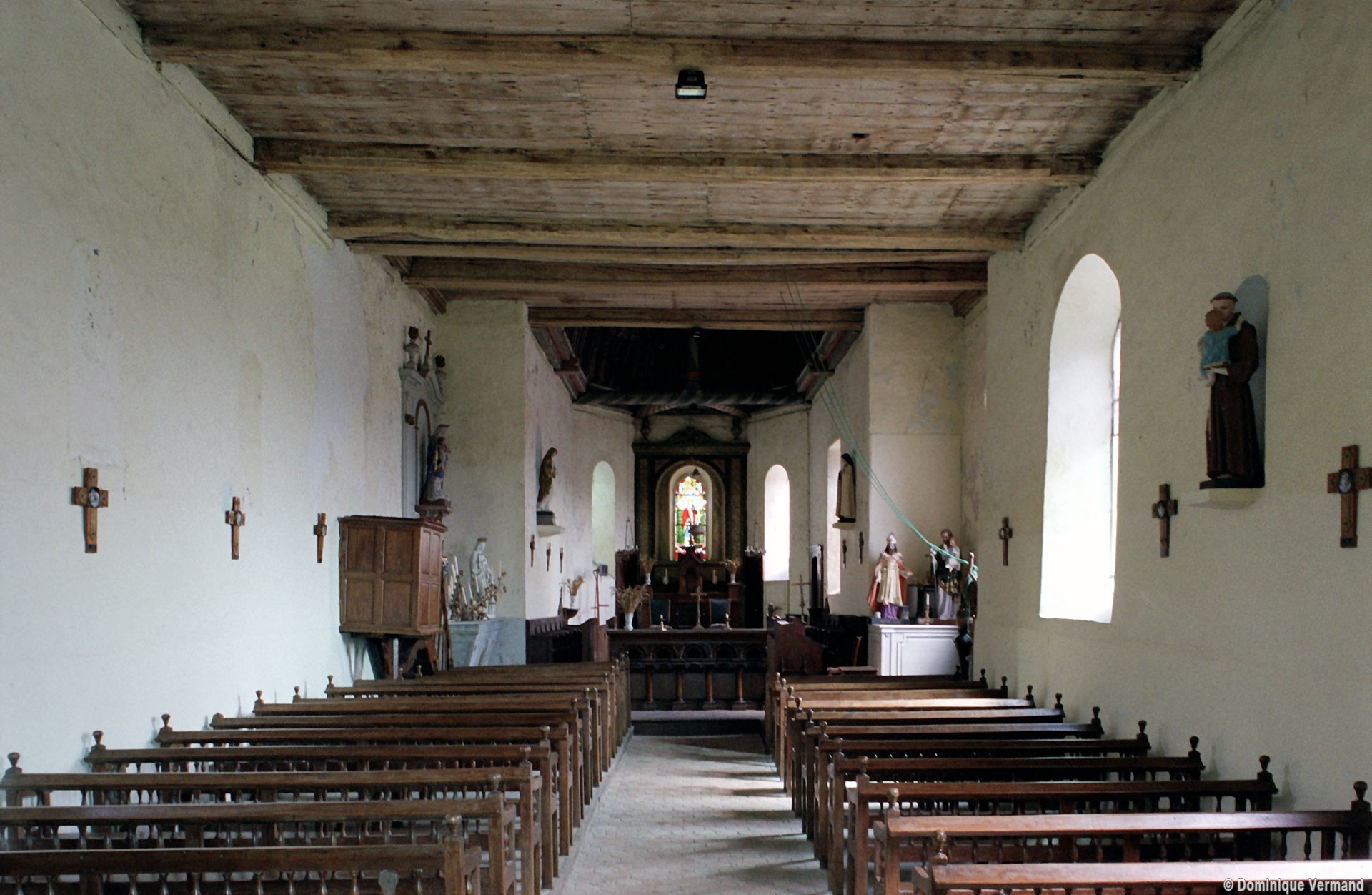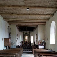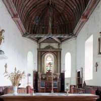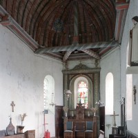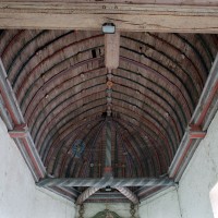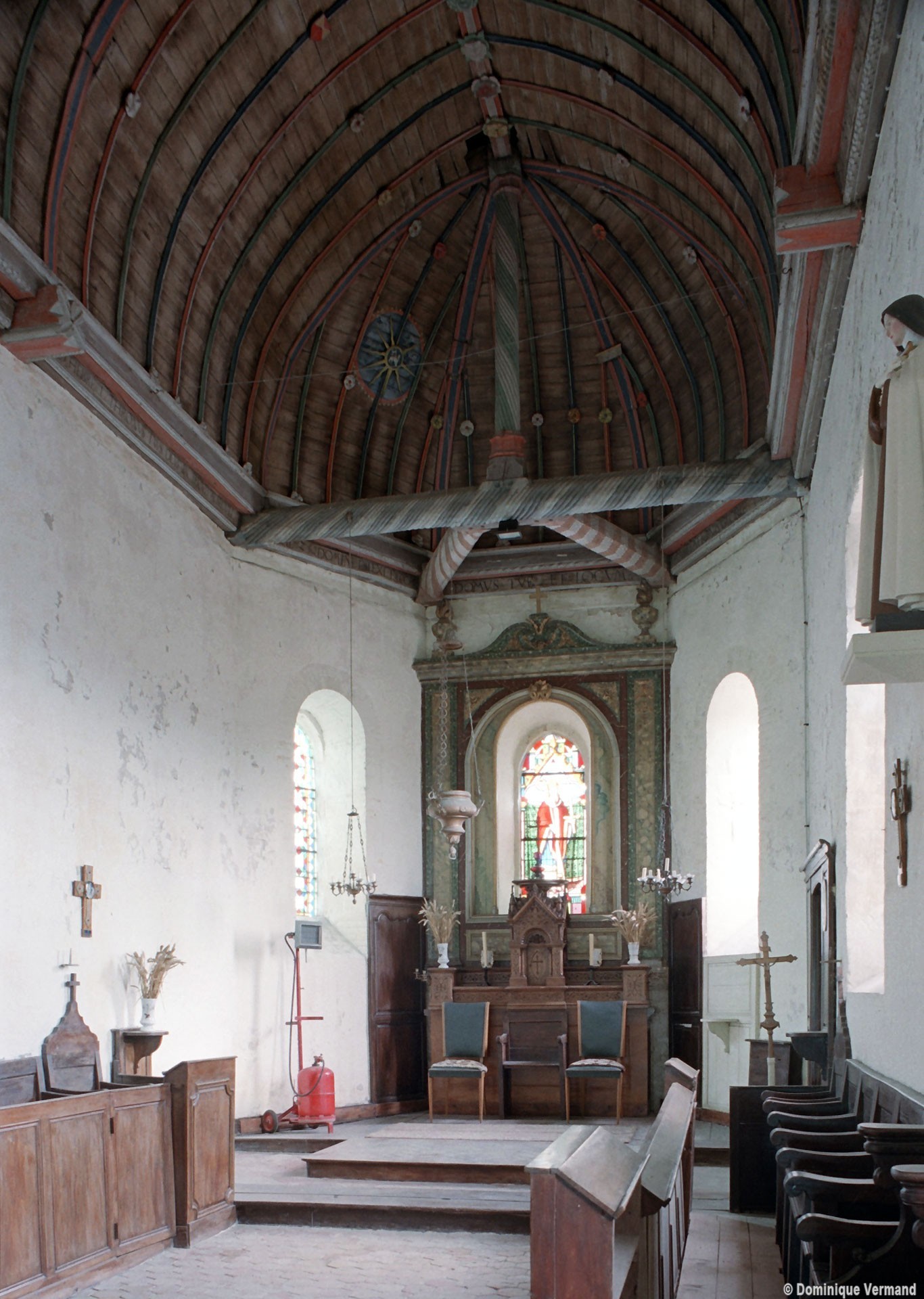 Le véritable trésor de Saint-Martin est l’exceptionnelle charpente du choeur, également du 16ème siècle. Son berceau en forme de carène renversée repose sur une sablière où court, tout du long, une inscription en latin. Les chevrons et la clef sont décorés principalement de petites fleurs et d’un grand soleil. Un entrait et un poinçon torsadés marquent la limite de l’abside et la polychromie en vert, blanc et rouge évoque certainement les couleurs d’origine (2007).