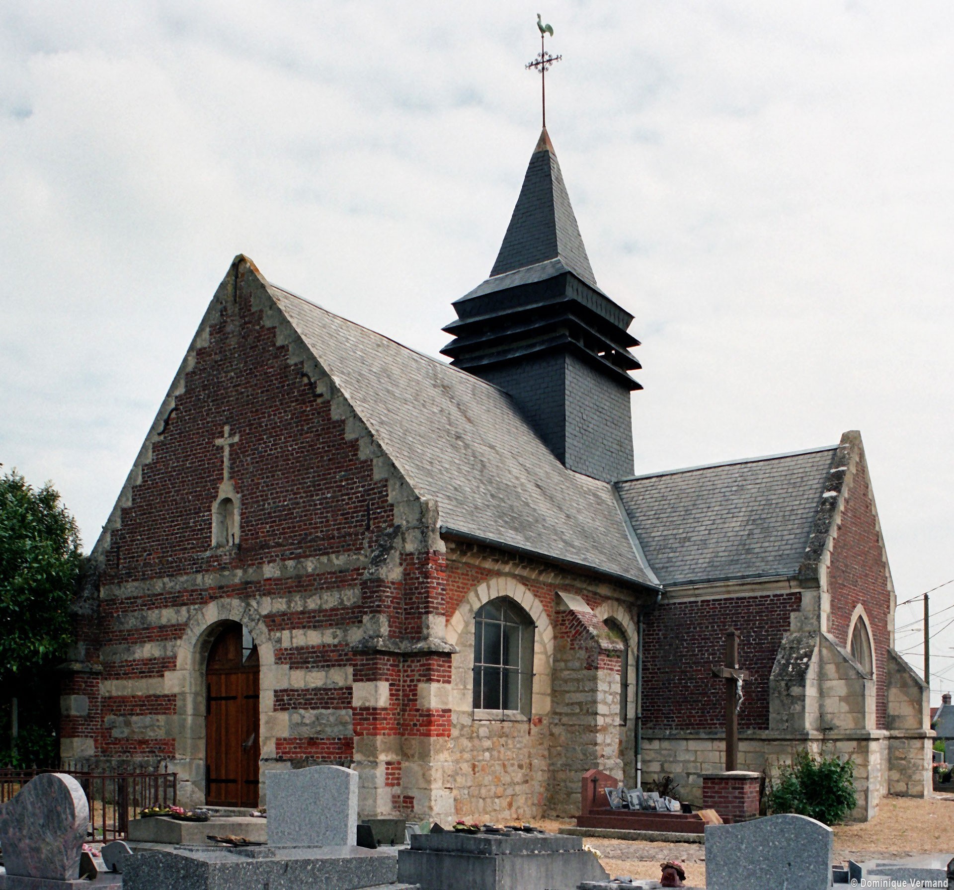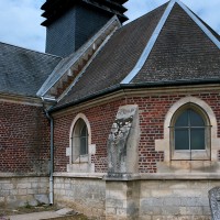 Seule partie ancienne, la nef comporte au sud deux arcades brisées bouchées, dont la date est difficile à préciser, et qui correspondaient à un bas-côté disparu. Construite en assises alternées de briques et de pierre, la façade doit être du 17ème ou 18ème siècles. Le pignon a été refait après la Guerre. L’intérieur, qui n’a aucun caractère, se signale simplement par les deux arcs surbaissés qui marquent la travée intermédiaire (2008).