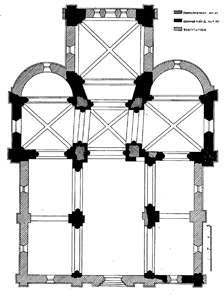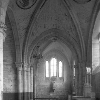 Dans les années 1130, les parties orientales sont reconstruites et comportent alors un transept sur lequel se greffent – disposition rare – un chœur de plan carré accosté de deux absidioles en hémicycle. Si les absidioles ont disparues – leur amorce ne permet cependant pas de douter de leur existence – les deux bras du transept et le chœur subsistent. Leurs voûtes sur croisées d’ogives, de conception encore archaïque, appartiennent à la même famille que celles de Cambronne-les-Clermont, Bury, Ully-Saint-Georges….comme le prouvent la forme générale de la voûte, le profil des ogives et les chapiteaux à volutes perlées, communs à ces églises.
