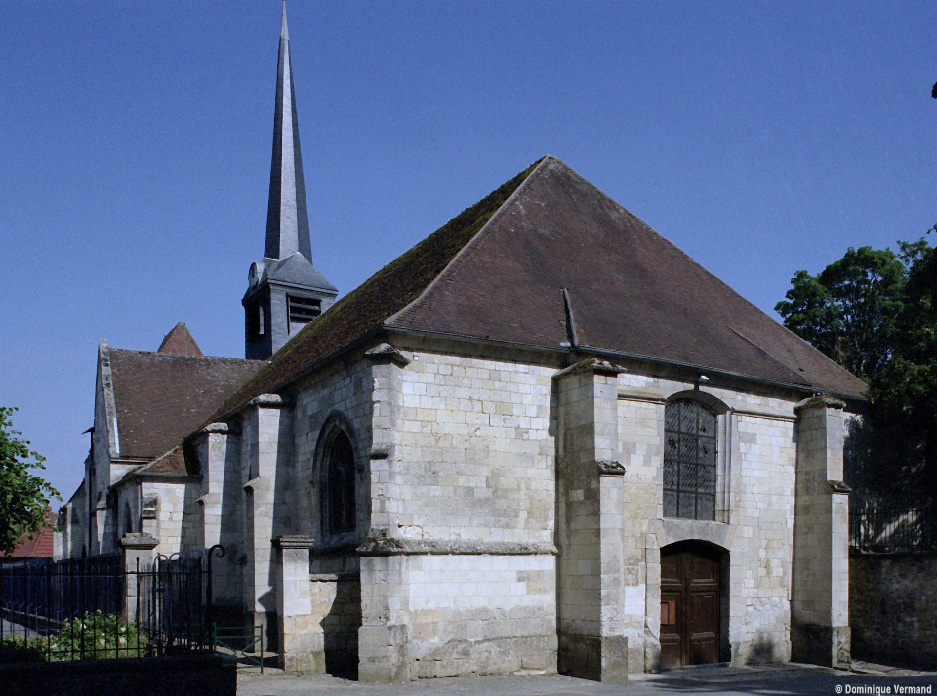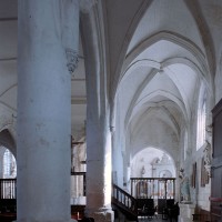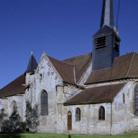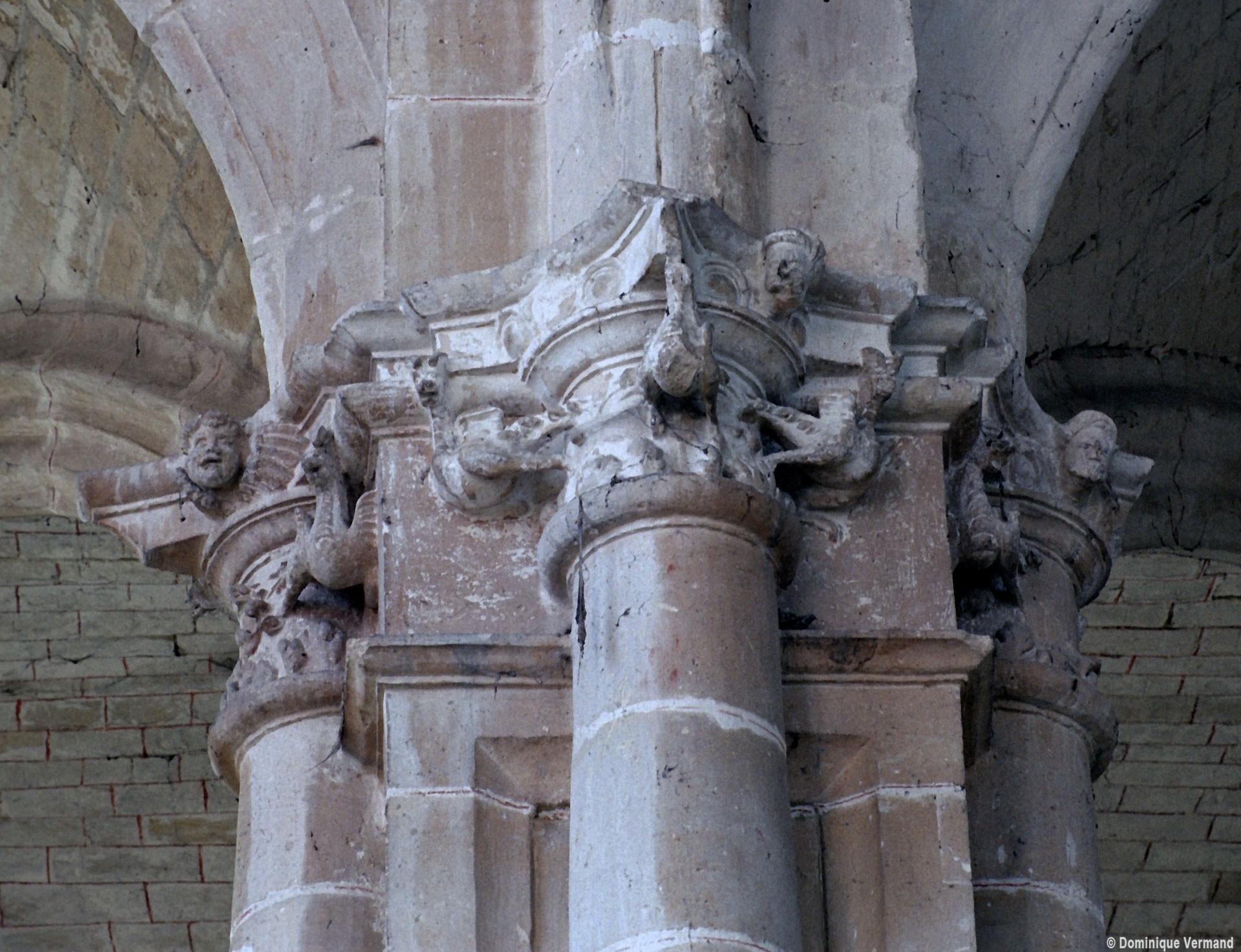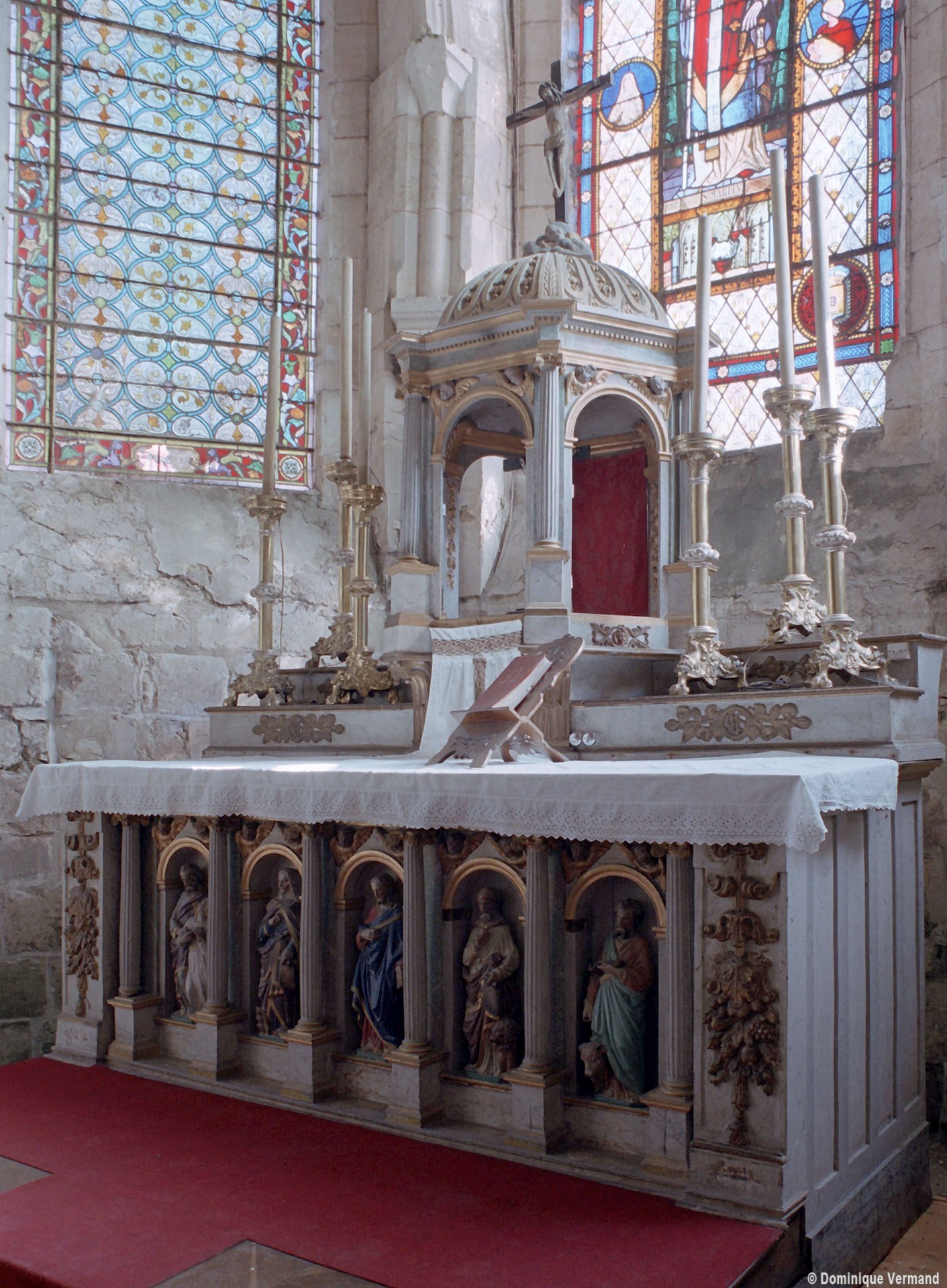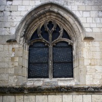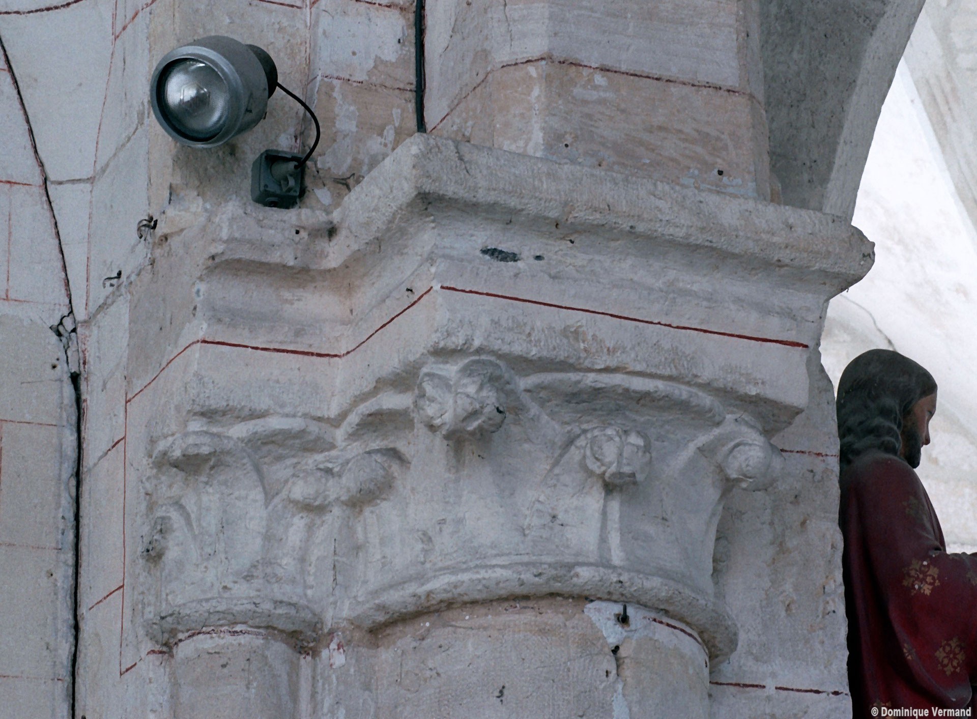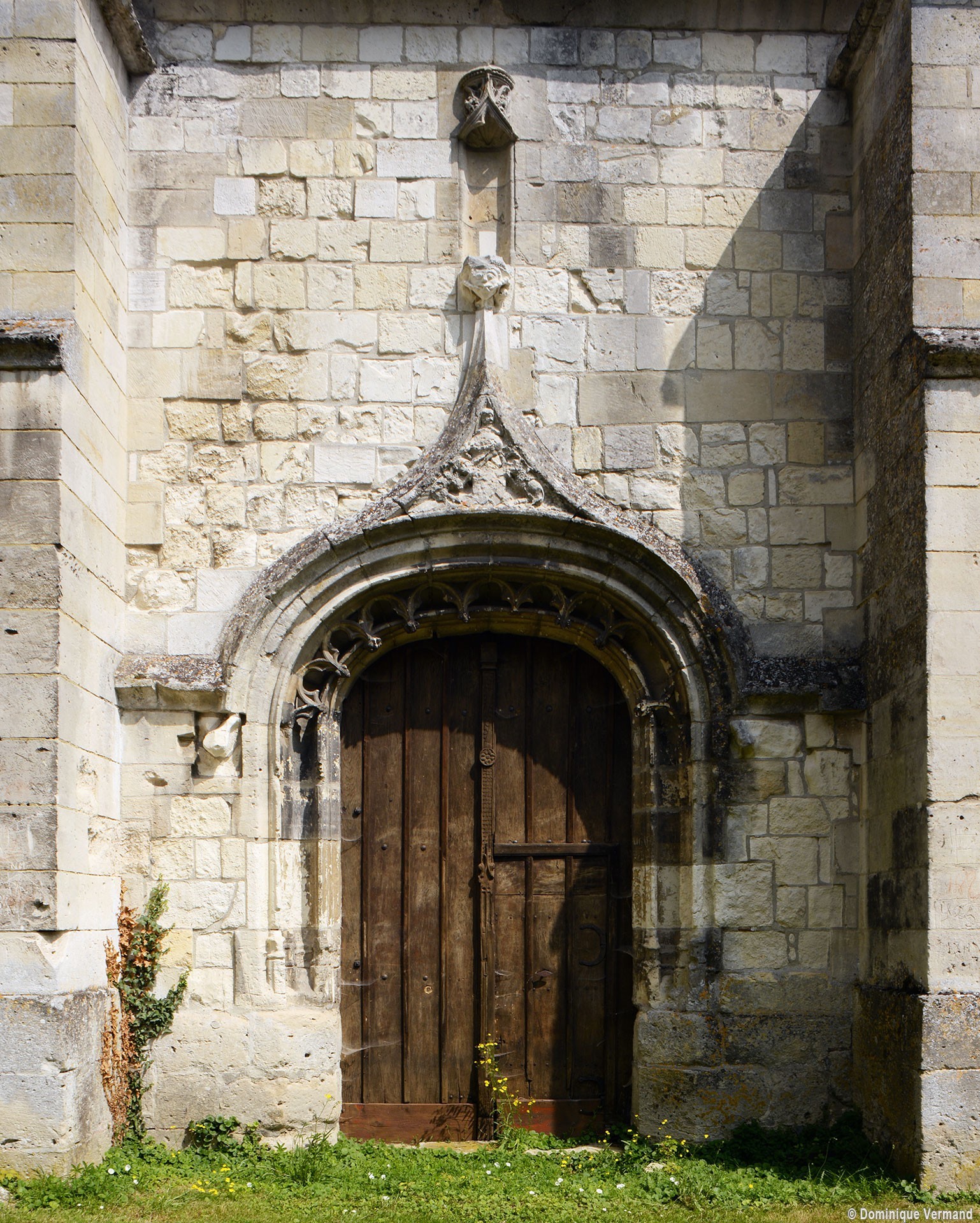 Implanté en bordure du parc du château, Saint-Martin est un vaste édifice à l’histoire monumentale particulièrement tourmentée. La chronologie appelle d’abord le choeur, composé d’une travée droite et d’une abside à cinq pans, datable vers 1200 d’après les quelques chapiteaux authentiques conservés, notamment ceux associés à l’arc triomphal. Les voûtes, comme les fenêtres, ont été refaites au 16ème siècle, puis restaurées au 19ème.