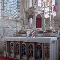 Le riche mobilier de l’église se signale avant tout par une exceptionnelle clôture de choeur en chêne de la fin du 15ème siècle, à la sculpture raffinée de style gothique flamboyant. Il est complété par une Vierge à l’Enfant du 14ème siècle, un Christ aux Liens du 16ème siècle et une cuve baptismale de la Renaissance (2008).