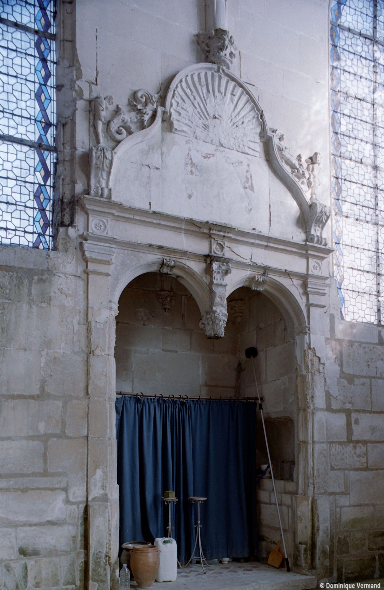 La partie la plus remarquable de l’église est sans conteste la chapelle bâtie à l’angle du croisillon nord et du choeur, magnifique illustration du style renaissance. Il est tentant de l’attribuer à Jean III d’Humières, qui fit également rebâtir le château. Parfait exemple de chapelle seigneuriale, elle comporte également un enfeu ménagé dans le mur nord, à cheval sur les deux travées. Les deux voûtes d’ogives – dotées d’une lierne (nervure supplémentaire) – possèdent trois clefs délicatement ouvragées. La pile recevant la double arcade qui met la chapelle en communication avec le choeur comporte trois chapiteaux sculptés avec virtuosité de têtes d’anges et de griffons. Cette exceptionnelle qualité se retrouve aux deux dais qui encadrent la fenêtre du chevet et à l’enfeu, traité comme une architecture en miniature et dont le tympan, couronné par une grande coquille Saint-Jacques, conserve les traces d’un blason peint.