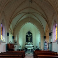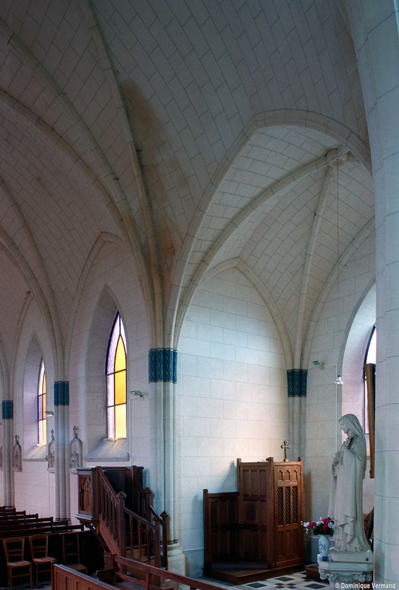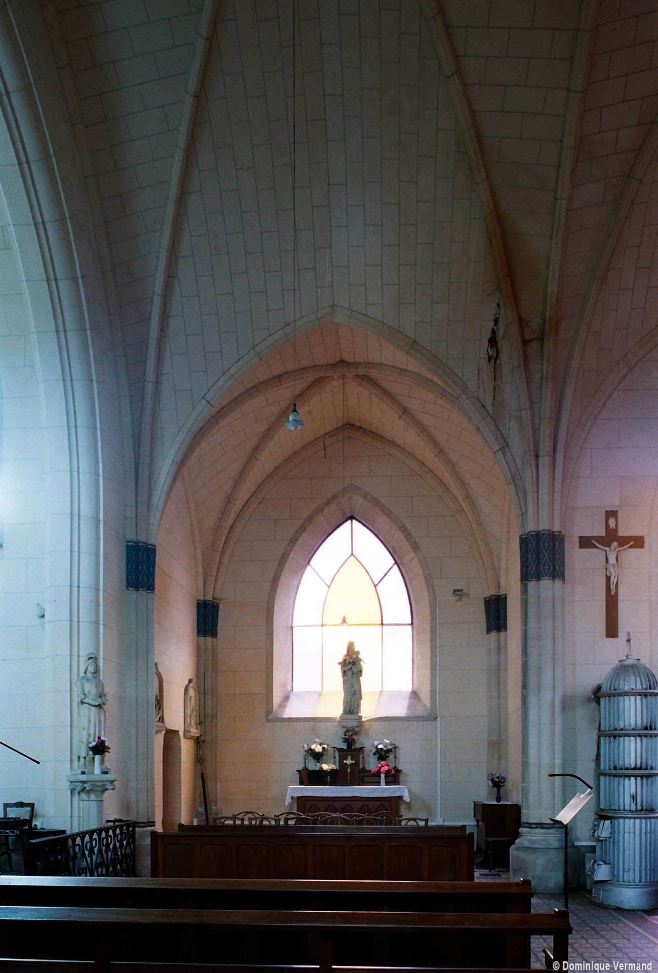Faisant face aux vestiges d’une construction médiévale du 14ème siècle, l’église Notre-Dame a été entièrement rebâtie après la Guerre 14-18. De plan classique – une nef unique de trois travées, un transept saillant et un choeur pentagonal – elle tire son originalité du massif de façade qui la précède.