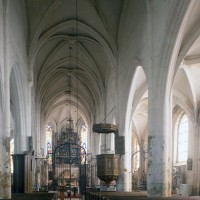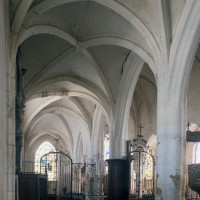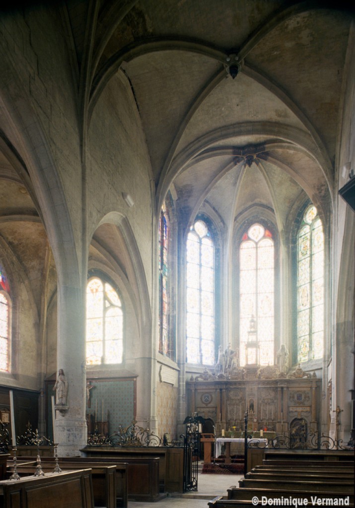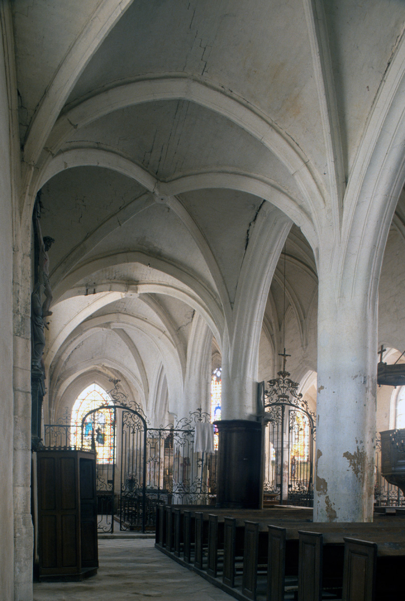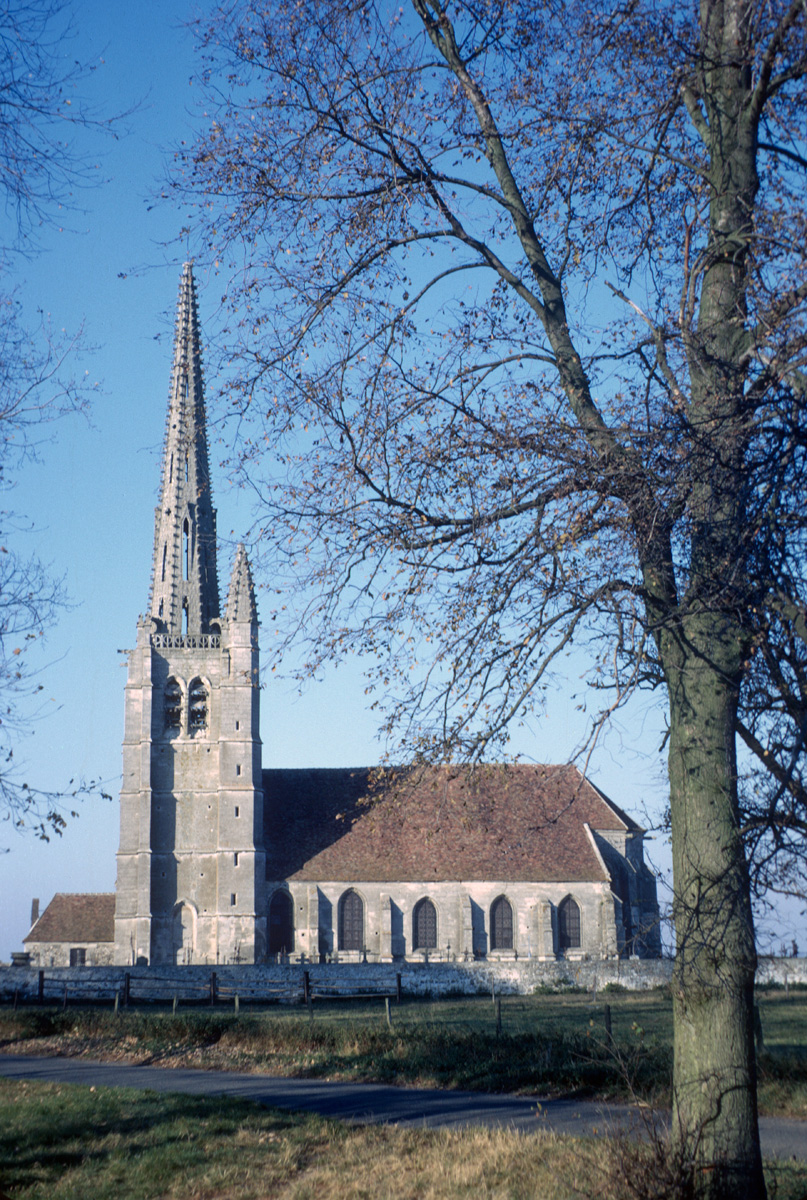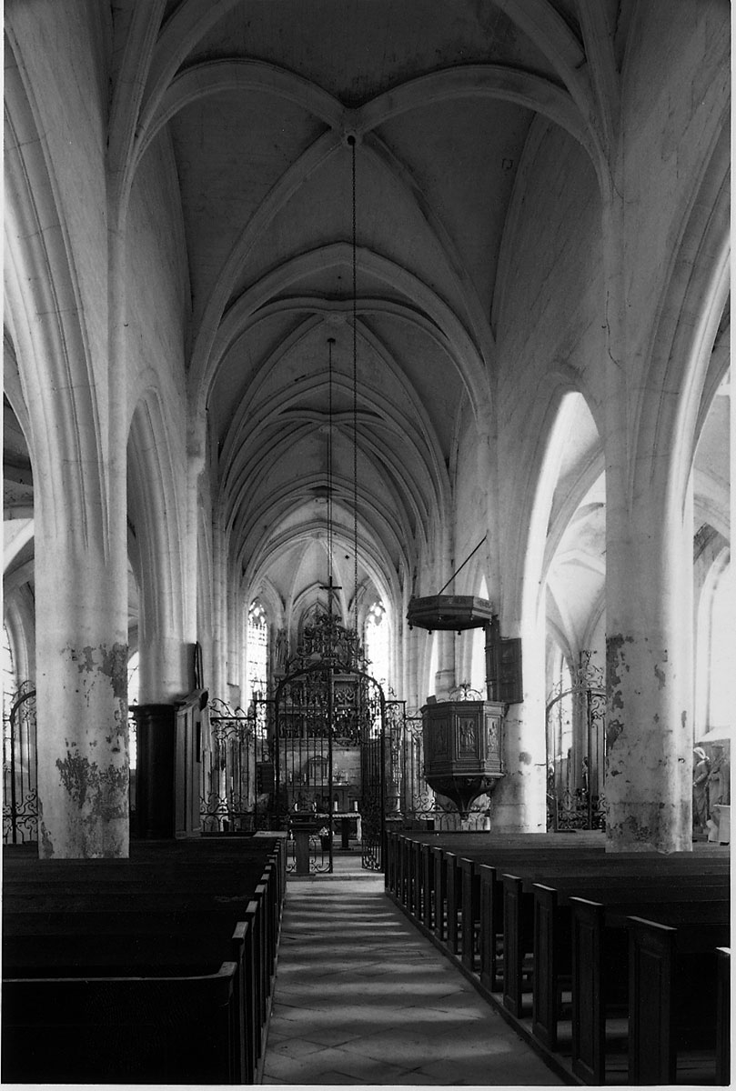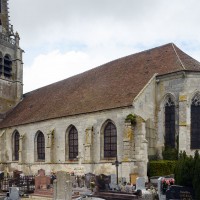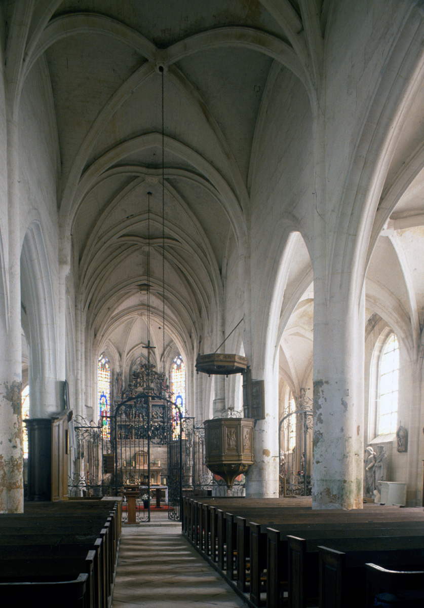 Pour le reste, l’église est du 16ème siècle : vers 1510-1520 pour l’essentiel de l’édifice et vers 1540-1550 pour le portail et le clocher. Son vaisseau central, long de six travées, comporte deux niveaux mais le second est aveugle et caractéristique de la structure dite en halle-basilique. La lumière n’est donc reçue que par les fenêtres des bas-côtés. Il se termine par une abside pentagonale éclairée de hautes fenêtres à remplage flamboyant tandis que le clocher est assis sur la première travée du bas-côté sud. Arcades et ogives des voûtes pénètrent directement dans les piles qui les reçoivent sans l’intermédiaire de chapiteaux. A quelques variantes près, les églises de Baron, Ognes et Versigny, pour ne citer que des exemples géographiquement proches, offrent les mêmes dispositions d’ensemble.