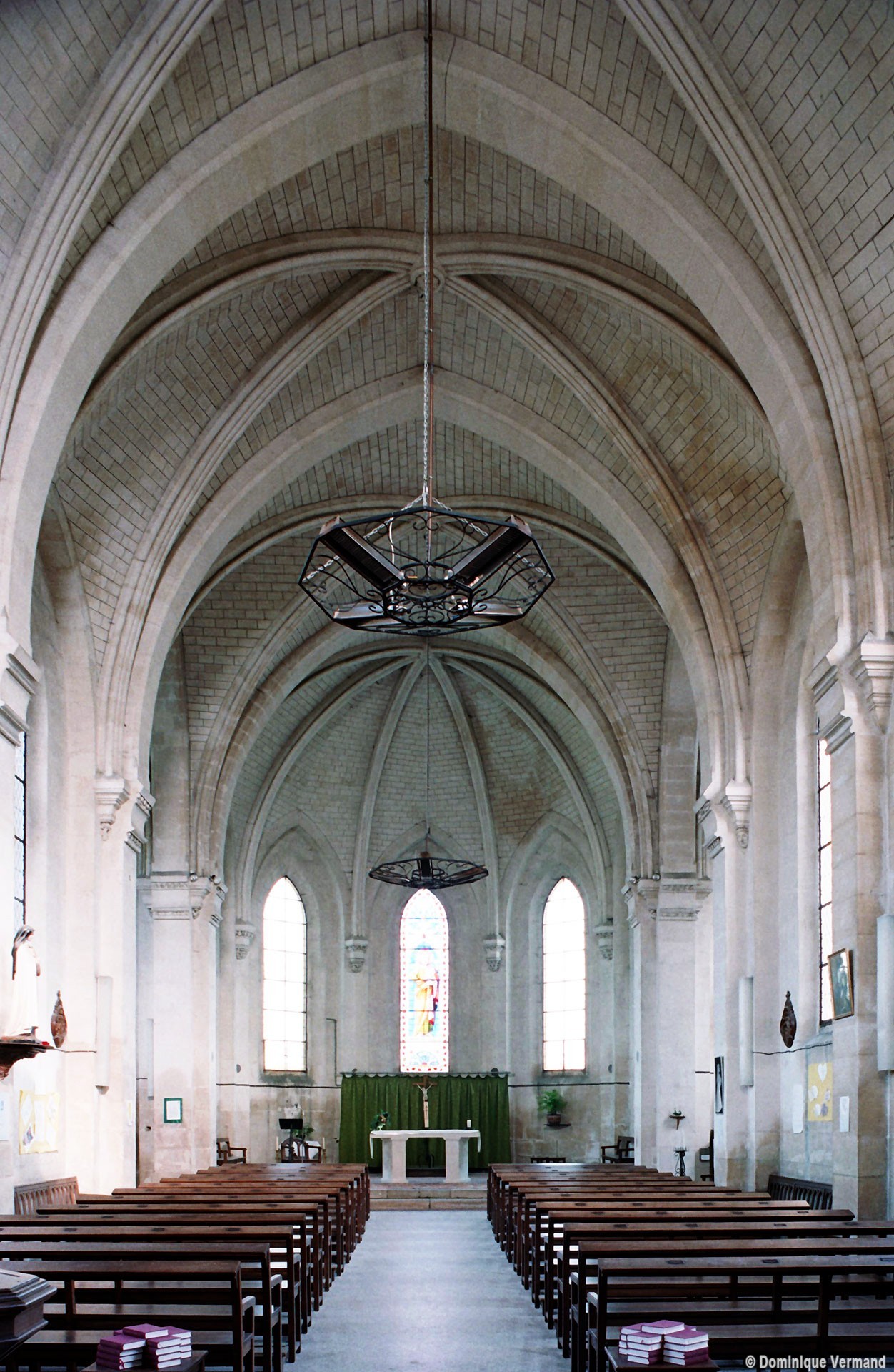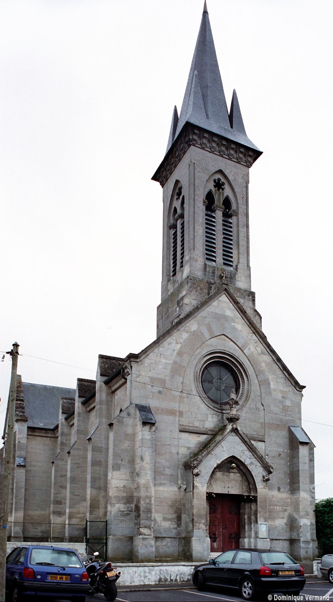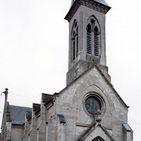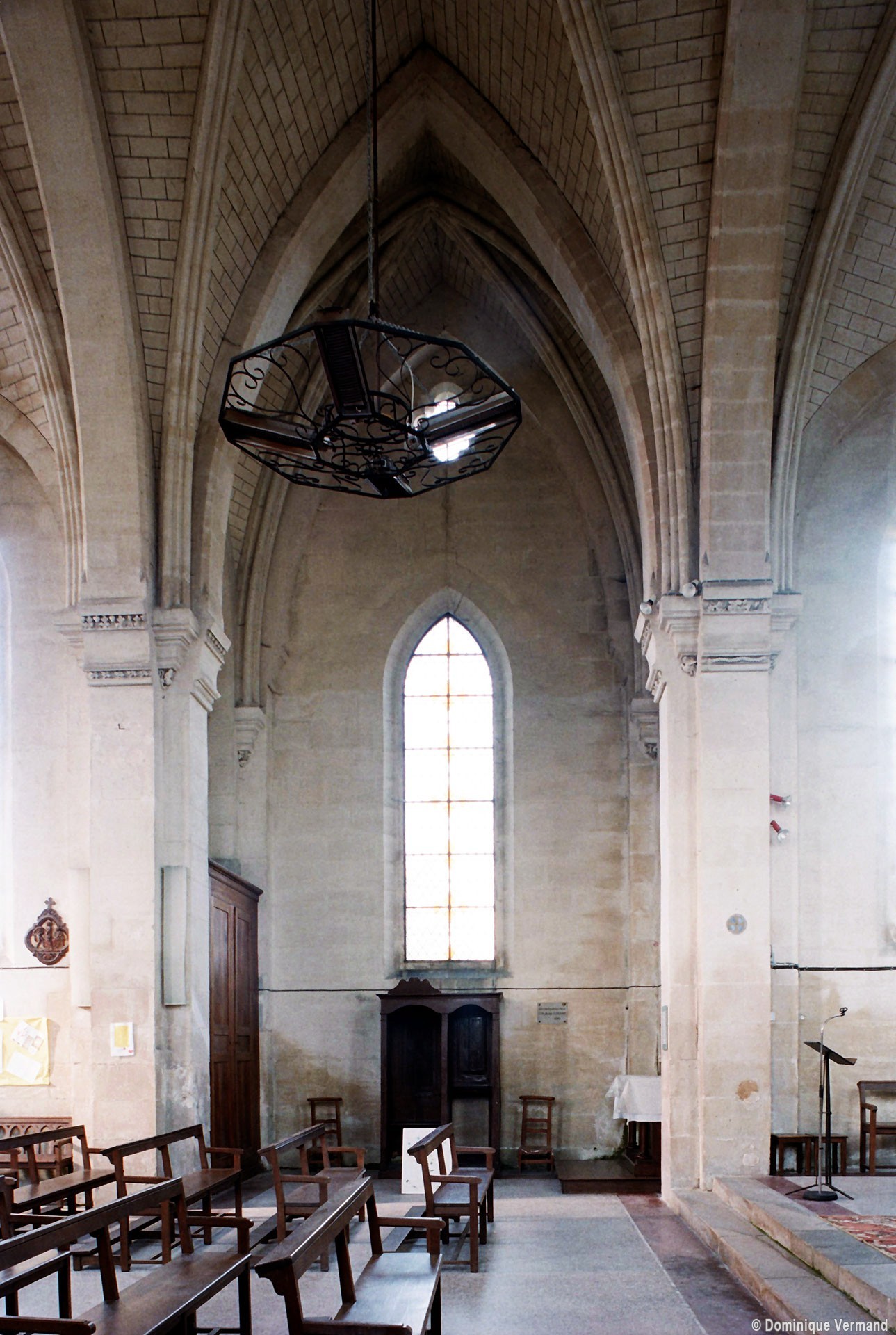 Représentatif du style néo-gothique très en vogue sous le Second Empire, c’est une construction très soignée, en pierres de taille. Le plan comprend une nef unique de trois travées, un transept saillant et une abside pentagonale. La nef est précédée du traditionnel bloc de façade que surmonte le clocher. Au rez-de-chaussée, deux petits réduits accueillent le baptistère et la cage d’escalier qui conduit à la tribune. Tout l’édifice reçoit des voûtes d’ogives à la forme très bombée. Elles retombent sur des culs-de-lampe, à la sculpture très soignée au transept et au choeur. Les fenêtres sont de simples lancettes.