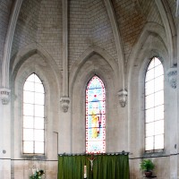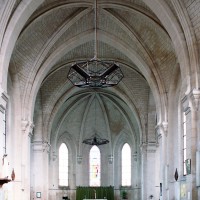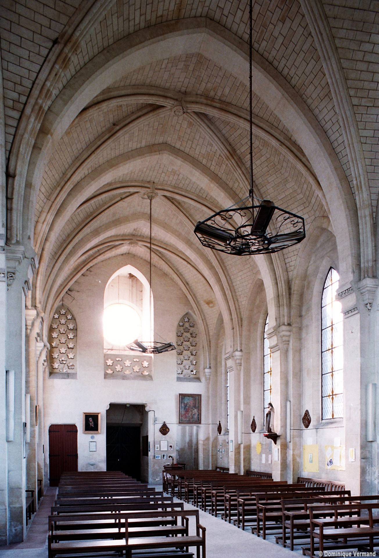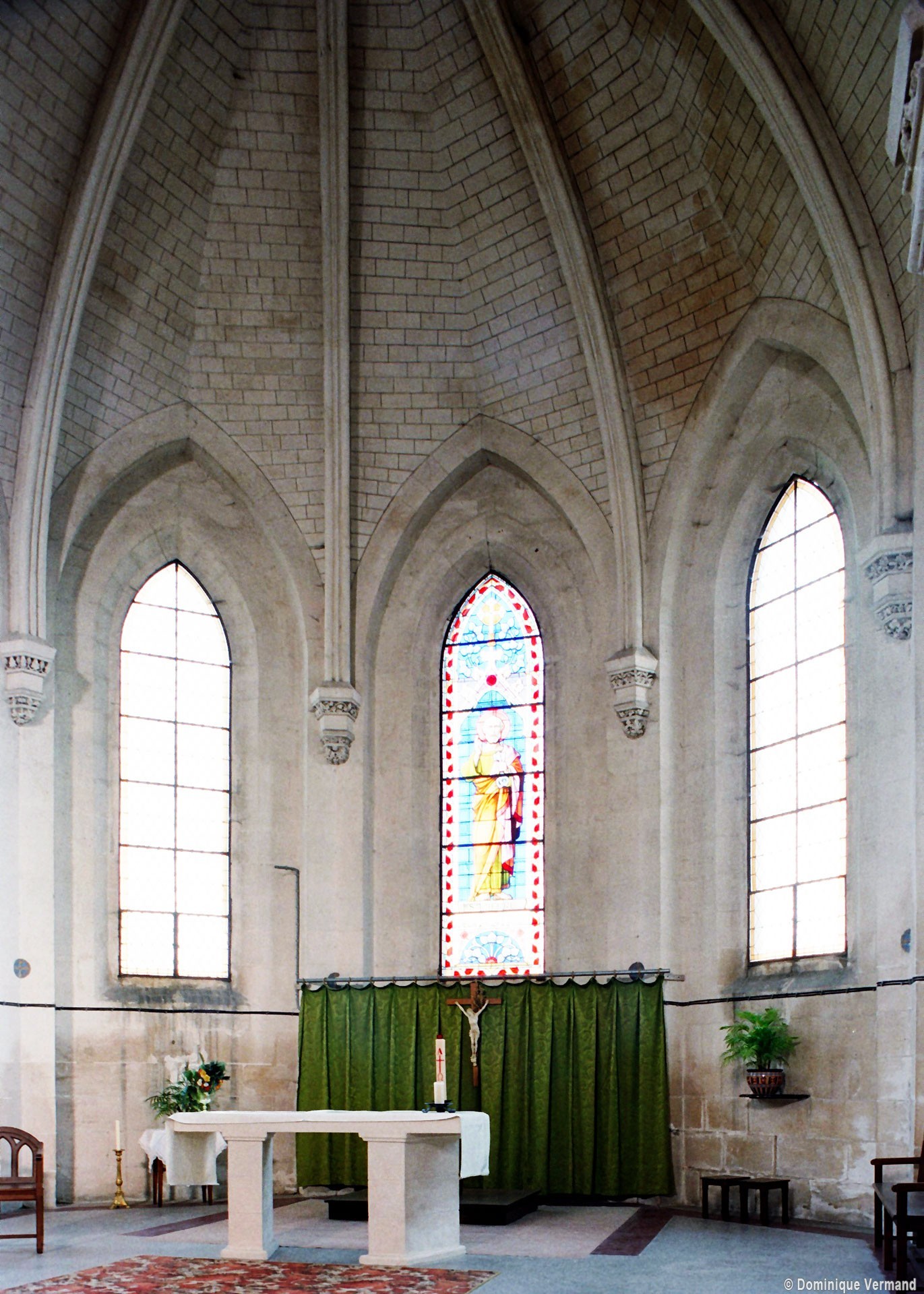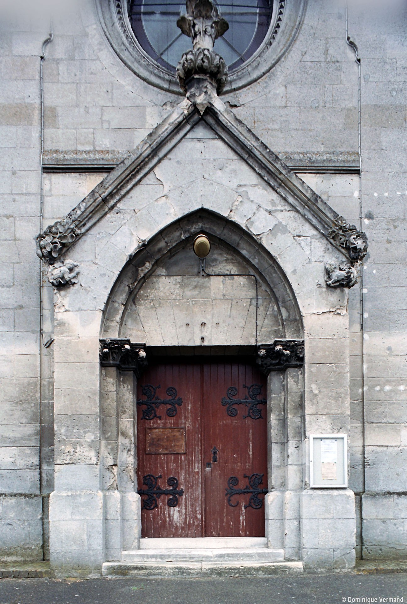Représentatif du style néo-gothique très en vogue sous le Second Empire, c’est une construction très soignée, en pierres de taille. Le plan comprend une nef unique de trois travées, un transept saillant et une abside pentagonale. La nef est précédée du traditionnel bloc de façade que surmonte le clocher. Au rez-de-chaussée, deux petits réduits accueillent le baptistère et la cage d’escalier qui conduit à la tribune. Tout l’édifice reçoit des voûtes d’ogives à la forme très bombée. Elles retombent sur des culs-de-lampe, à la sculpture très soignée au transept et au choeur. Les fenêtres sont de simples lancettes.