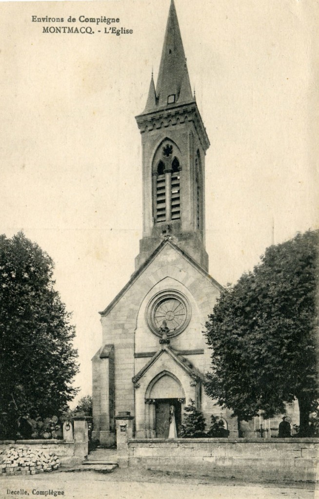 Montmacq est surtout connu dans les textes anciens comme lieu d’implantation d’une maison royale aux époques mérovingiennes et carolingiennes. Au centre du village, Saint-Pierre est un édifice des années 1867-68. Très élancé, son clocher que termine une flèche en charpente et ardoises flanquée de quatre pyramides d’angles, a été refait à l’identique en 1923 après avoir été détruit durant la Guerre 14-18.