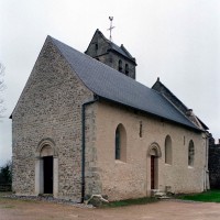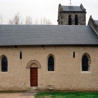 La nef romane s’est conservée presque intacte si l’on excepte les trois fenêtres percées tardivement au sud. Bâtie en moellons, elle ne comporte pas de contreforts. Les fenêtres primitives, au nombre de trois, sont de petites ouvertures qui s’apparentent davantage à des meurtrières et dont la partie haute est échancrée dans une seule pierre, avec claveaux simulés. Fait exceptionnel, les deux petits portails existent encore. Les archivoltes et les impostes sont délicatement moulurées et une seule pierre fait à la fois office de linteau et de tympan. Le décor de feuilles d’acanthe qui souligne la moulure extérieure du portail ouest ne permet pas de dater cette nef avant le premier quart du 12ème siècle.