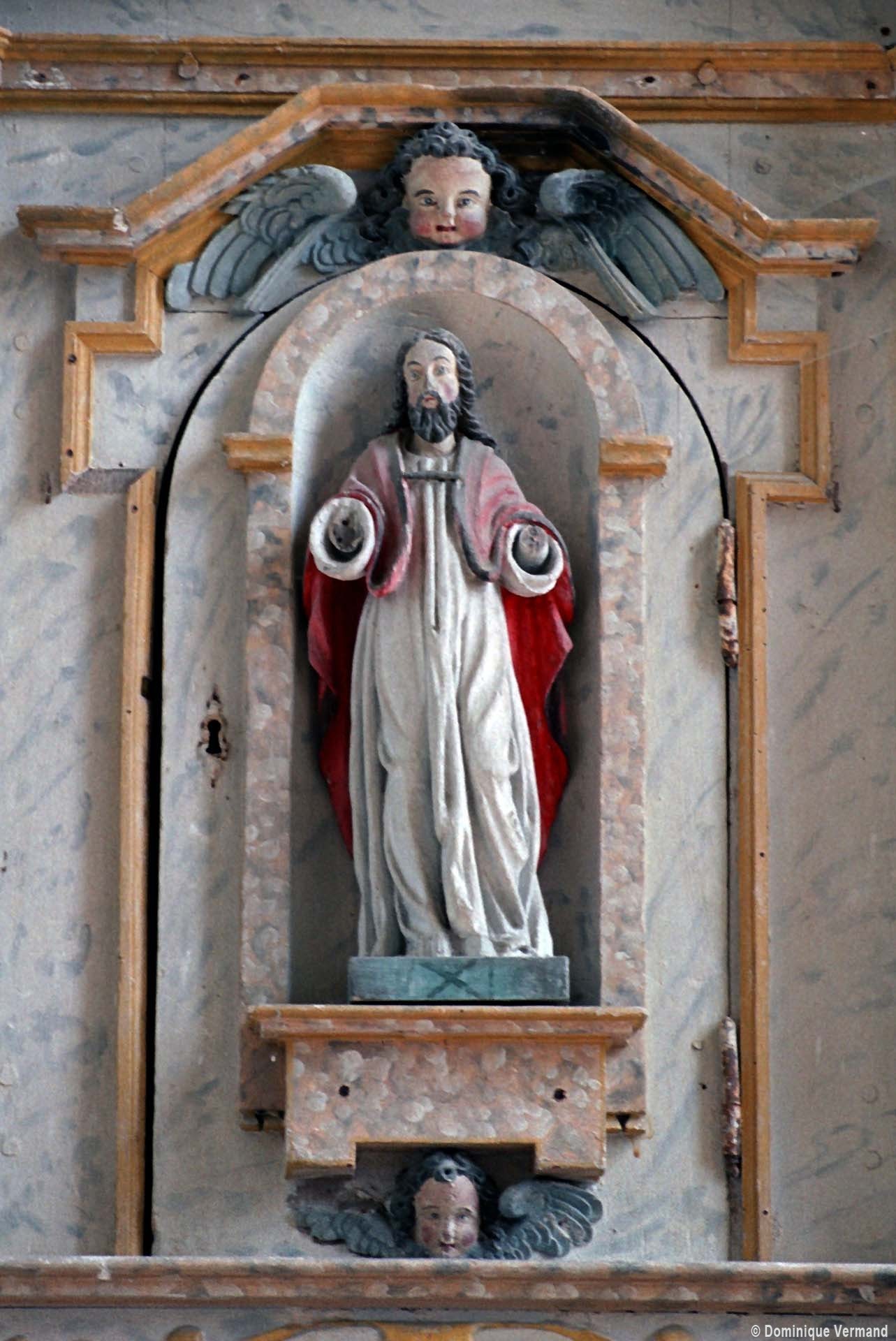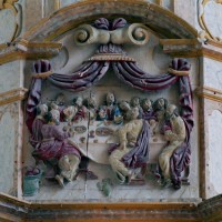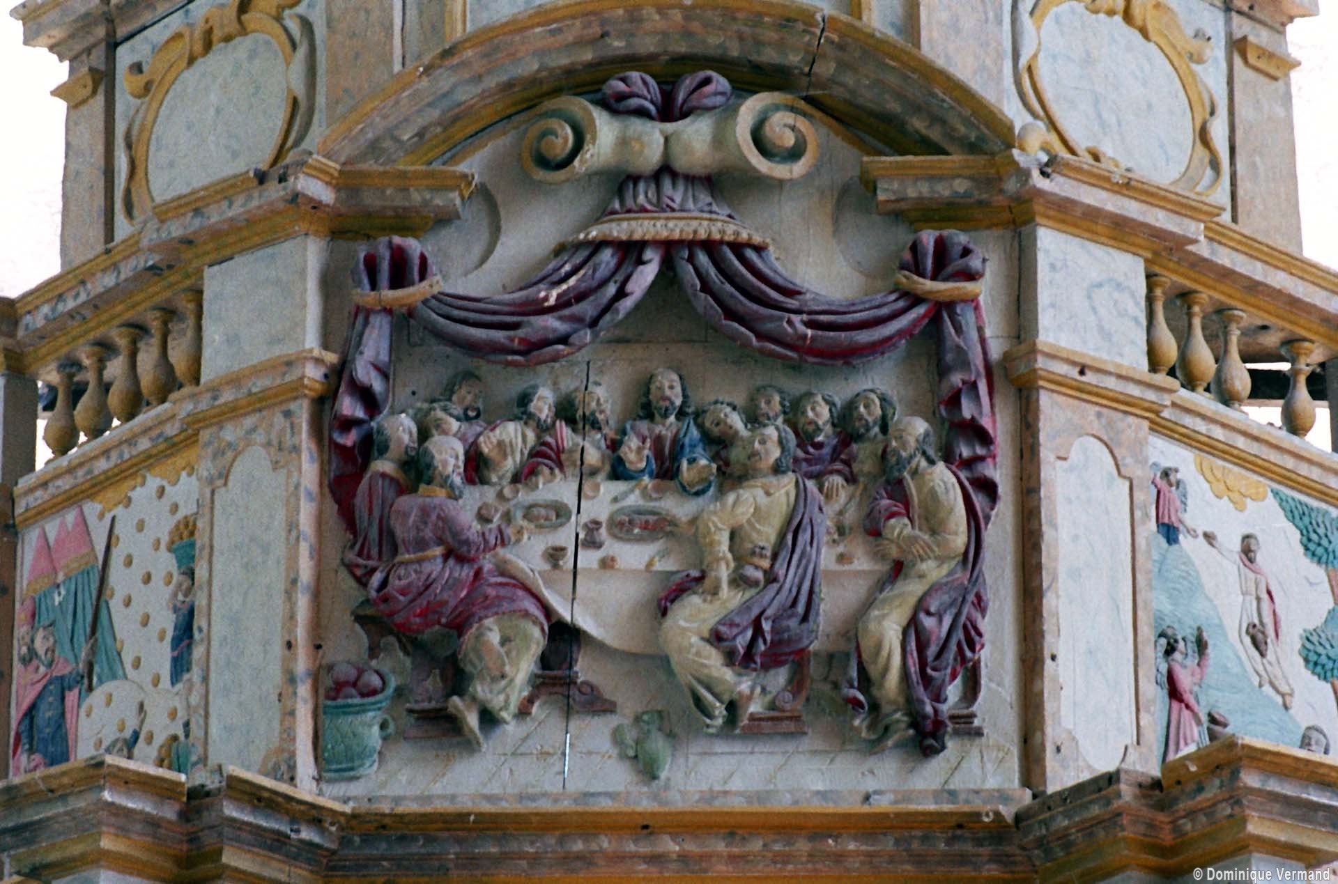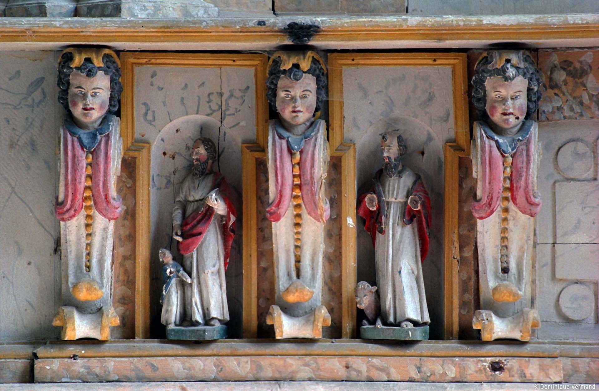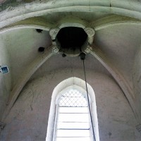 Le clocher a été bâti au 16ème siècle. Sa base comporte une voûte d’ogives avec, d’origine, un oculus pour le passage des cloches. Des petites clefs décorées masquent la jonction entre les ogives et l’oculus. Dotée d’une entrée indépendante et d’un autel, cette partie de l’église était sans doute utilisée comme chapelle seigneuriale. Saint-Etienne possède une belle Vierge à l’Enfant en pierre, du 14ème siècle, et un délicieux retable baroque polychrome du 17ème siècle (2004).