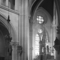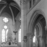 Le croisillon sud conserve la copie d’une Vierge en Gloire de Murillo (1867) dont l’original est conservé au Prado, à Madrid. Le maître-autel, avec tabernacle, et la chaire constituent deux beaux exemples de réalisations néo-gothiques (1998, modifié 2016).