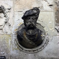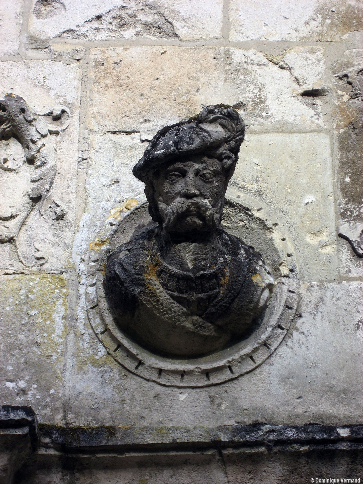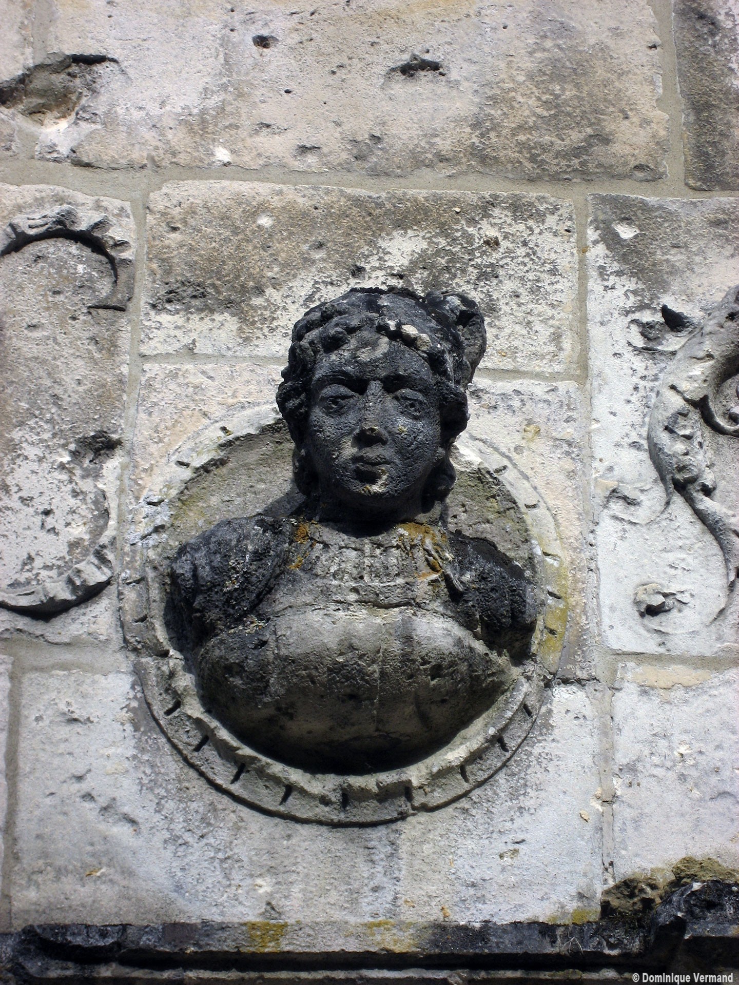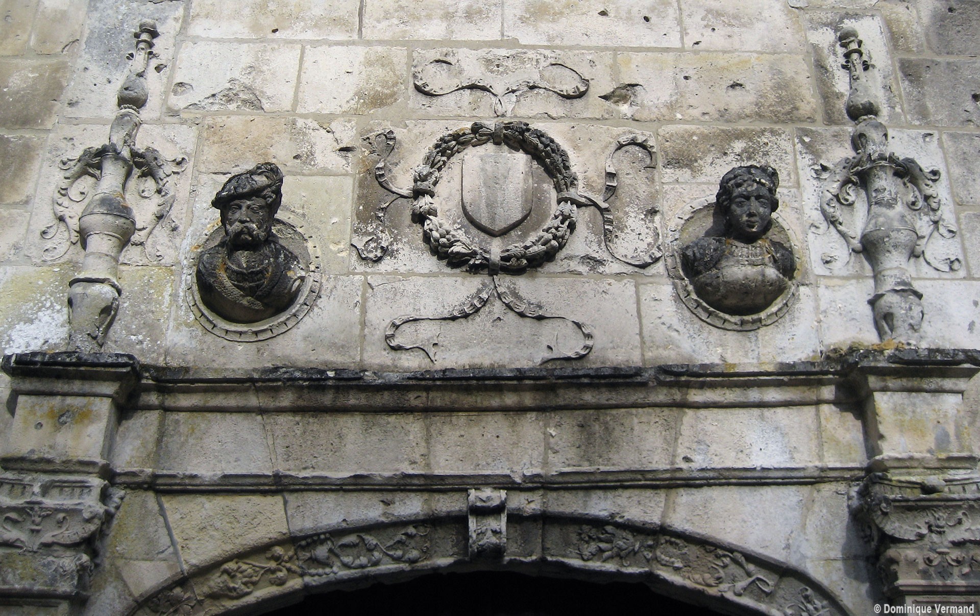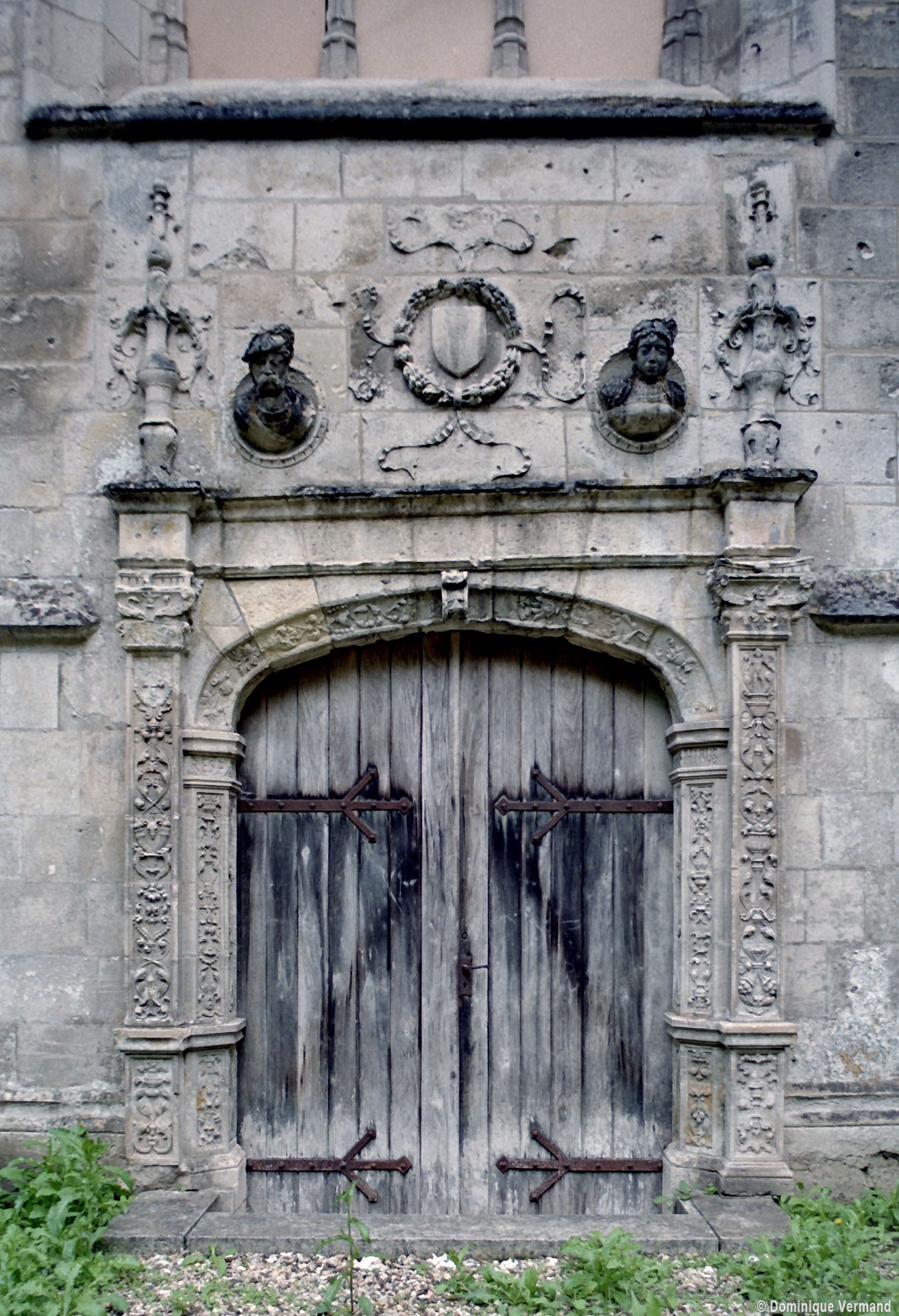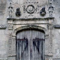 Mais l’élément le plus original est sans conteste le portail occidental, au riche décor finement exécuté et parfaite illustration du style renaissance. L’ouverture proprement dite, en arc surbaissé, est encadrée par des pilastres en faible relief qui complètent les piédroits proprement dits et, au-dessus de l’entablement, encadrent une composition associant un blason – aujourd’hui effacé – inscrit dans une couronne et, de part et d’autre, sortant de deux oculi, les bustes d’un homme et d’une femme. Exécutés avec un grand souci du détail, il faut y voir de véritables portraits, ceux des donateurs – le seigneur et son épouse -, à qui l’on doit la reconstruction de l’église au 16ème siècle (2009).