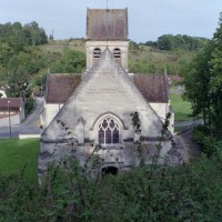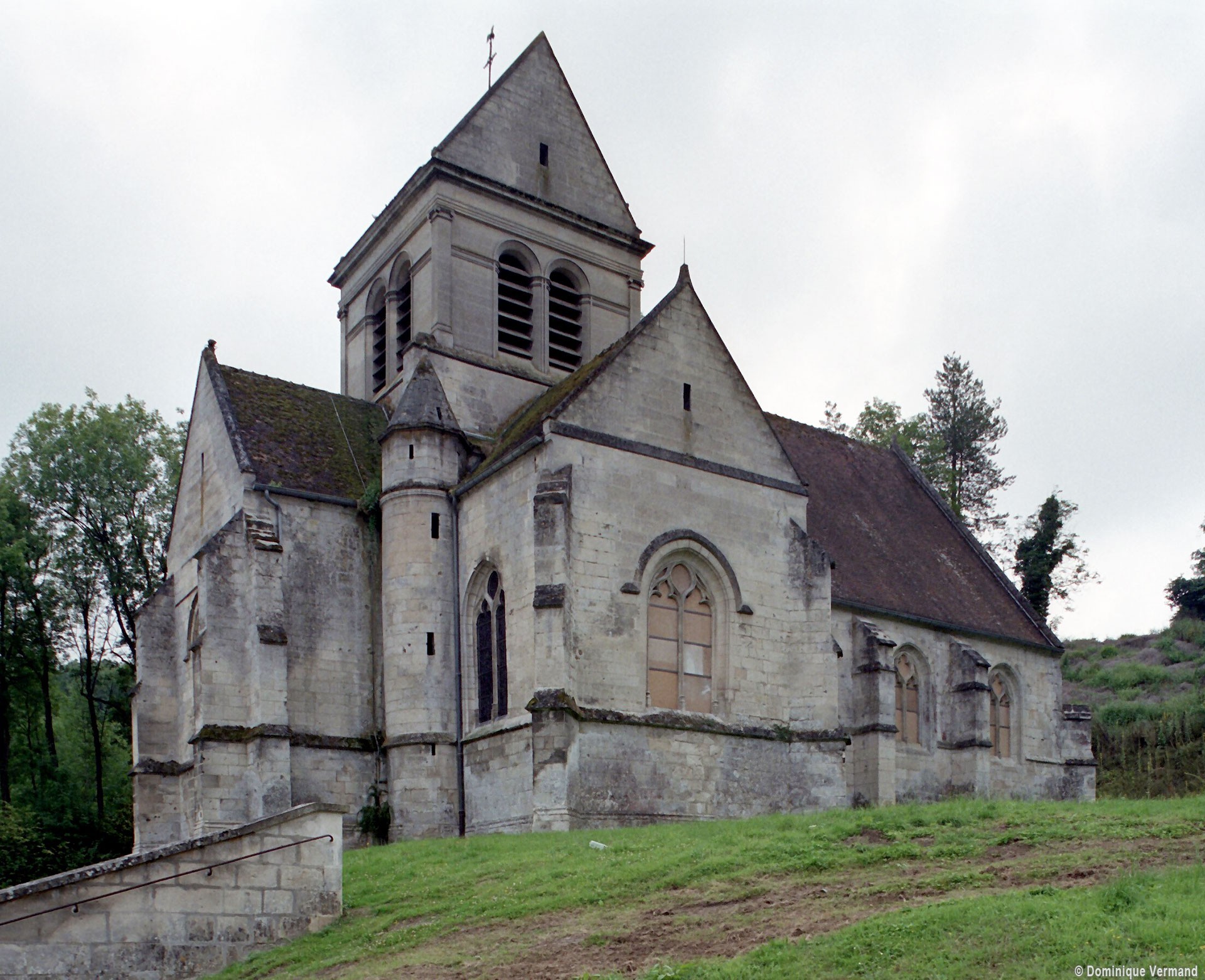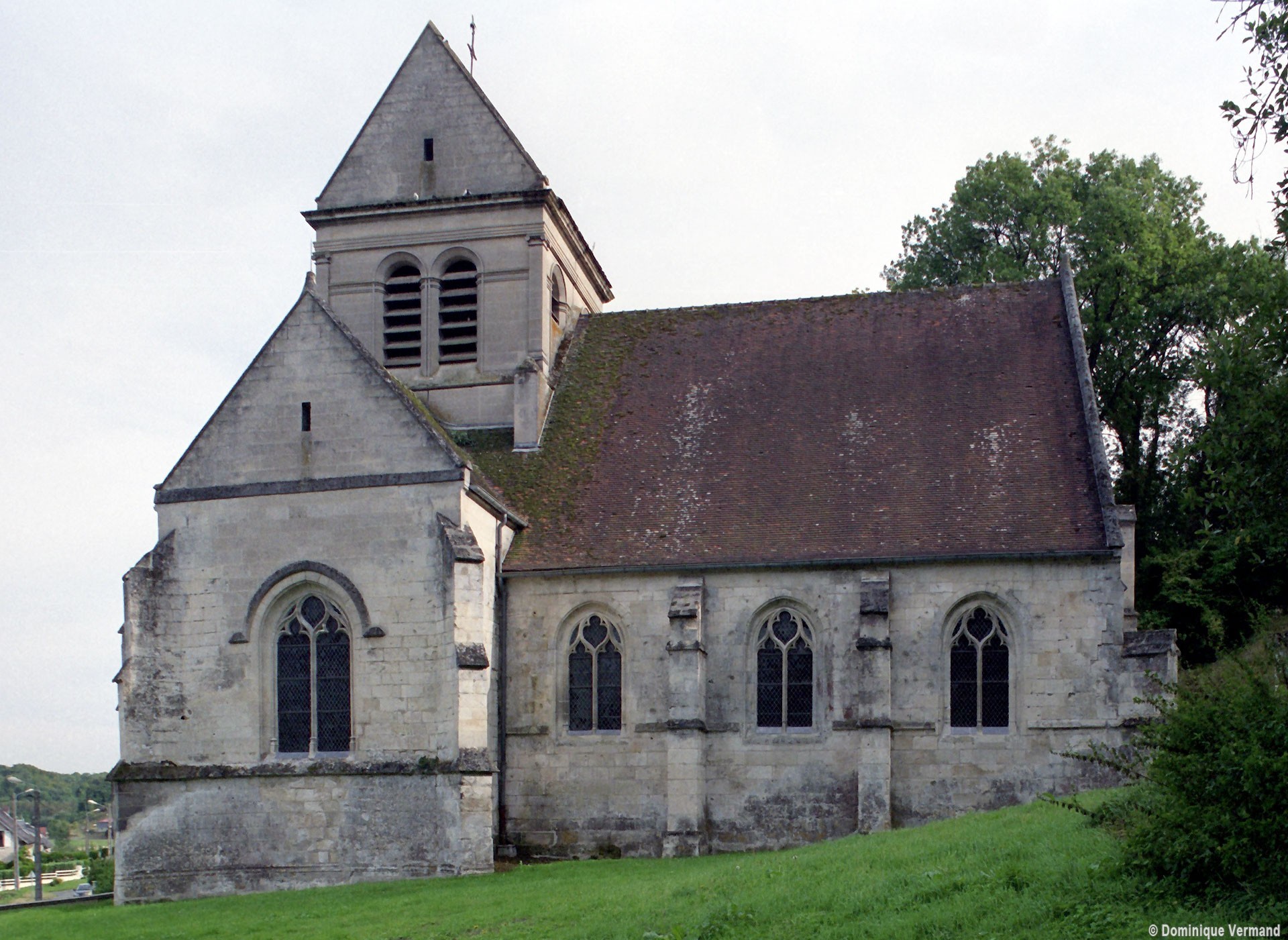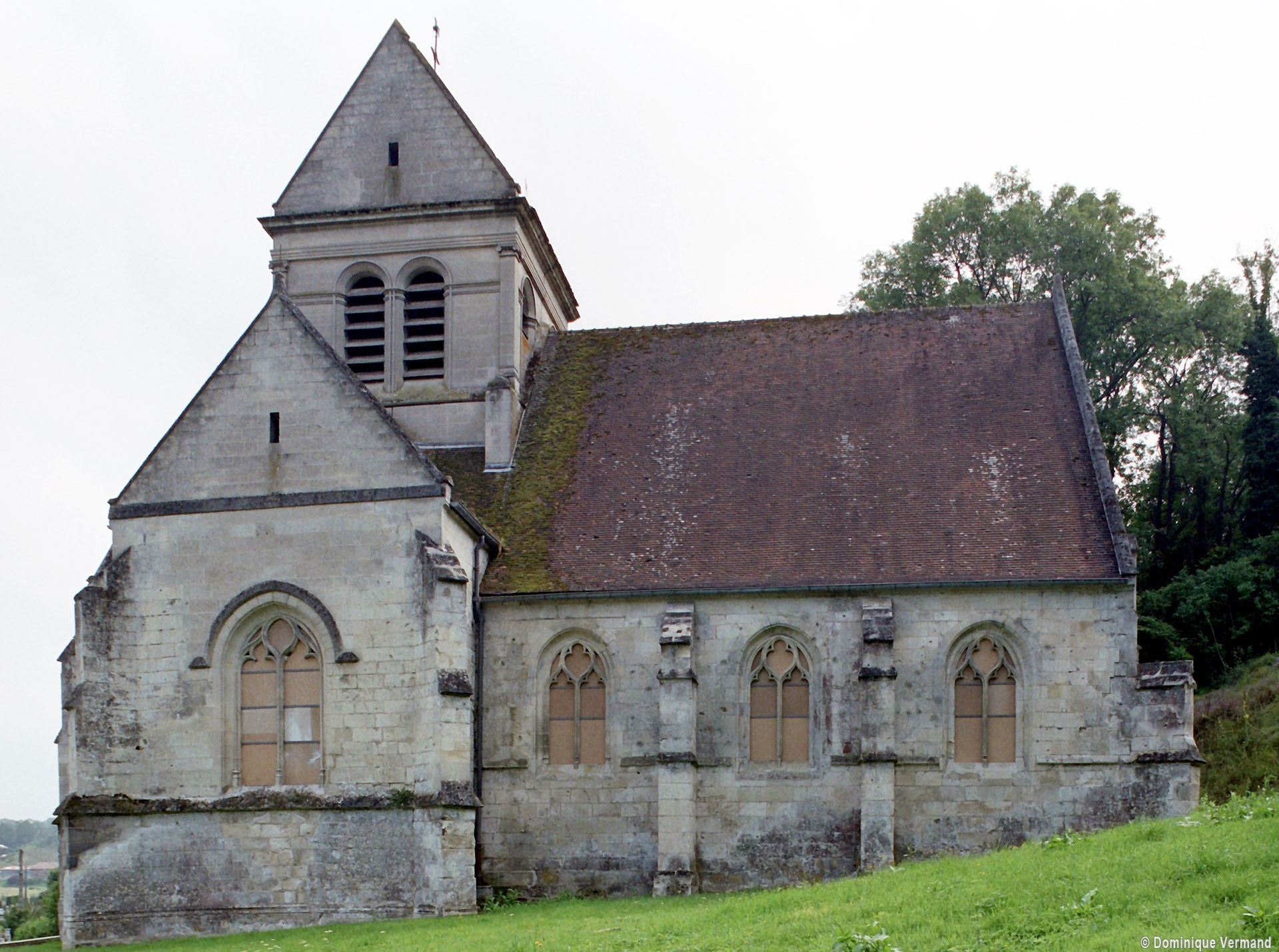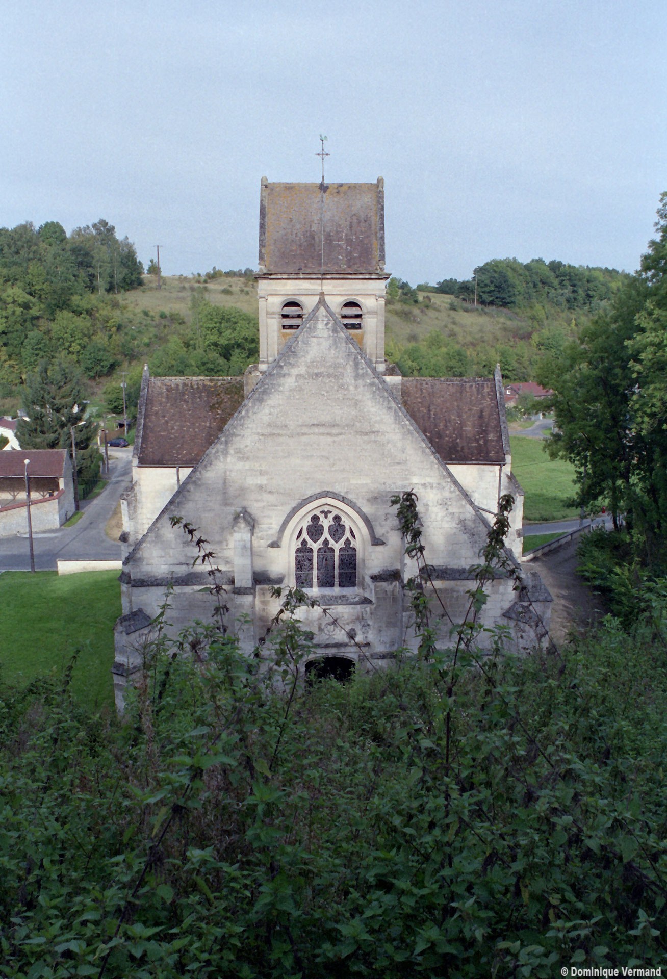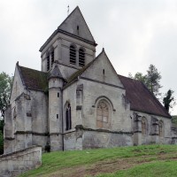 Par son plan comme par sa silhouette, l’église pourrait facilement passer pour un de ces nombreux édifices construits au 12ème siècle dans l’ancien diocèse de Soissons. La nef de trois travées avec bas-côtés, le transept saillant sur la croisée duquel s’élève le clocher avec son toit en bâtière et le petit chœur à chevet plat ne font, en effet, que continuer une tradition séculaire.