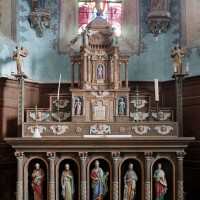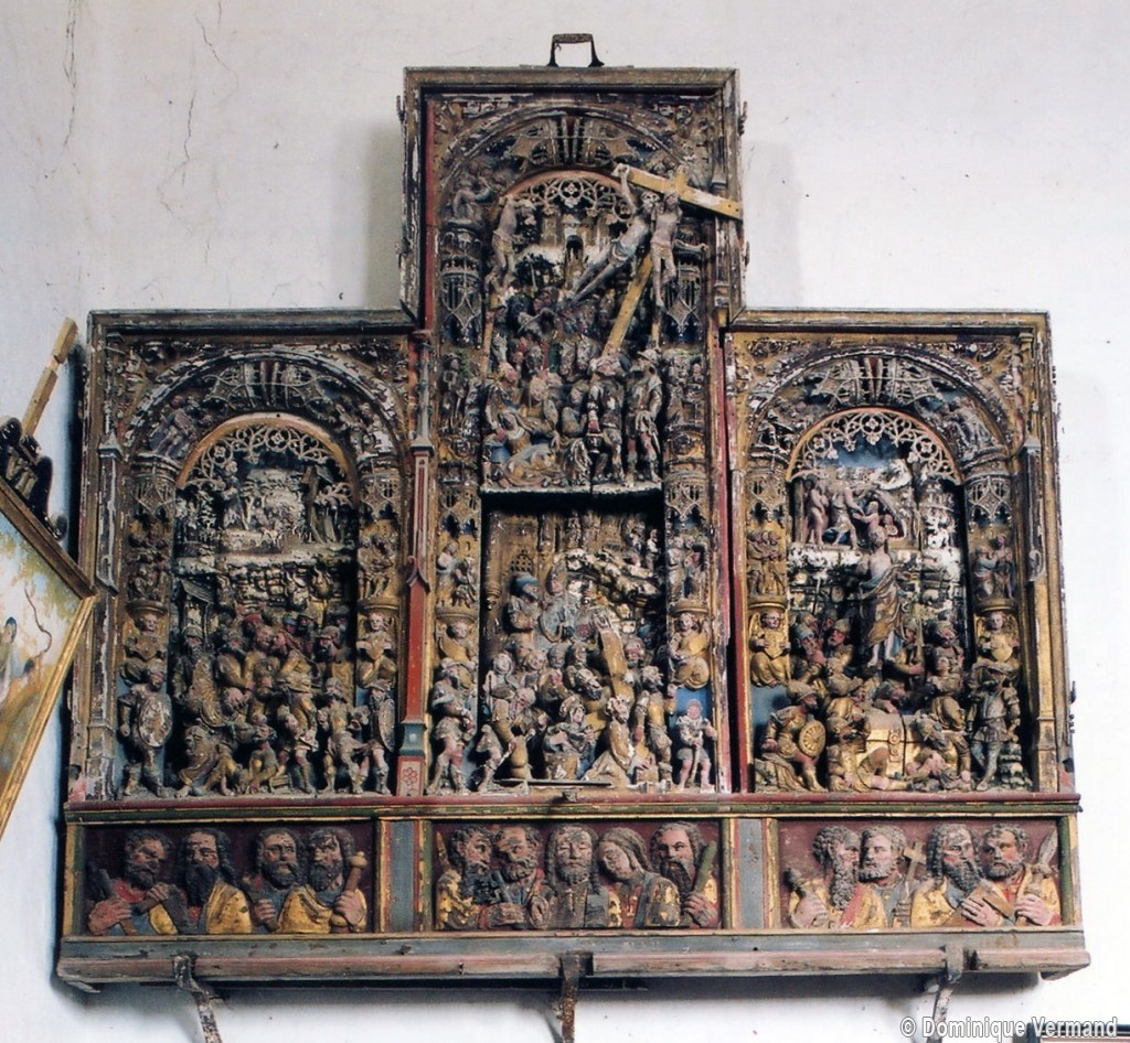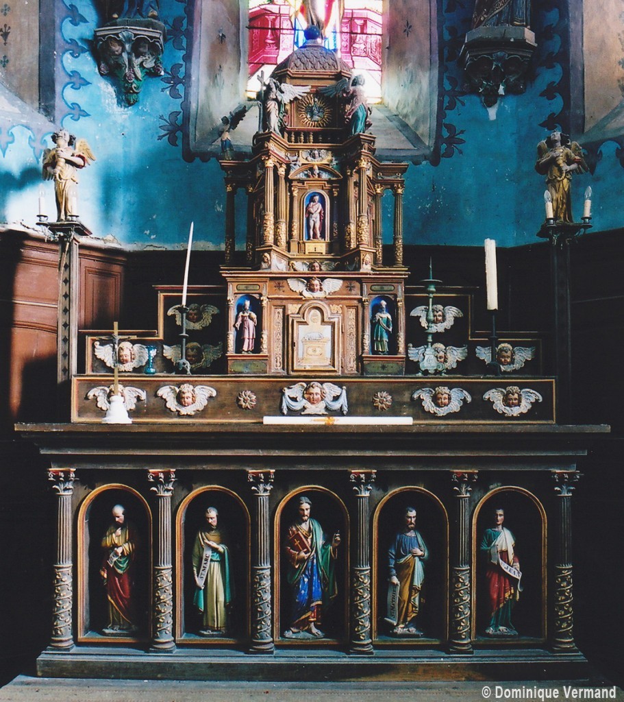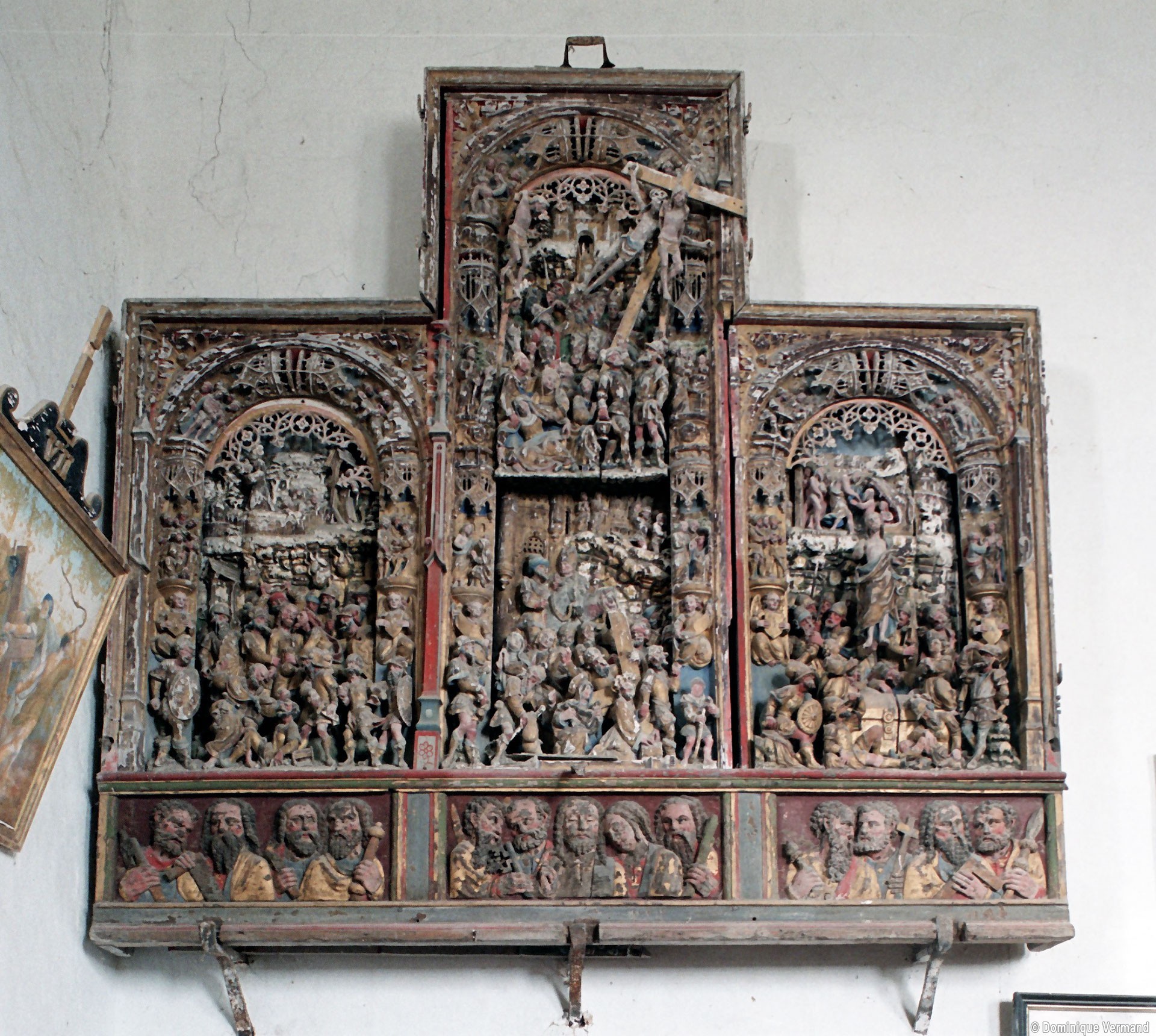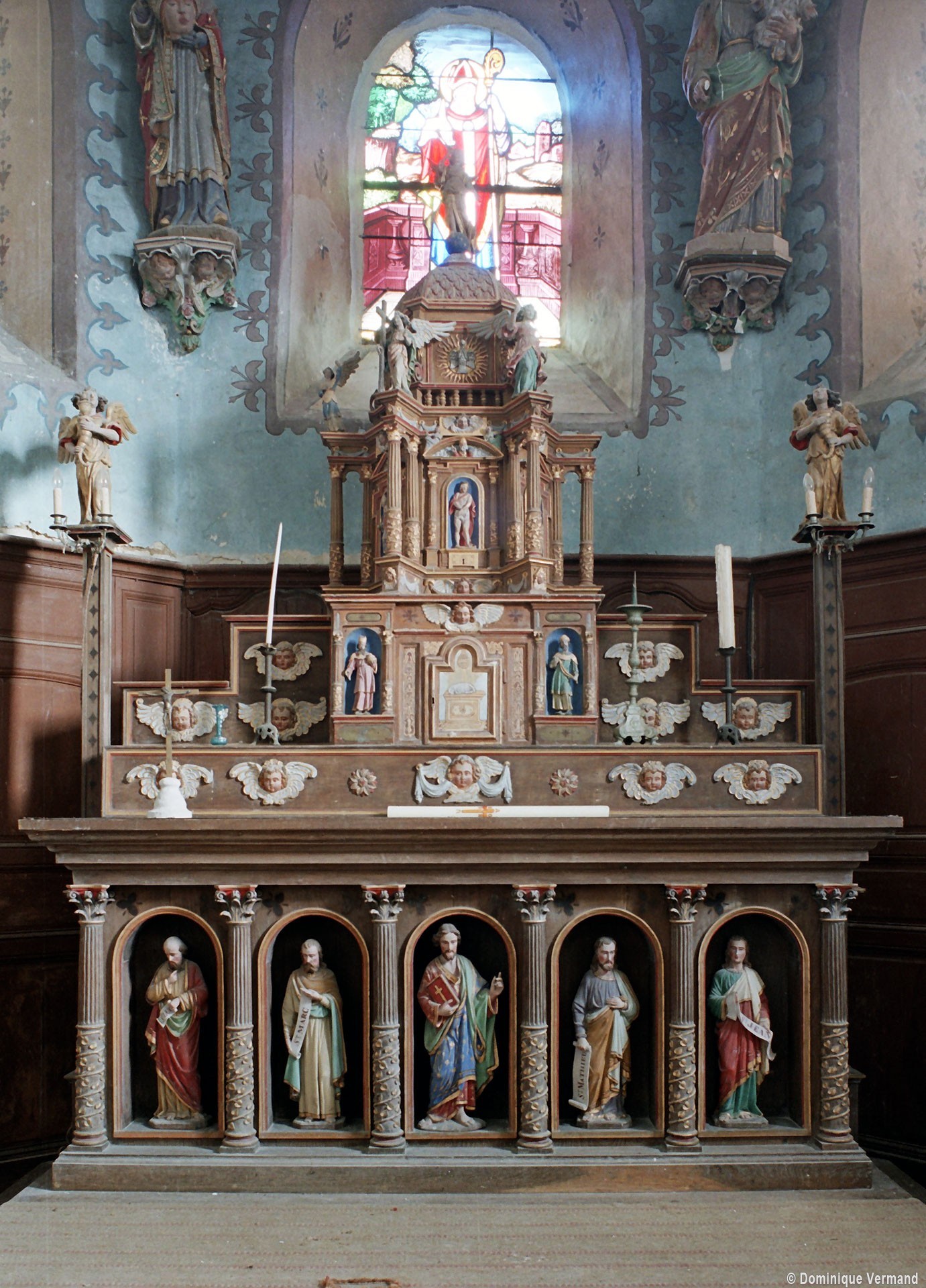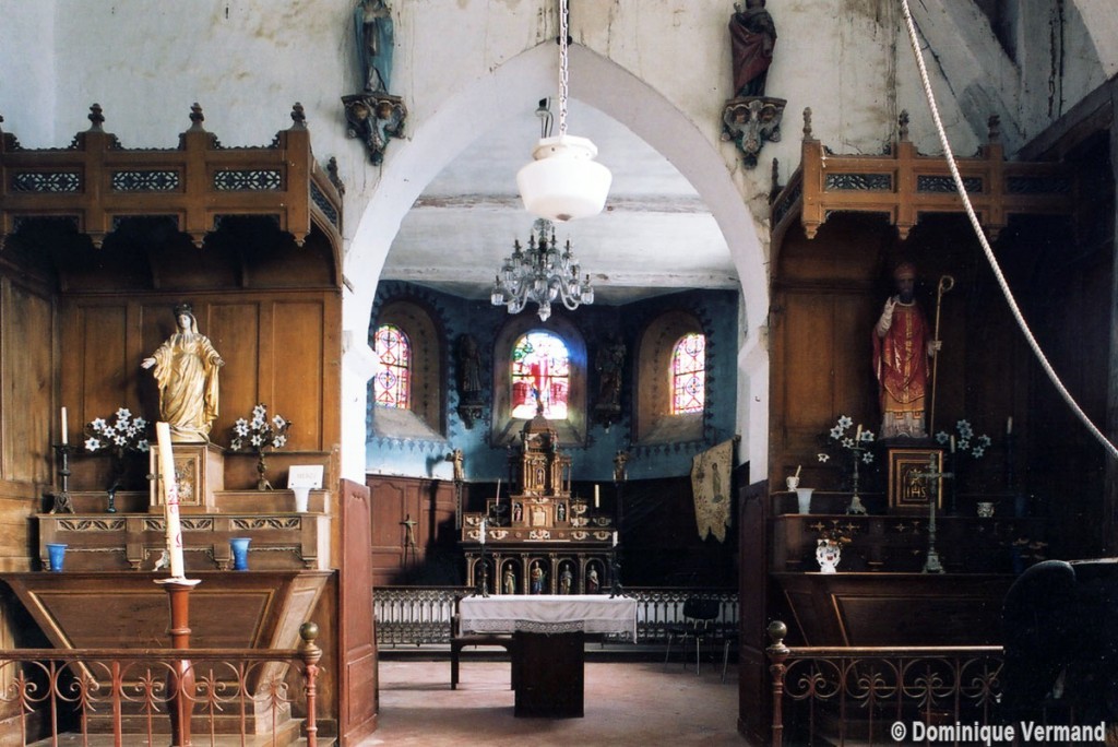 Un autel de style classique, un lutrin du 18ème siècle – tous deux complétés au 19ème siècle – et un rare retable du 16ème siècle représentant la Passion du Christ dans un style qui associe intimement le gothique finissant et la Renaissance sont à distinguer parmi le mobilier très complet qui fait de Saint-Lucien un édifice particulièrement attachant (2005).