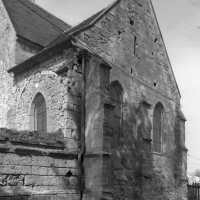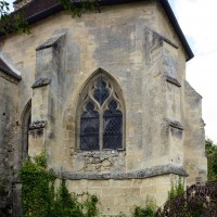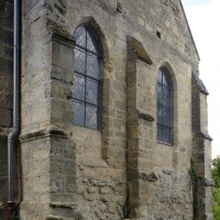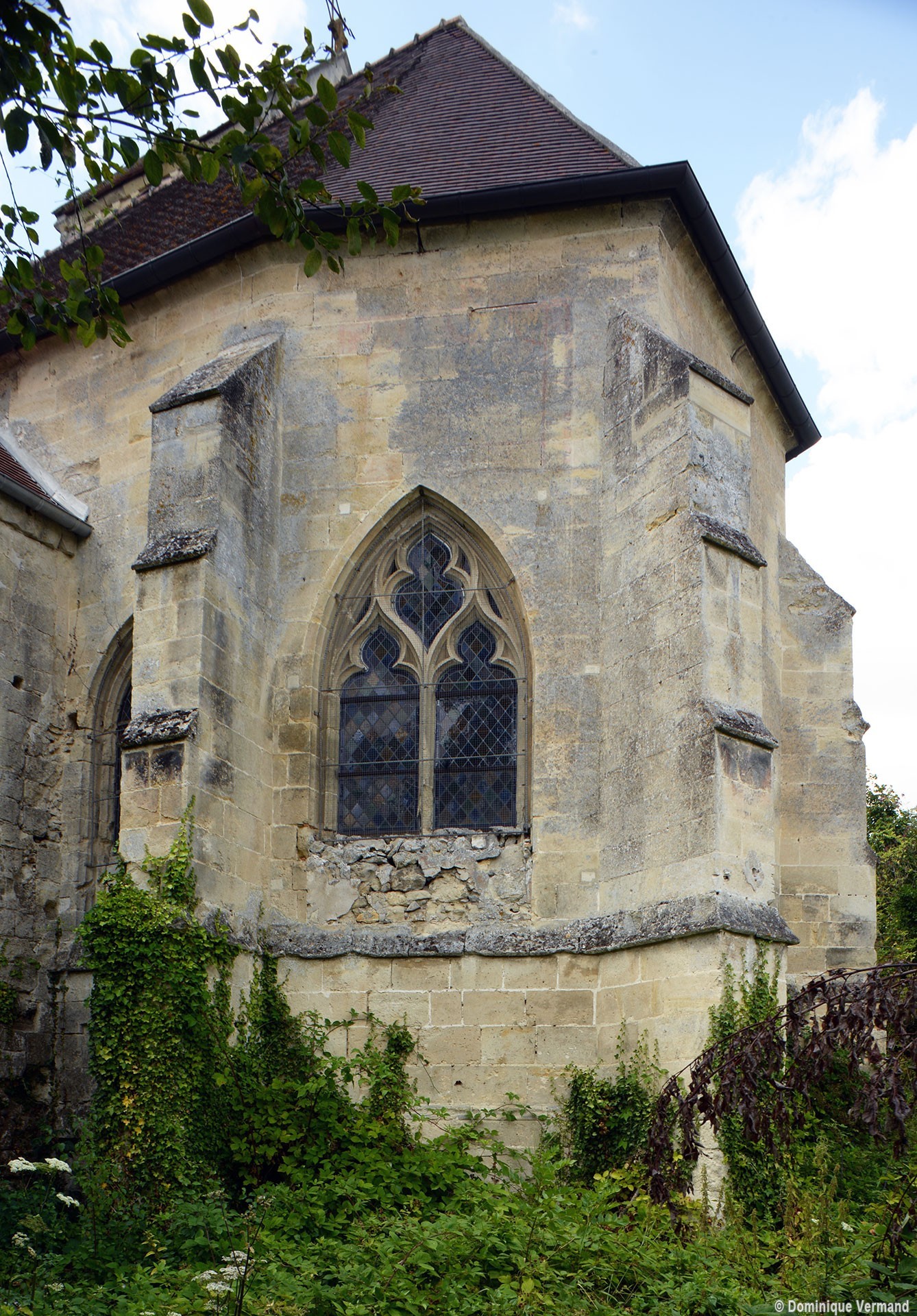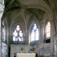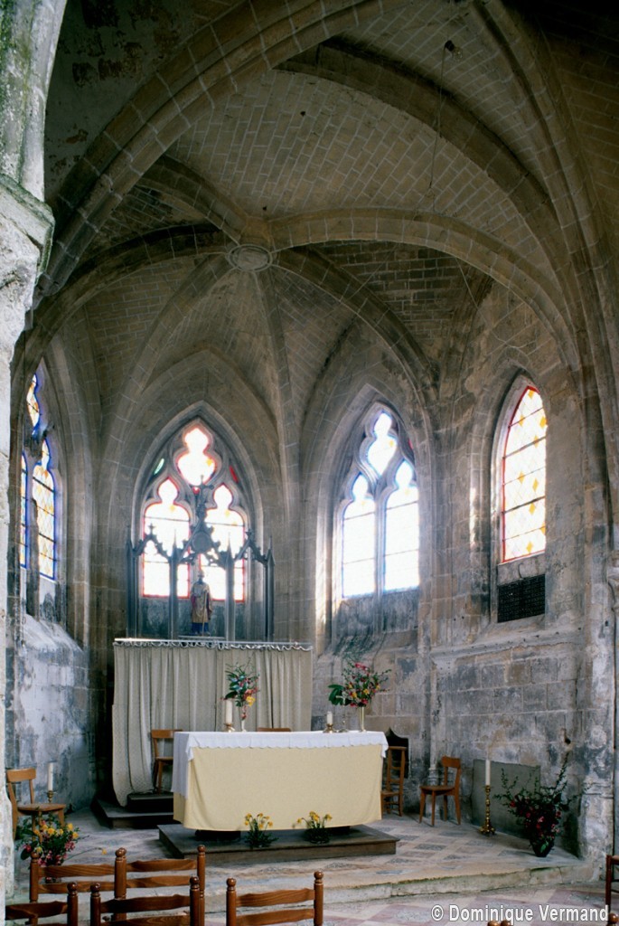 L’abside, de plan pentagonal, a été rebâtie au 16ème siècle. C’est une construction soignée, mais très simple, comme il y en eut beaucoup à l’époque. La travée droite est ajourée de simples lancettes mais les trois pans coupés comportent de grandes fenêtres au remplage flamboyant.