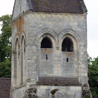 Assis sur la première travée du bas-côté nord, le clocher est une construction sobre dont l’unique étage de baies géminées – malheureusement en grande partie obturées – s’élève au-dessus d’un haut soubassement nu.