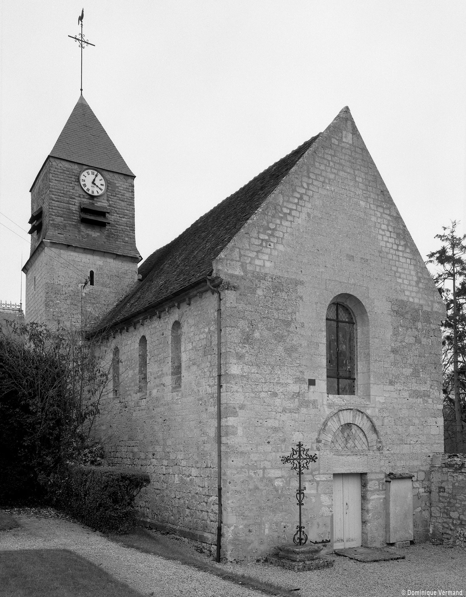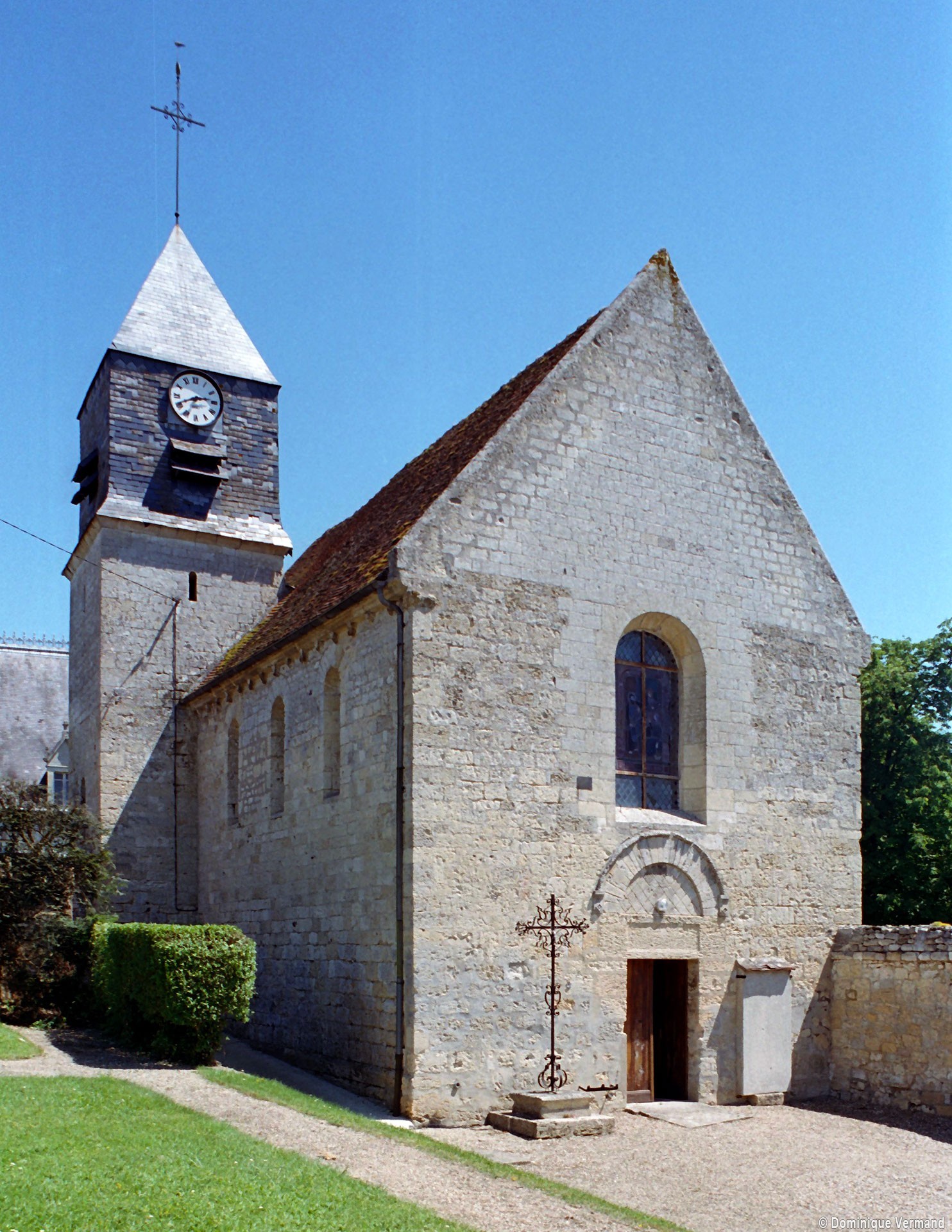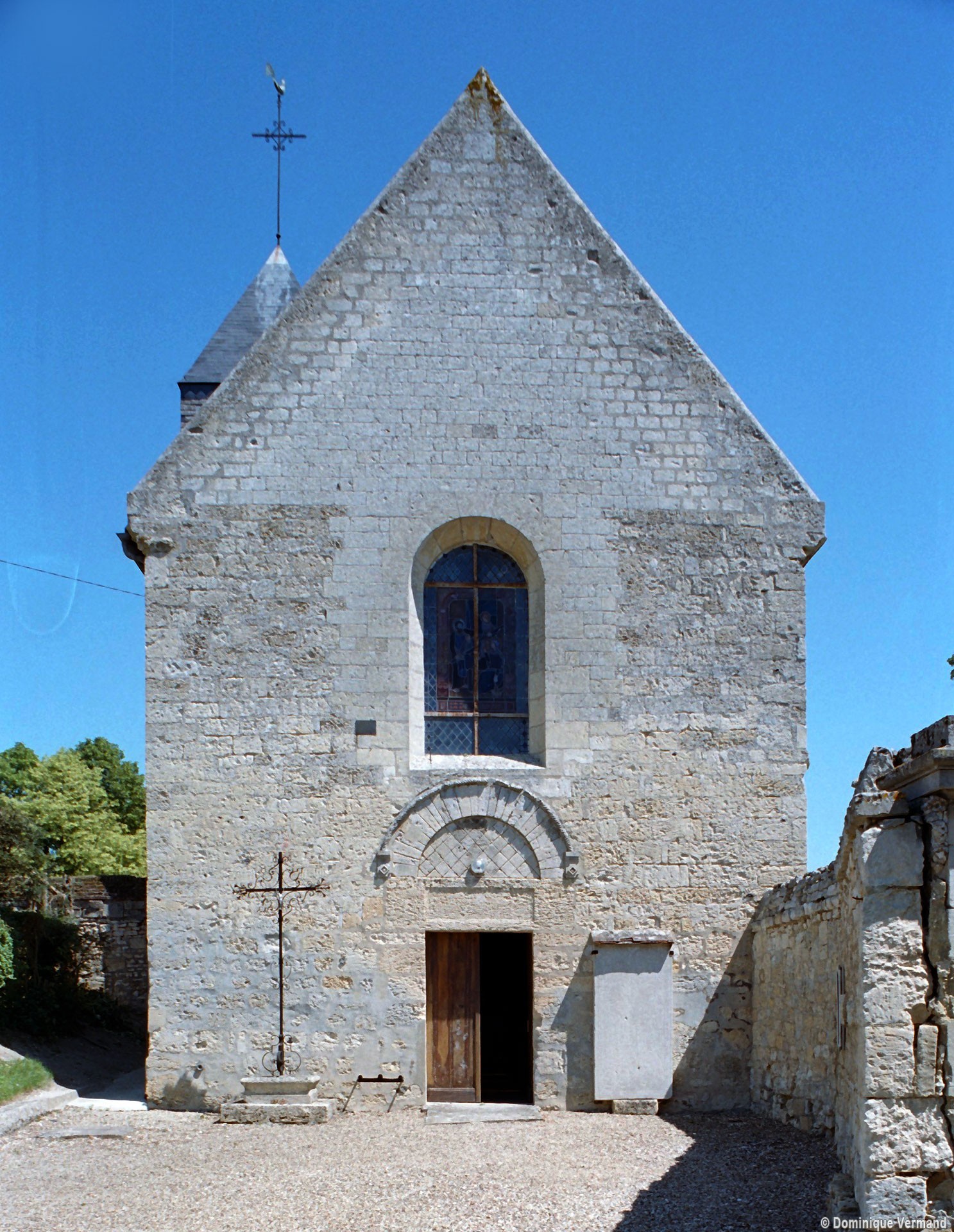 Implantée sur le rebord nord de la vallée de l’Aronde, elle est bâtie en pierres de moyen appareil, assisées régulièrement. Son plan comprend simplement une nef unique suivie d’un choeur à chevet plat, légèrement désaxé vers le sud. Un petit clocher contemporain occupe l’angle nord-est de la nef, sur laquelle il mord légèrement. La forte déclivité du terrain a permis – ou nécessité – l’aménagement de deux salles voûtées en berceau plein cintre qui ne doivent pas être confondues avec une crypte.