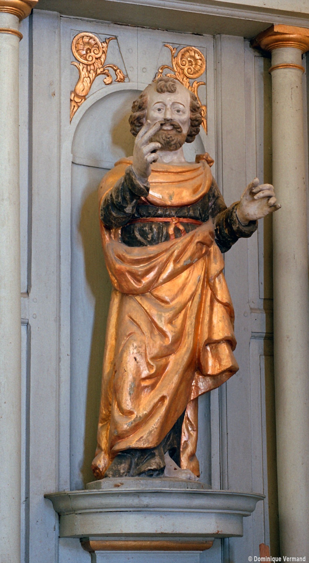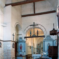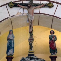 Ajoutant à son grand intérêt, Saint-Pierre possède un très bel ensemble de trois autels avec retable, du début du 17ème siècle. D’une composition sobre et équilibrée, celui du choeur a conservé ses statues d’origine. Encore en place, la poutre de gloire, de la même époque, mérite tout autant l’attention (2008).