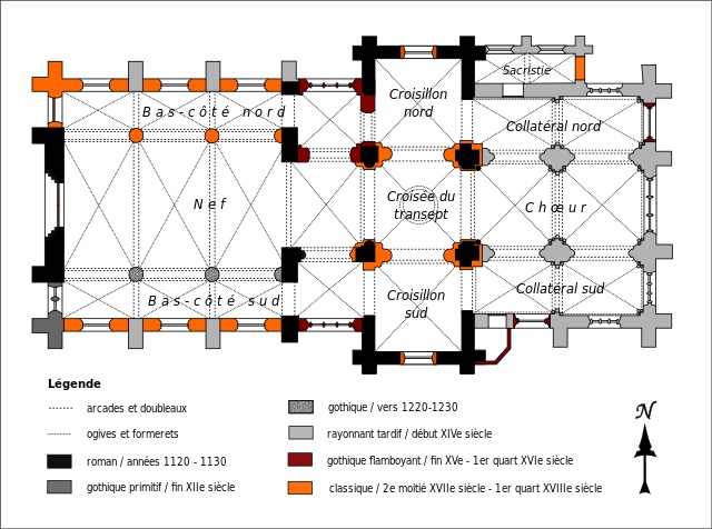 L'intérieur de l'église : le transept et la nef basilicale projetée