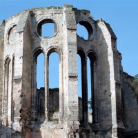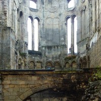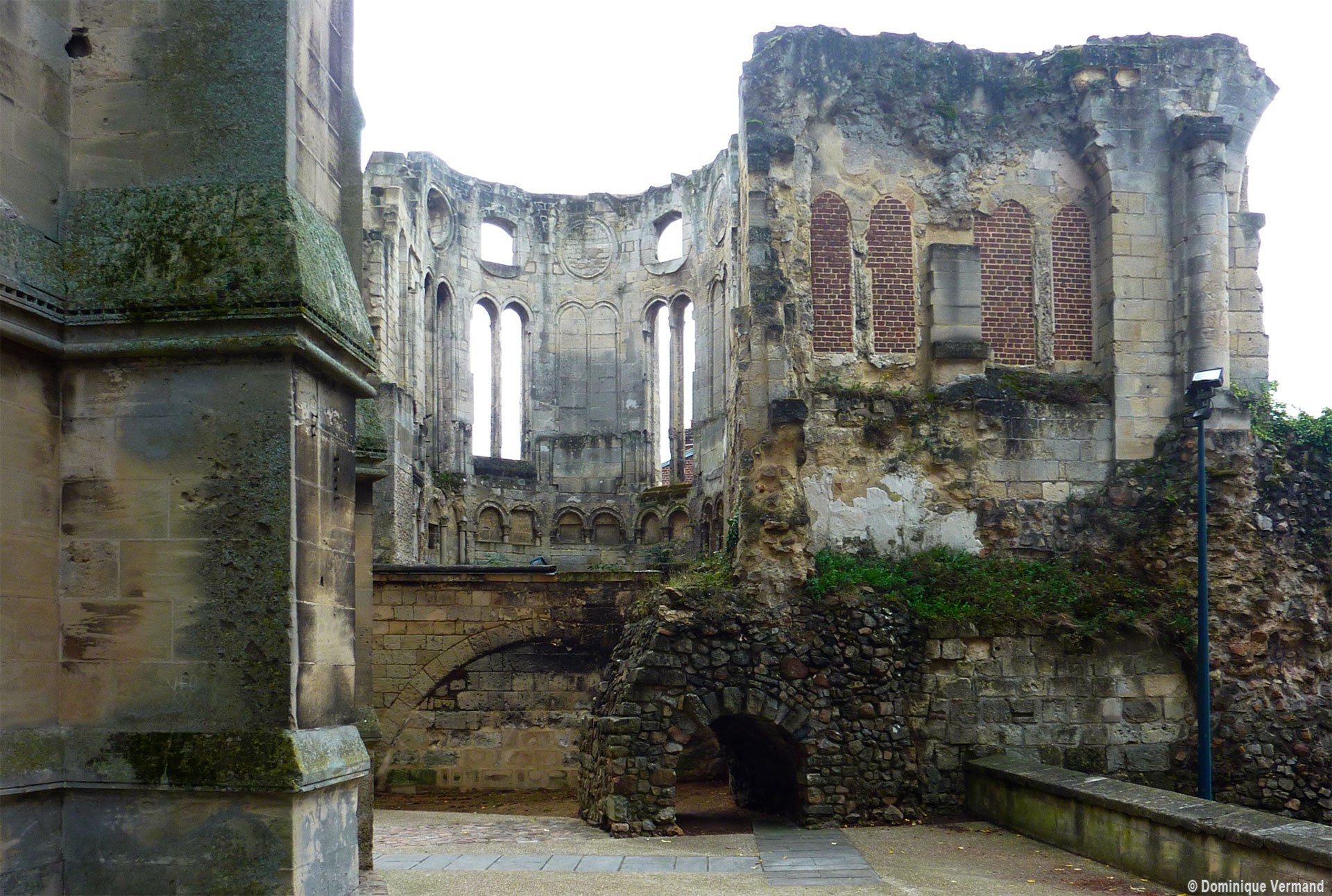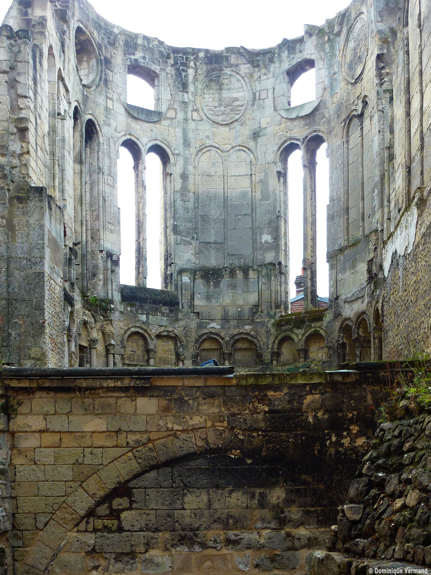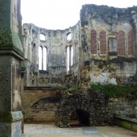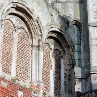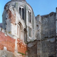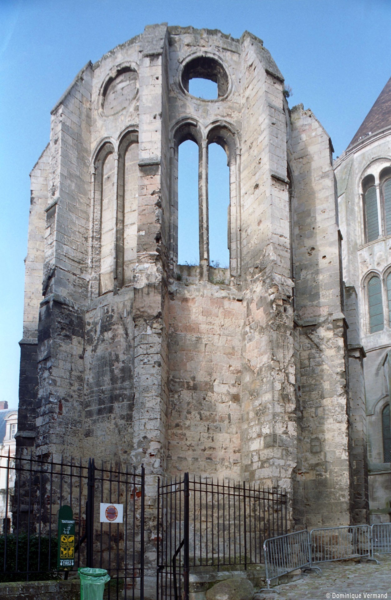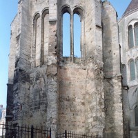 Dédiée à Saint-Benoît, elle était la chapelle privée de l’évêque et s’insérait entre le palais de ce dernier et la cathédrale. Elle a été stupidement mutilée par l’architecte Selmersheim à la fin du 19ème siècle pour dégager le bras sud du transept de la cathédrale, puis en grande partie détruite lors des bombardements de la Guerre 1914-1918.