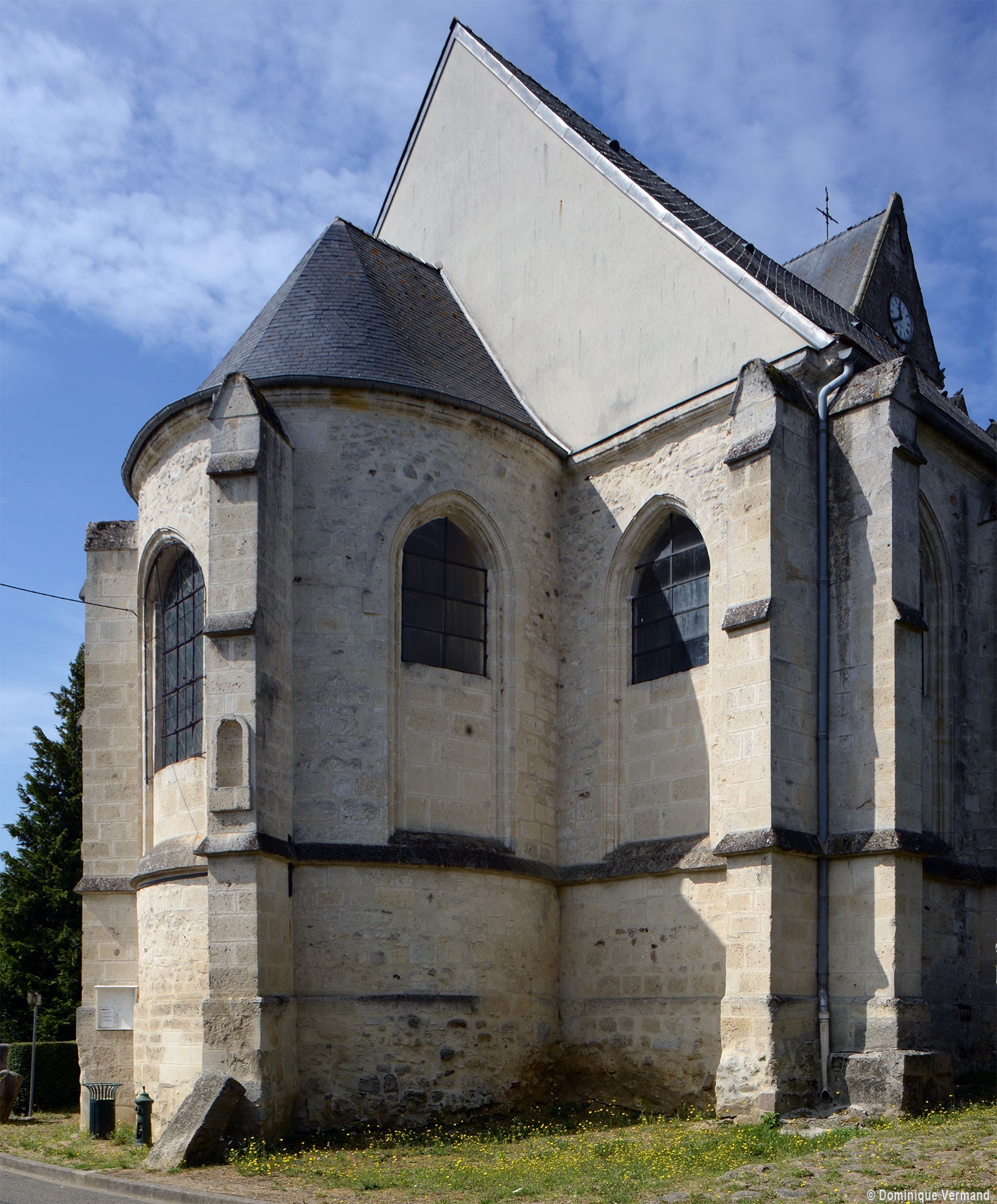 Saint-Denis est un édifice homogène, à la silhouette compacte, bâti au 17ème siècle dans un style qui mélange les apports du gothique tardif et de la Renaissance. Son plan s’inscrit tout entier dans un rectangle sur lequel fait seule saillie l’abside de plan curieusement outrepassé.