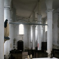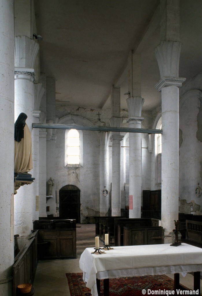 Deux files de piles circulaires le divise en trois nefs de cinq travées. La minceur des piles (50 cm), leur nombre et l’absence de voûtes créent, dès l’entrée, l’impression étonnante d’une “forêt de colonnes”. L’amorce de voûtes au-dessus des piles et la présence d’arcs formerets – reçus sur des culs-de-lampe – sur les murs périphériques prouvent qu’un voûtement avait été prévu et que les trois vaisseaux auraient été d’égale hauteur. Les chapiteaux au tailloir largement débordant sont traités avec le plus grand soin et relèvent déjà d’un goût classique.