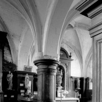 C’est au 14ème siècle que le choeur sera flanqué au sud d’une chapelle qui, partiellement reconstruite par la suite, a conservé de cette époque son mur oriental (mais pas le remplage de la fenêtre), le soubassement de son mur sud et, à son angle nord-ouest, un chapiteau avec tailloir à bec.