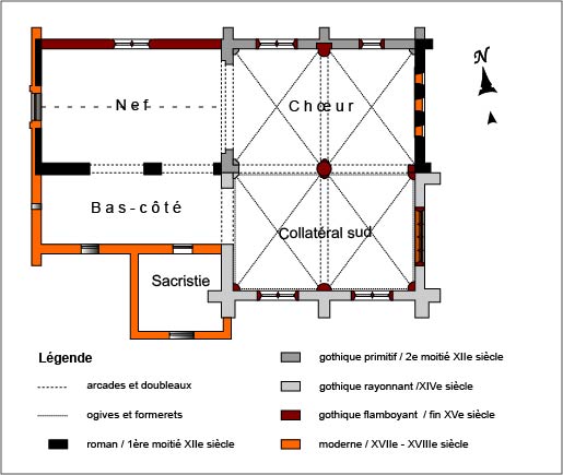 Ces éléments disparates montrent que l’église a eu beaucoup à souffrir de la Guerre de Cent Ans et c’est après celle-ci que le choeur et la chapelle ont été revoûtés ou partiellement reconstruits.