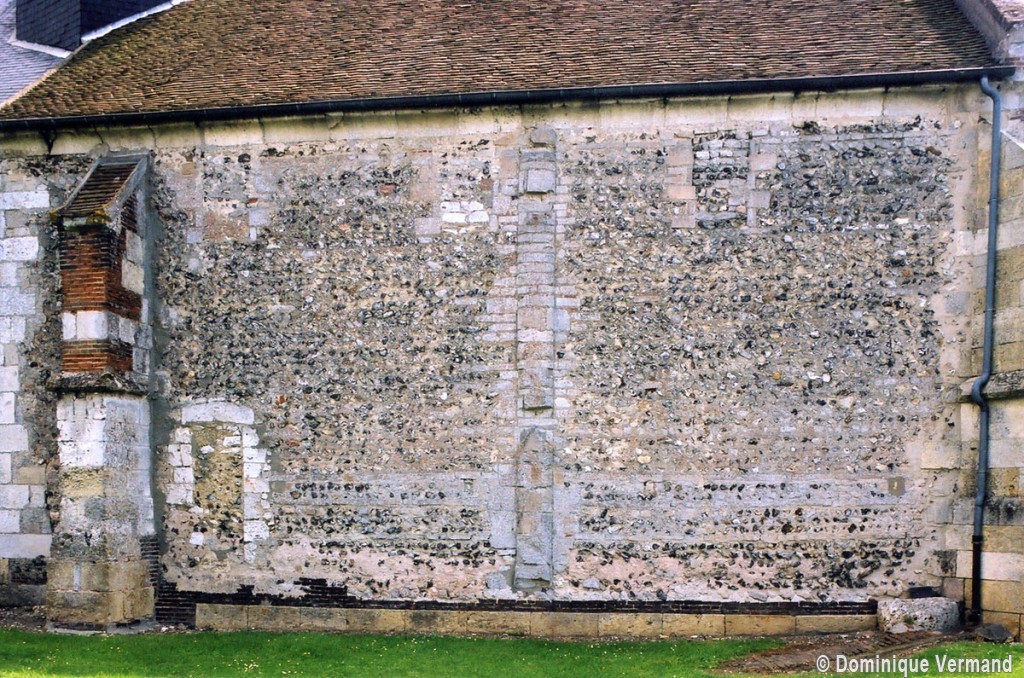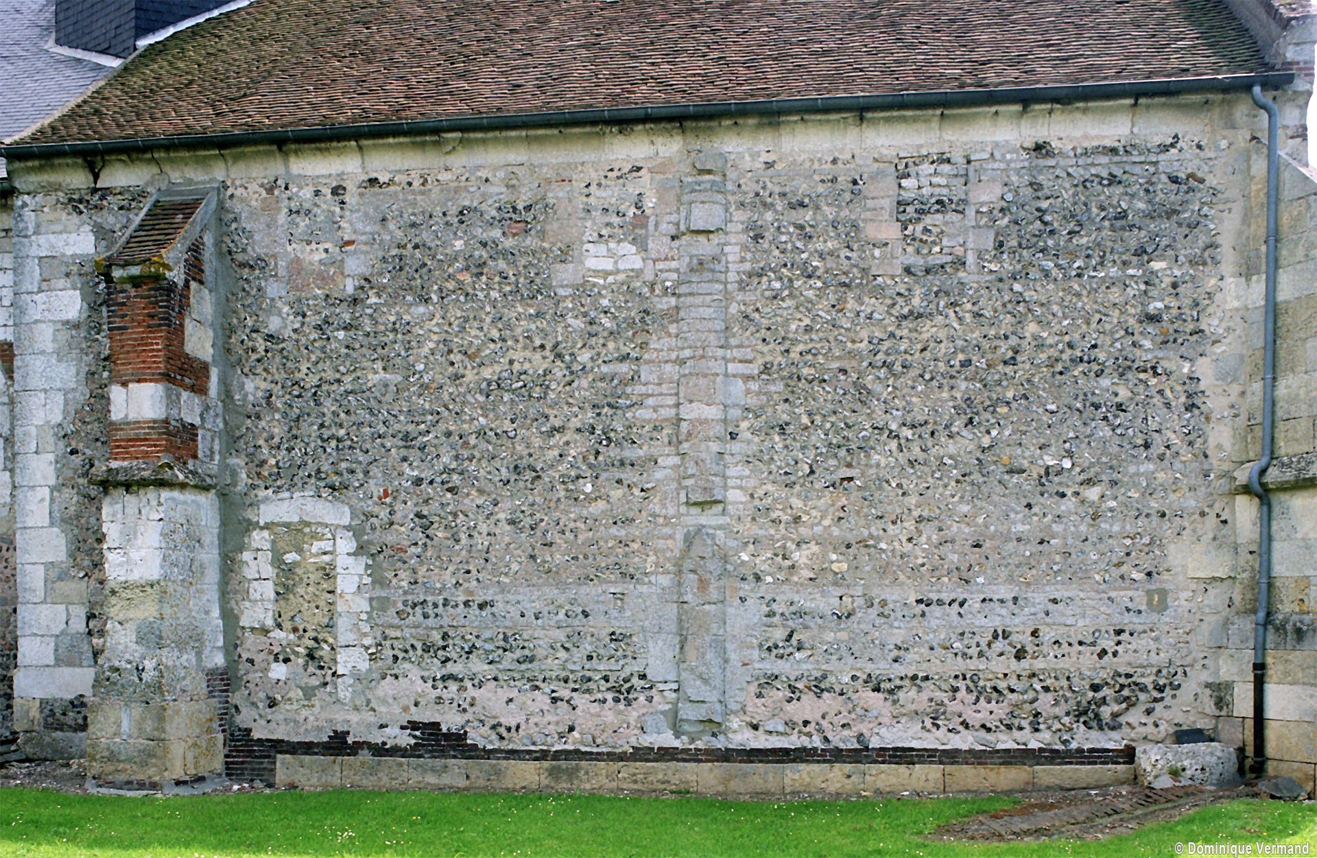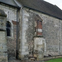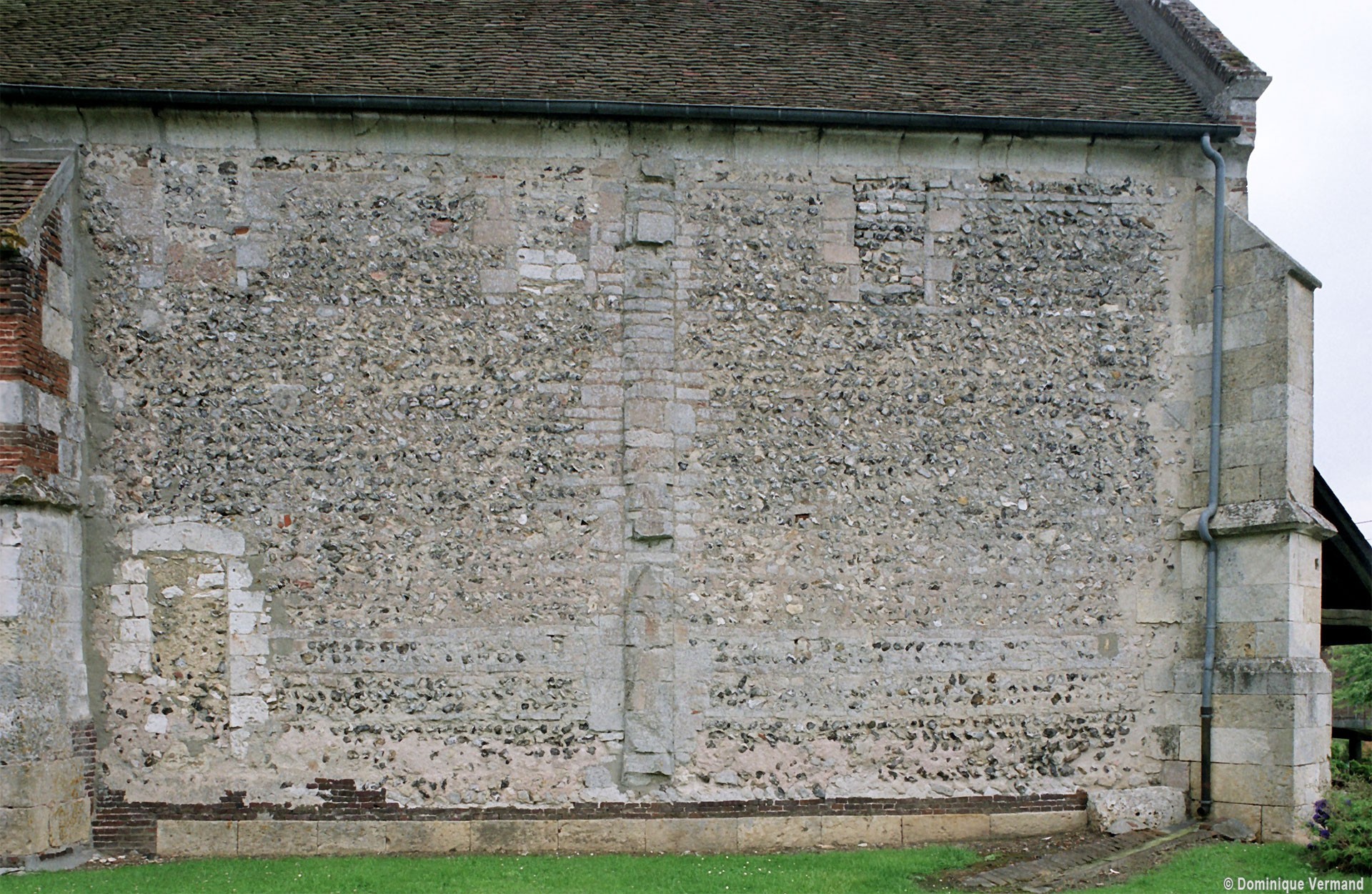 Le plan de l’église d’alors consistait donc en une nef unique suivie d’un chœur légèrement plus étroit. Toutes les caractéristiques que l’on peut observer – maçonneries mélangeant pierre et silex disposés parfois en arête de poisson ; alternance, en partie basse, de ces maçonneries avec de minces assises en pierre ; contrefort très plat aux arêtes arrondies et constitué pour l’essentiel d’assises très minces ; larges fenêtres (elles sont aujourd’hui bouchées et tronquées) appareillées en carreaux et boutisses très marqués – sont celles d’une construction pour le moins d’époque carolingienne. Il faut y voir, à coup sûr, les restes d’architecture religieuse les plus anciens de l’Oise.