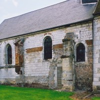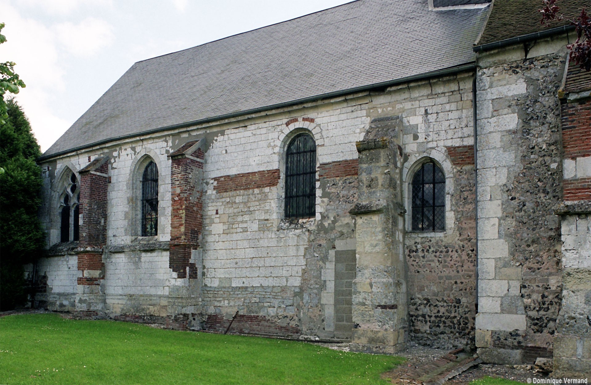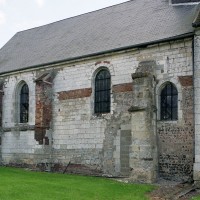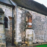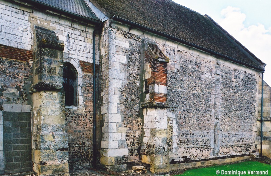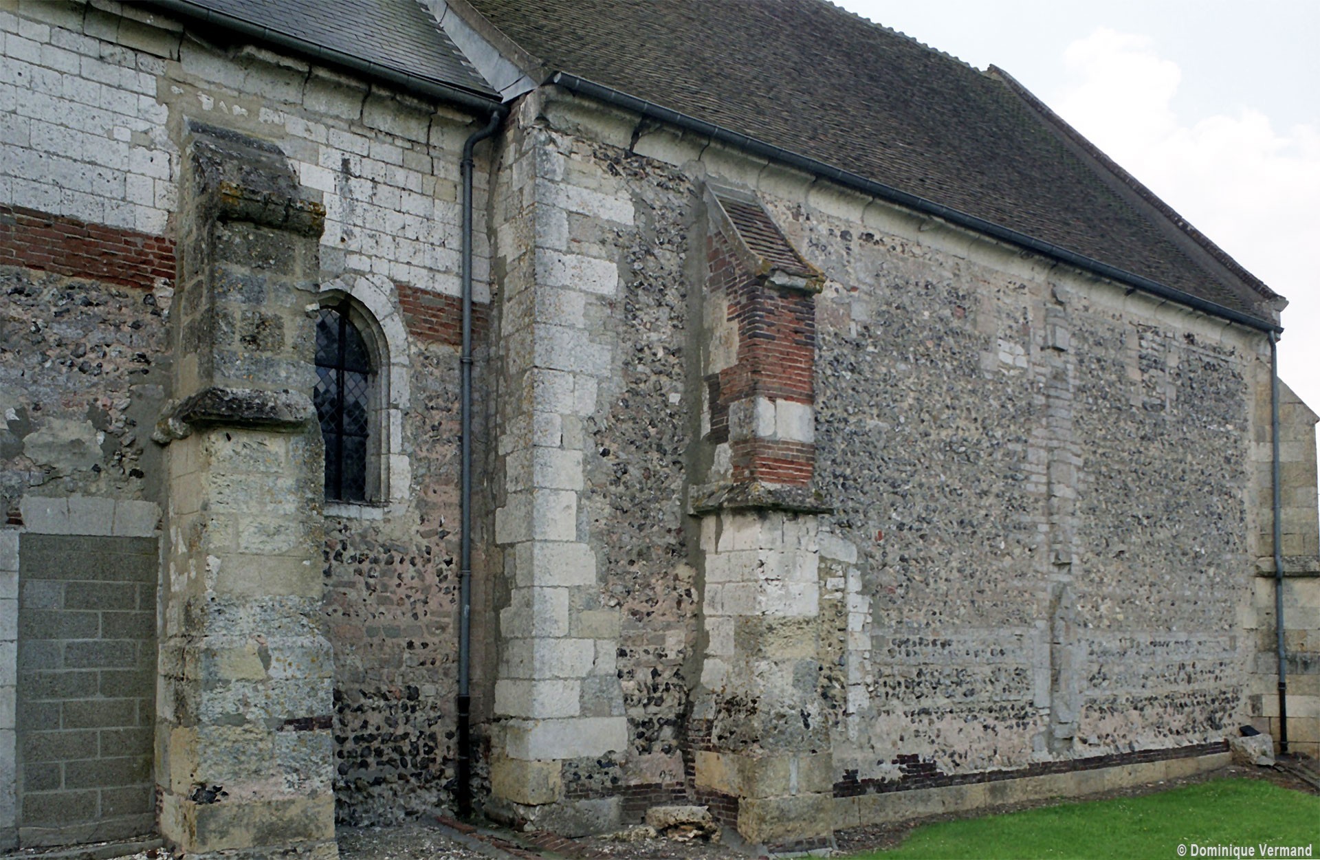 Le plan de l’église d’alors consistait donc en une nef unique suivie d’un chœur légèrement plus étroit. Toutes les caractéristiques que l’on peut observer – maçonneries mélangeant pierre et silex disposés parfois en arête de poisson ; alternance, en partie basse, de ces maçonneries avec de minces assises en pierre ; contrefort très plat aux arêtes arrondies et constitué pour l’essentiel d’assises très minces ; larges fenêtres (elles sont aujourd’hui bouchées et tronquées) appareillées en carreaux et boutisses très marqués – sont celles d’une construction pour le moins d’époque carolingienne. Il faut y voir, à coup sûr, les restes d’architecture religieuse les plus anciens de l’Oise.