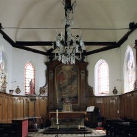 Cette église sera complètement reprise au 16ème siècle, d’abord avec l’élargissement vers le sud de la nef et la construction d’un nouveau chœur terminé par un chevet à trois côtés. Tout en longueur et légèrement désaxé vers le nord, ce dernier est couvert d’une belle charpente de même époque avec blochets sculptés de double masques. Les fenêtres alternent de simples lancettes avec d’autres plus large et comportant un réseau flamboyant.