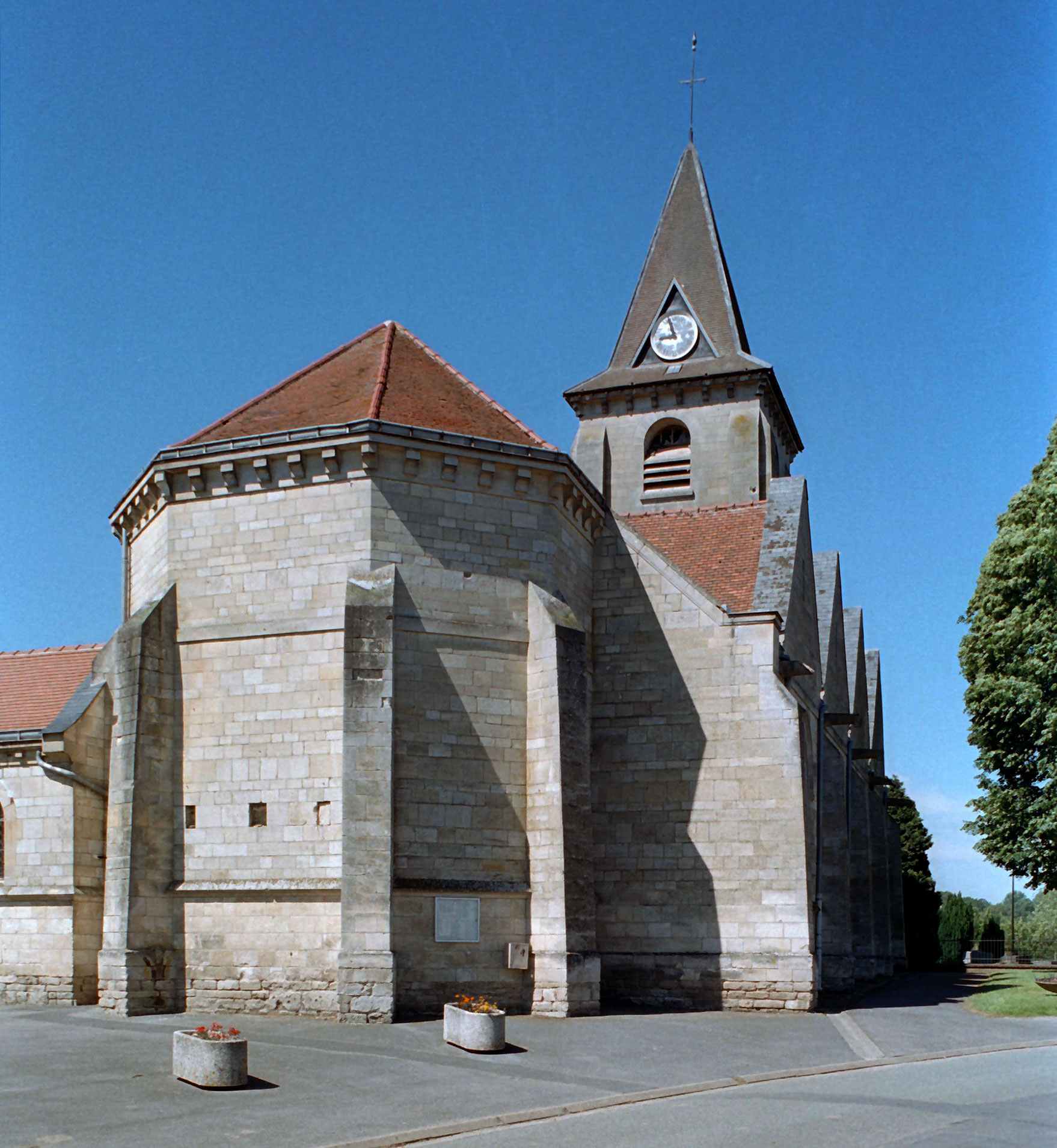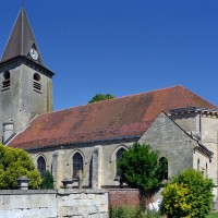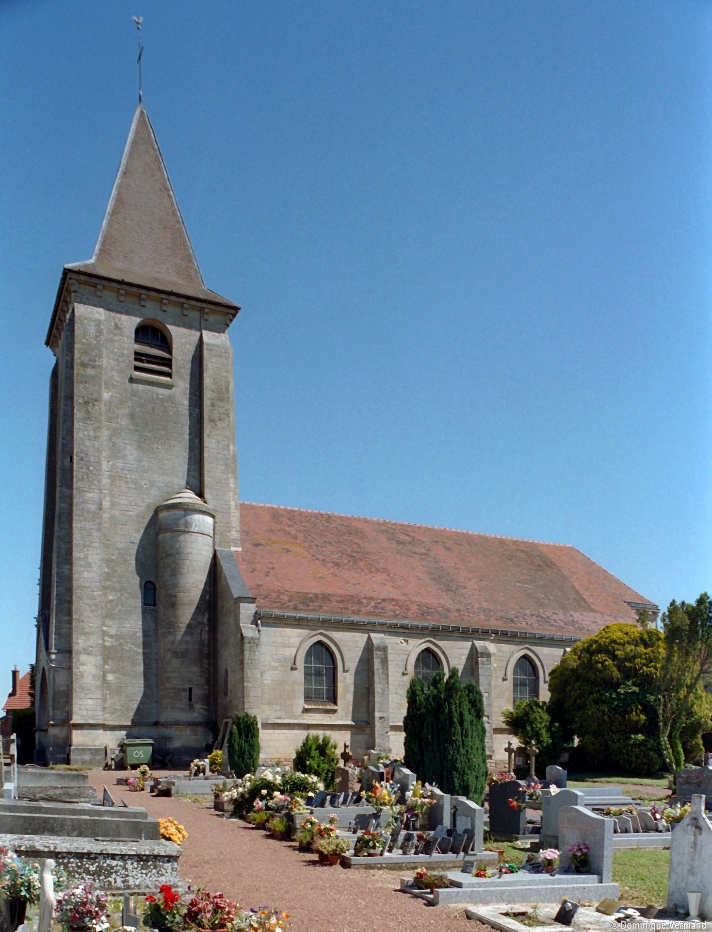 Saint-Martin a été entièrement reconstruite après la Guerre 14-18 – la bénédiction de l’église achevée est intervenue le 18 juillet 1926 – avec le souci d’évoquer, au moins dans sa silhouette extérieure, l’église précédente, qui était du 16ème siècle. C’est notamment le cas de l’austère clocher porche et des petites toitures en bâtière qui, au nord, correspondent à chaque travée du bas-côté.