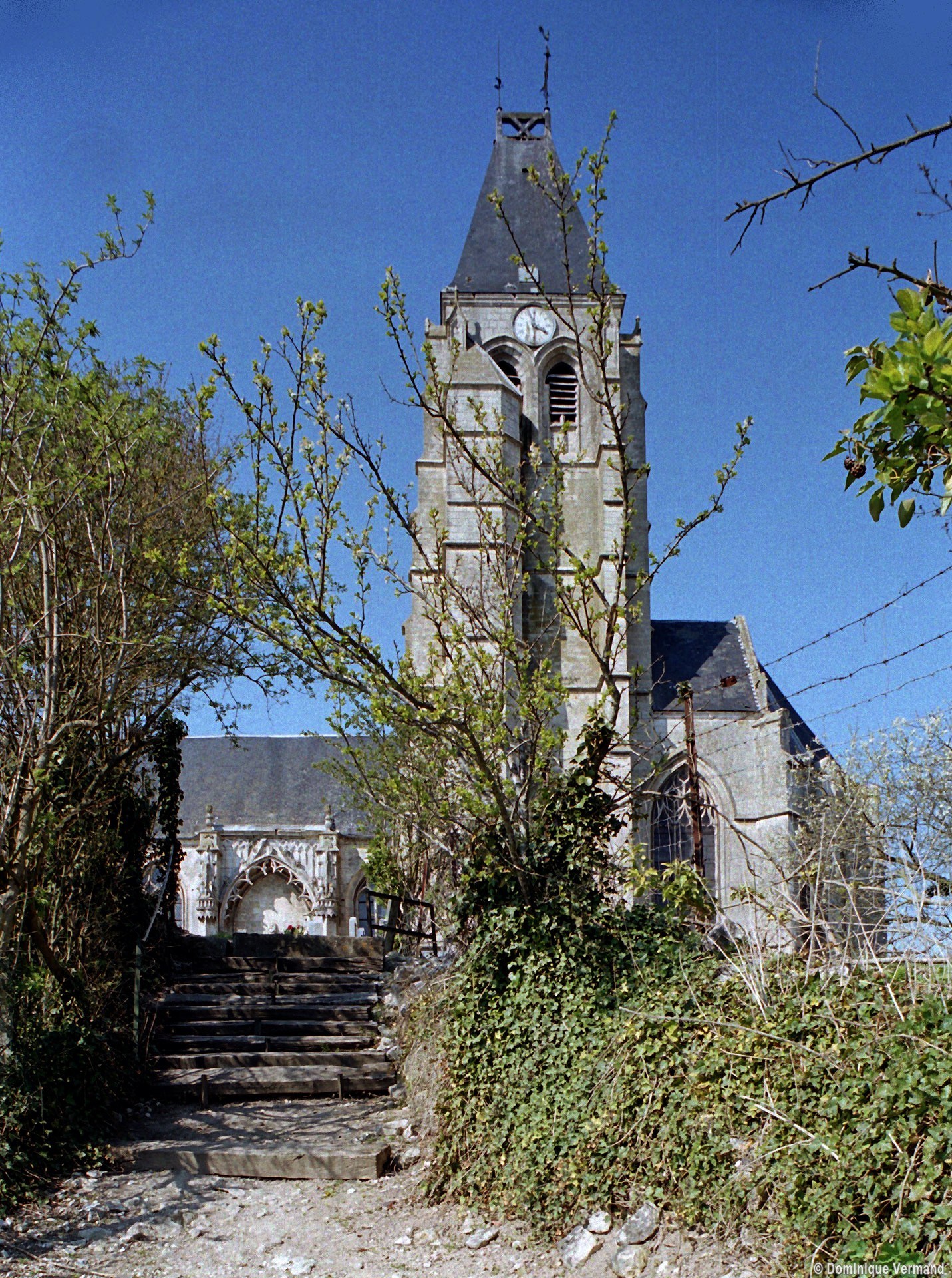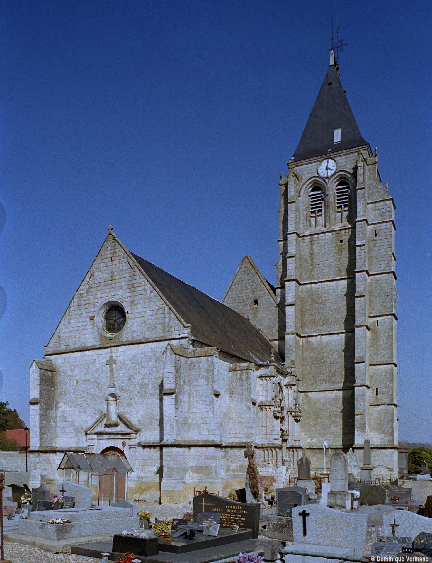 Dominant la vallée de la Noye que traversait autrefois, après s’être réunies ici même, les voies romaines Beauvais-Amiens et Saint-Martin-Longueau-Amiens, l’église Saint-Denis est bâtie au sommet d’une butte dont les textes nous apprennent qu’elle était déjà fortifiée au 9ème siècle. La Guerre de Cent Ans sera fatale au château, dont rien ne subsiste aujourd’hui.