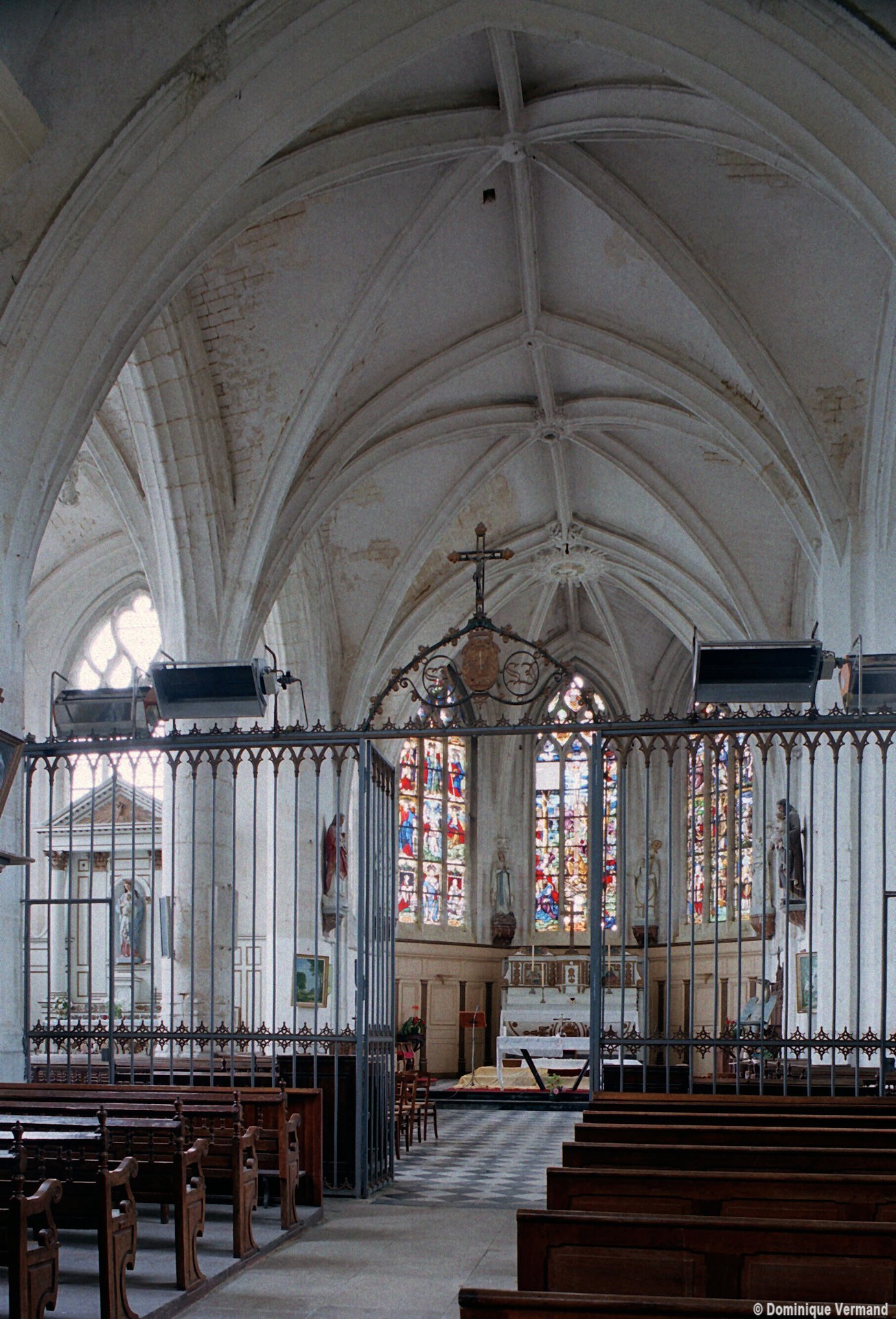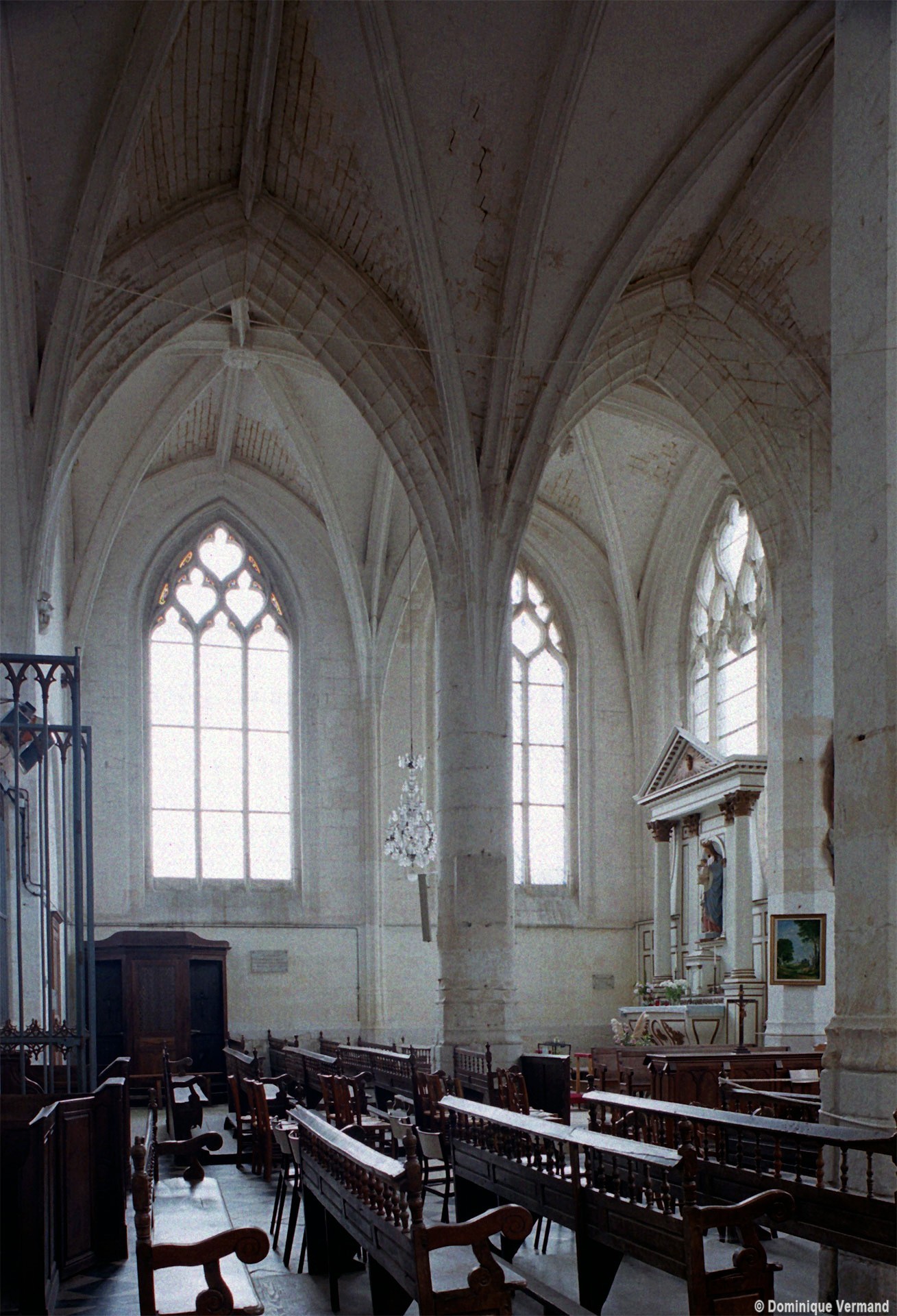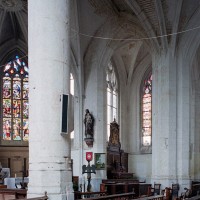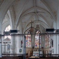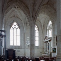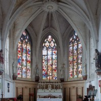 Très élégant, le chœur communique avec les chapelles par des doubles arcades montant jusqu’aux voûtes et retombant au centre sur une mince pile circulaire, créant ainsi un espace ouvert et unifié suivant le schéma du choeur-halle. Le vaisseau central est donc aveugle, la lumière parvenant par les fenêtres ouvertes en périphérie. La plupart des voûtes comportent, selon l’usage du gothique tardif, une nervure supplémentaire appelée lierne. La voûte de l’abside a conservé sa clef ornée de l’Agneau pascal. Au-dessus d’un soubassement nu, les fenêtres occupent tout l’espace compris entre la voûte et ses retombées.
