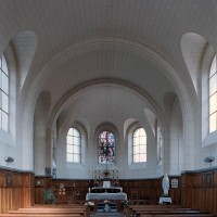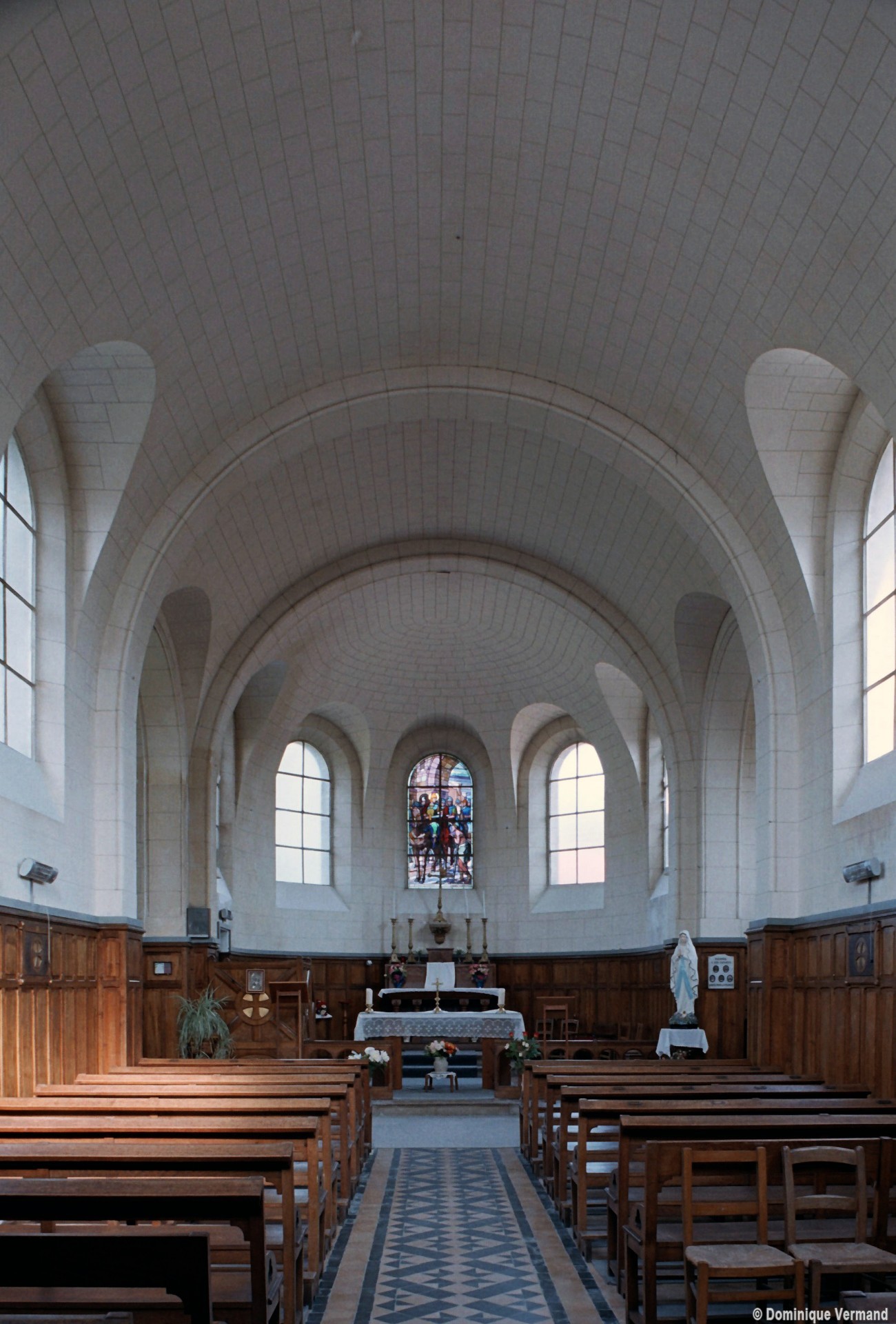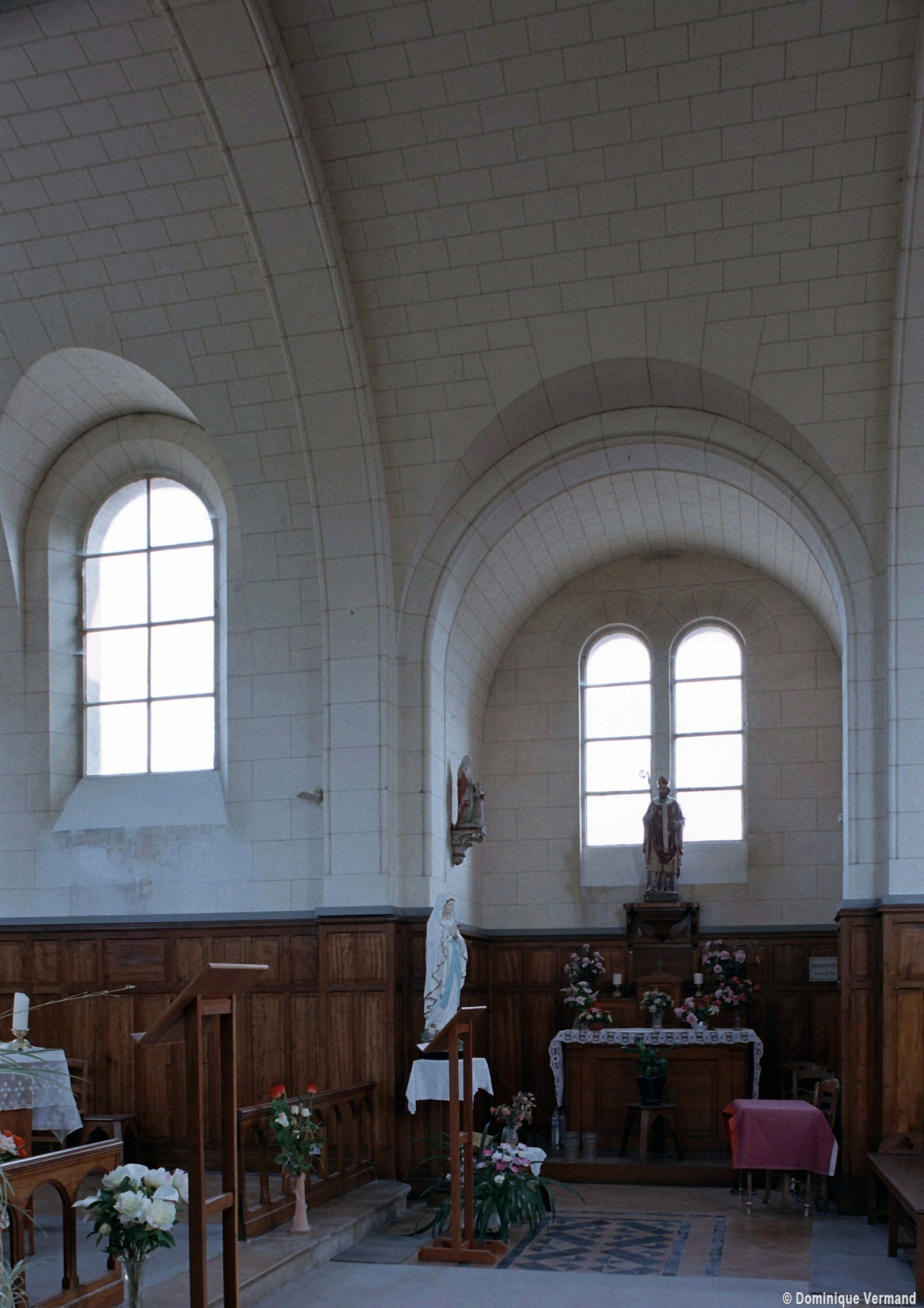 Construite en briques claires, la nouvelle église se compose simplement d’une nef et d’un choeur pentagonal, entre lesquels s’intercale un faux transept. Couverte d’un berceau que pénètrent les lunettes des fenêtres et des voûtes des croisillons, et de style vaguement néo-roman, elle n’a guère pour seule originalité que l’appareillage en escalier des pignons de la façade et des croisillons. La fenêtre axiale du choeur comporte un vitrail du 20ème siècle consacré à saint Martin (2008).