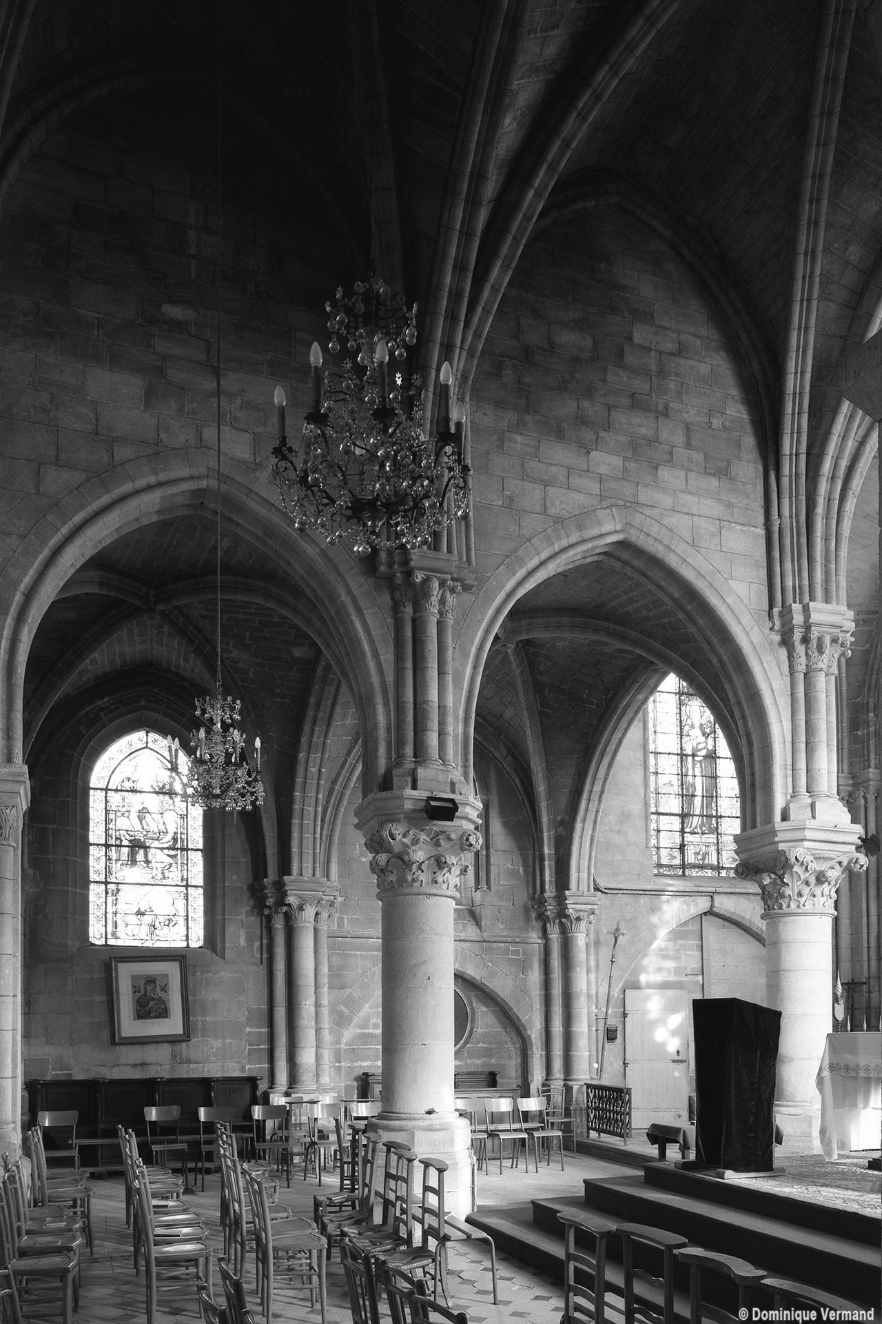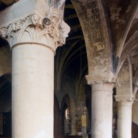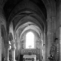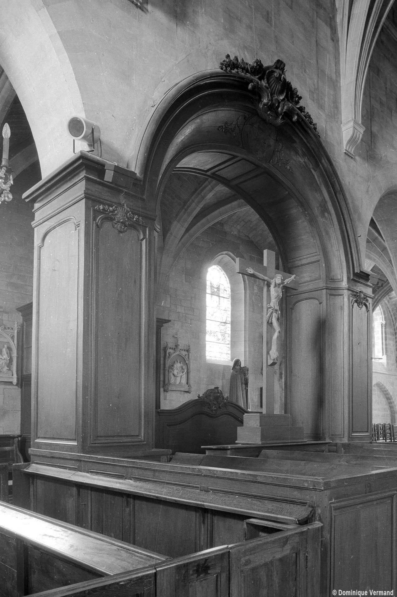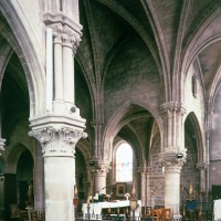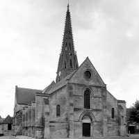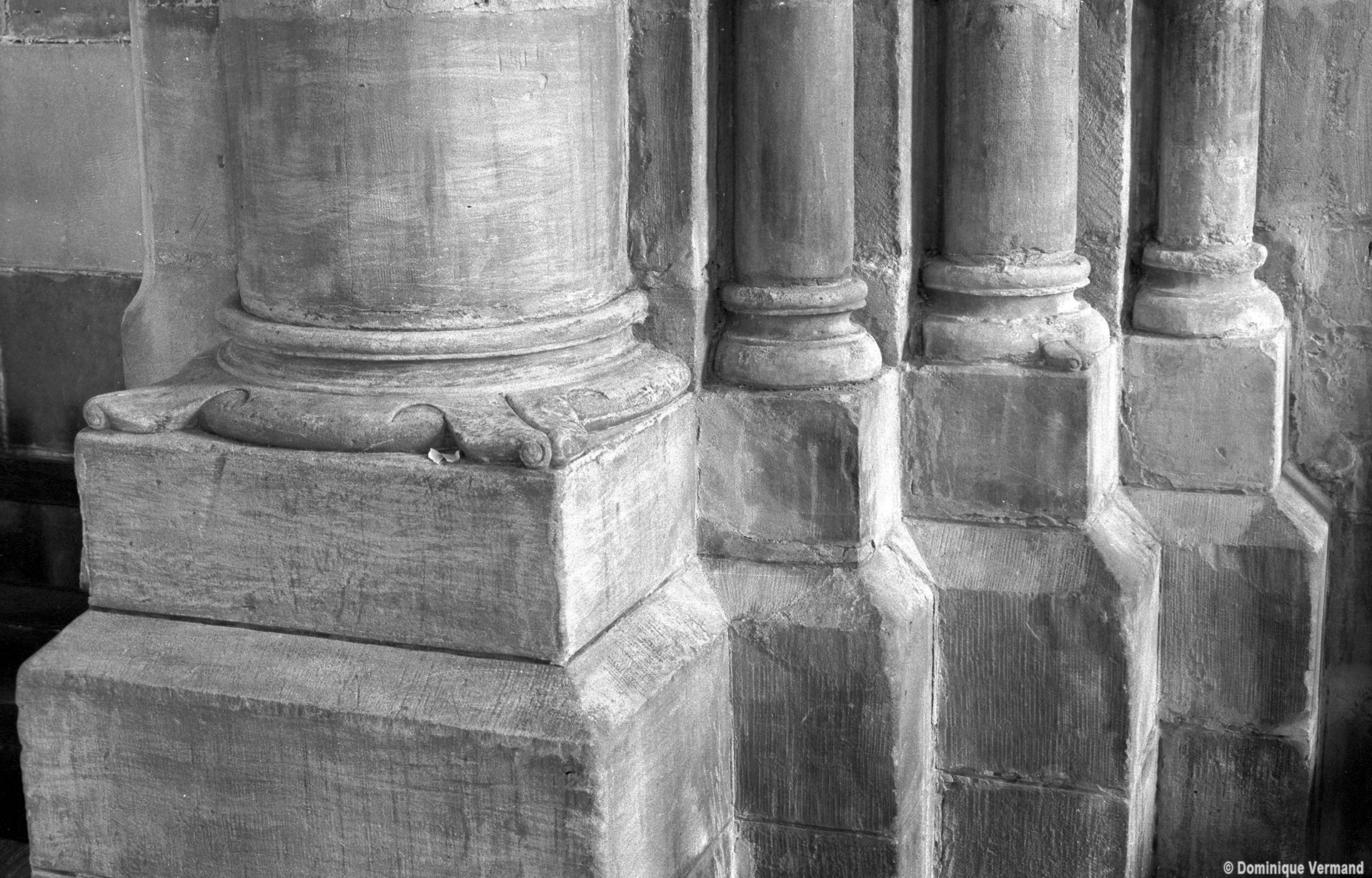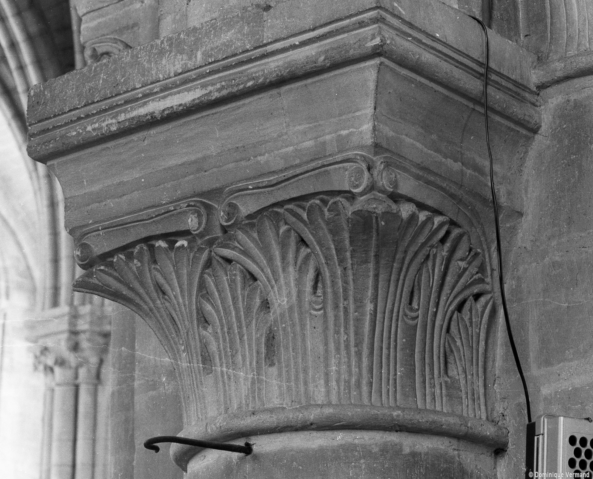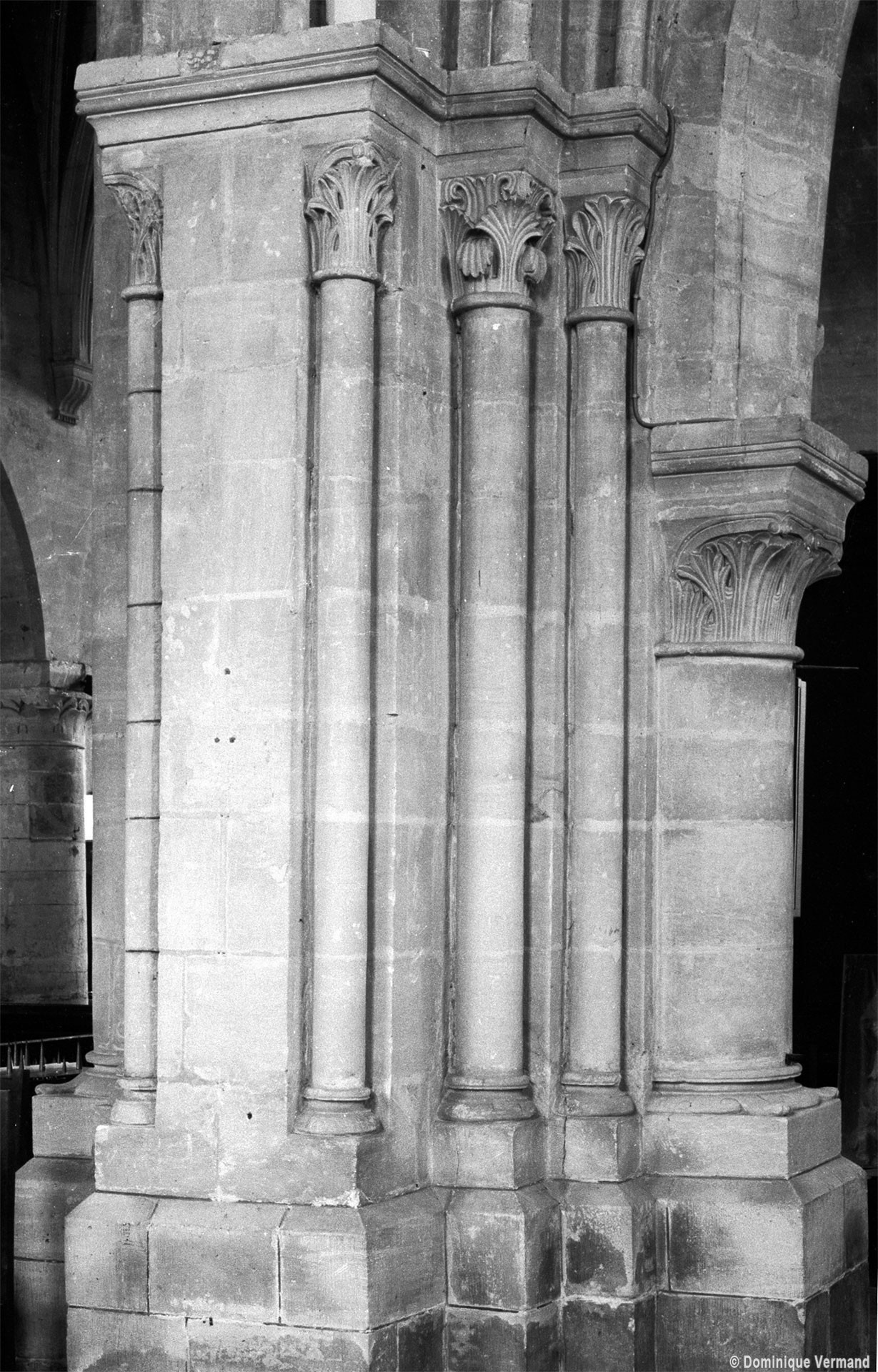 De l’église construite dans la seconde moitié du 12ème siècle restent la nef, la partie ouest du transept et le clocher. Couverte de voûtes d’ogives avec liernes et tiercerons au 17ème siècle, la nef ne comportait à l’origine q’une simple charpente. Ses cinq travées communiquent avec les bas-côtés par des arcades brisées retombant sur des piles circulaires, une véritable rareté dans la région à cette époque. Il faut y voir l’influence de la cathédrale de Senlis, également présente dans le décor des chapiteaux (feuilles d’acanthe, feuilles plates s’enroulant en boule, tiges perlées…) Aujourd’hui bouchées, les fenêtres s’ouvraient dans l’axe des piles et non des arcades. Fréquent dans la région, ce parti évitait de monter trop haut les murs gouttereaux, fortement sollicités par le poids de la charpente.