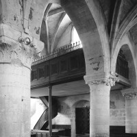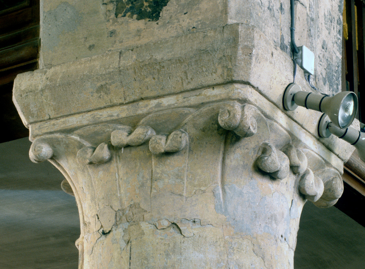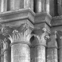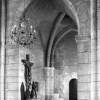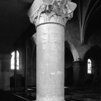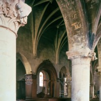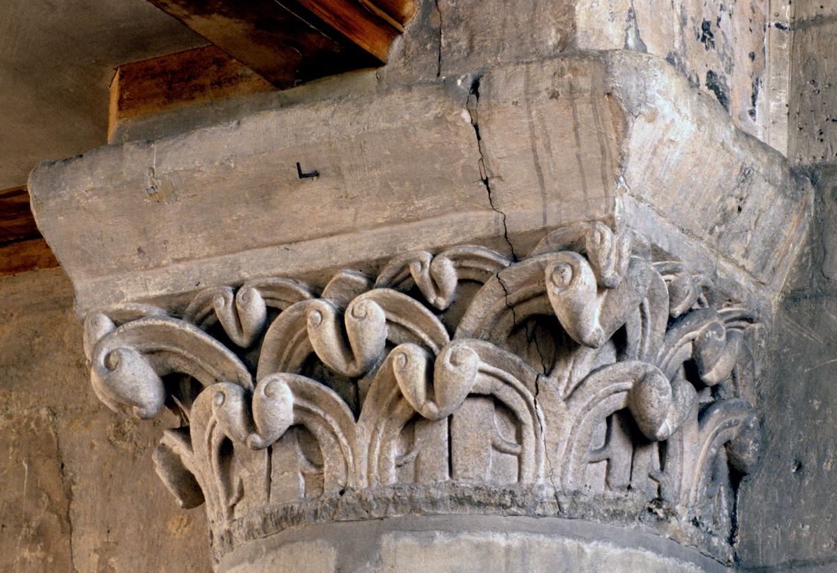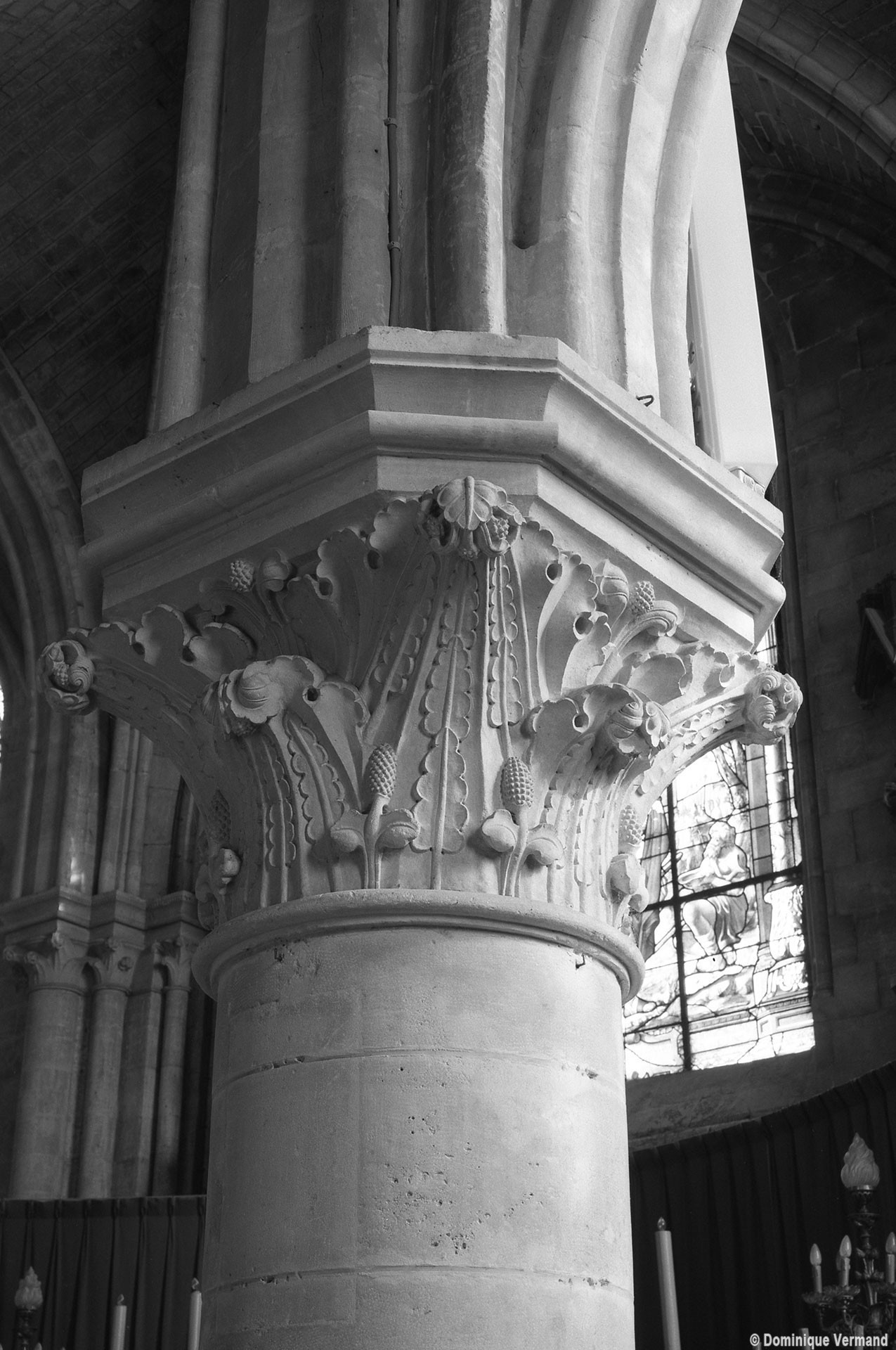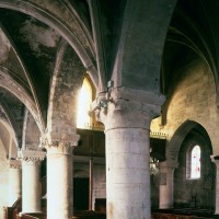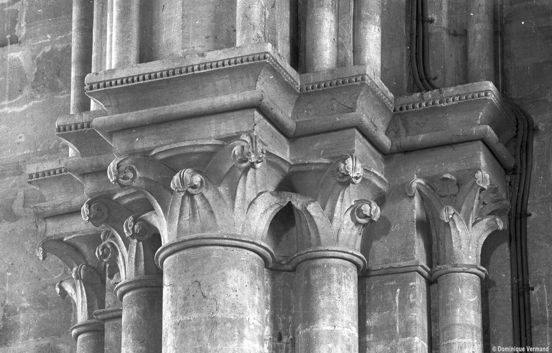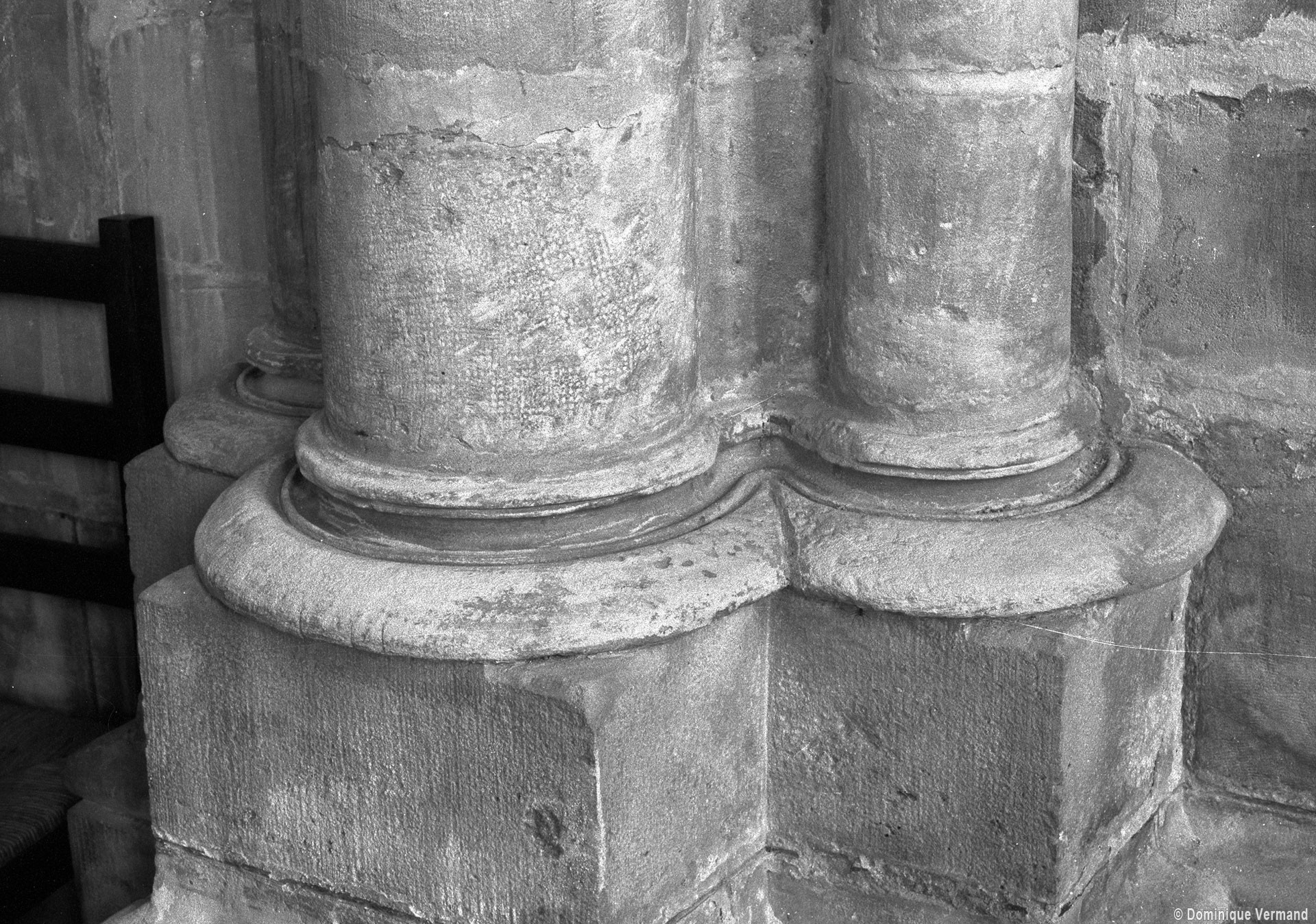 De l’église construite dans la seconde moitié du 12ème siècle restent la nef, la partie ouest du transept et le clocher. Couverte de voûtes d’ogives avec liernes et tiercerons au 17ème siècle, la nef ne comportait à l’origine q’une simple charpente. Ses cinq travées communiquent avec les bas-côtés par des arcades brisées retombant sur des piles circulaires, une véritable rareté dans la région à cette époque. Il faut y voir l’influence de la cathédrale de Senlis, également présente dans le décor des chapiteaux (feuilles d’acanthe, feuilles plates s’enroulant en boule, tiges perlées…) Aujourd’hui bouchées, les fenêtres s’ouvraient dans l’axe des piles et non des arcades. Fréquent dans la région, ce parti évitait de monter trop haut les murs gouttereaux, fortement sollicités par le poids de la charpente.
