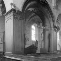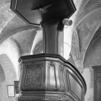 Le mobilier comporte une cuve baptismale datée de 1570 ainsi qu’une chaire à prêcher et un banc d’oeuvre, beau travail du 18ème siècle. L’église possédait un exceptionnel devant d’autel de la seconde moitié du 14ème siècle, consacré à la Vierge et représentant l’Annonciation, la Visitation et la Nativité. Il est aujourd’hui présenté au Musée de Cluny, à Paris (2002, modifié 2019).
