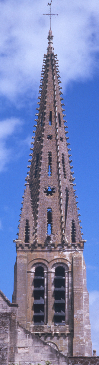 Le clocher du 12ème siècle et la flèche du 16ème siècle