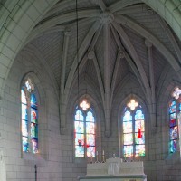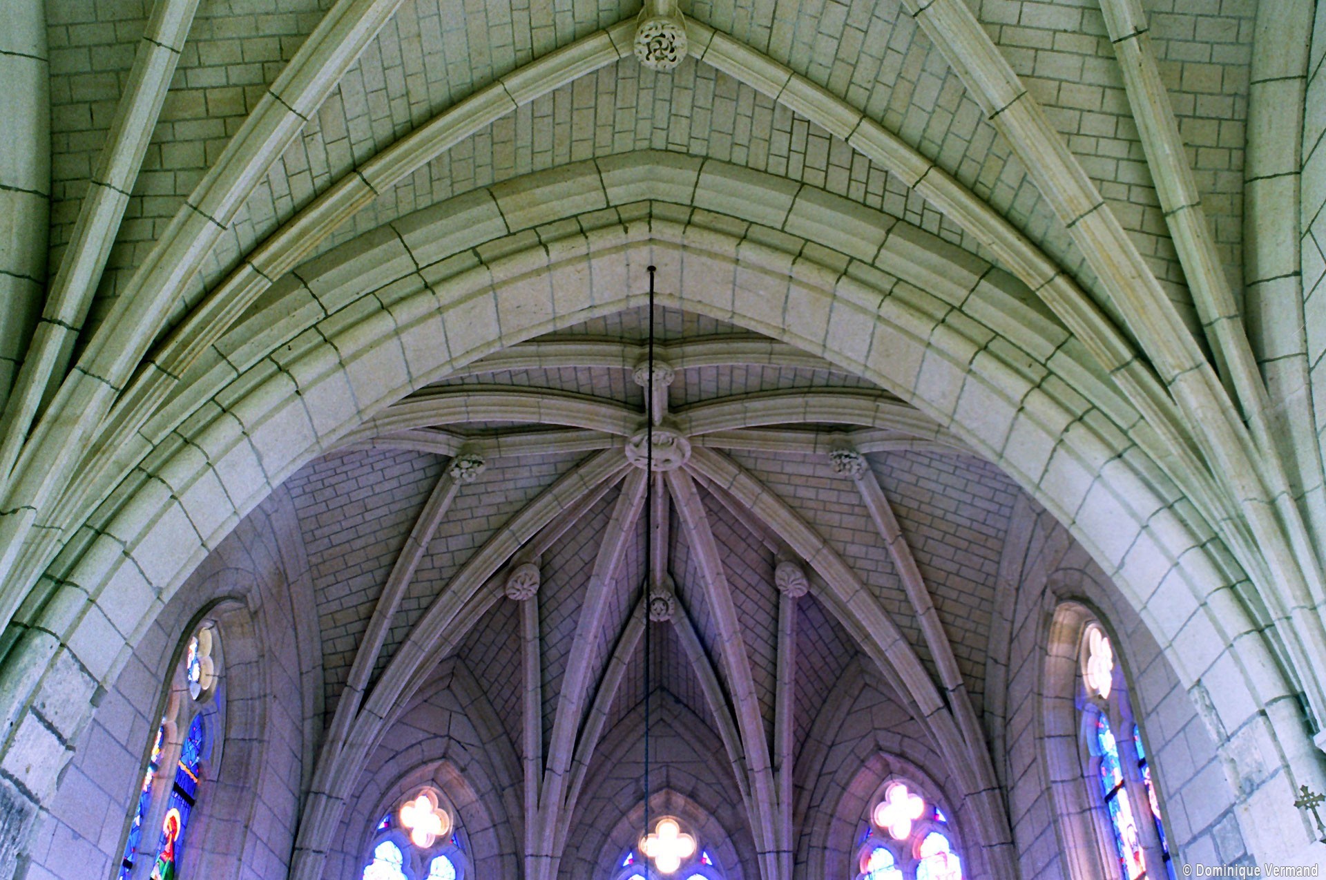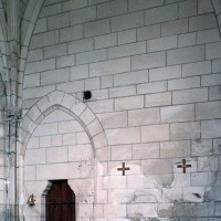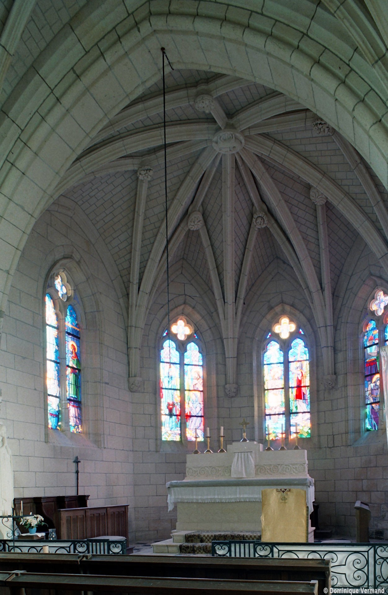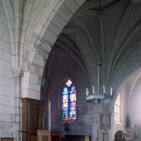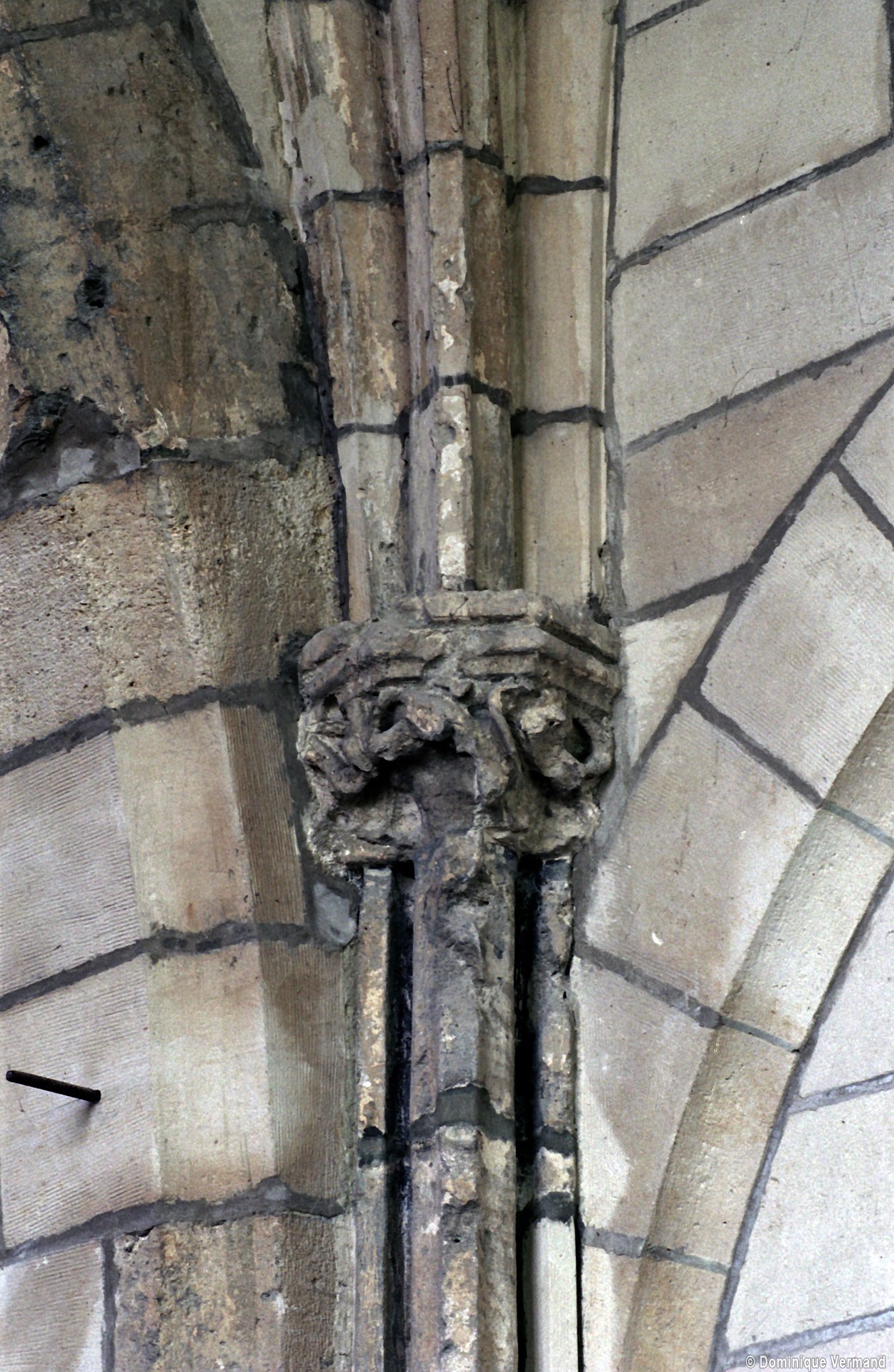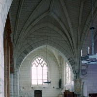 Lorsqu’elle était complète, l’église était constituée d’une nef de quatre travées avec bas-côtés, d’un transept saillant et d’un choeur pentagonal. Les arcades de la nef – qui était aveugle – étaient reçues sur des piles circulaires et l’ensemble était voûté d’ogives. Dans les croisillons, les ogives et formerets des voûtes sont reçus sur des faisceaux de trois colonnettes à profil prismatique par l’intermédiaire d’un unique chapiteau formant une petite frise sculptée. Les voûtes de la croisée et du choeur se compliquent de liernes et de tiercerons, avec clefs sculptées, et forment un ensemble du plus bel effet.
