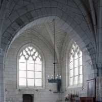 Partout refaites, les fenêtres comportent un riche réseau flamboyant dans les croisillons, mais adoptent ailleurs un réseau de style gothique rayonnant qui n’est pas conforme à celui d’origine, du moins en ce qui concerne le choeur. Relativement épargnée, la partie centrale de la façade superpose un portail en anse de panier, finement réalisé, et une fenêtre à deux lancettes et un quadrilobe.