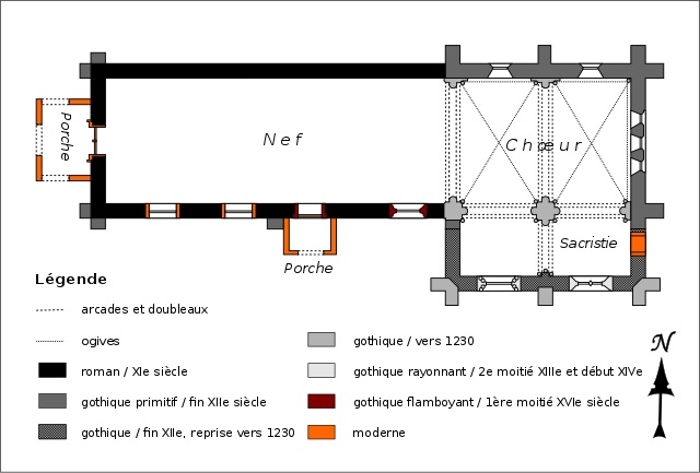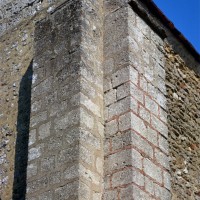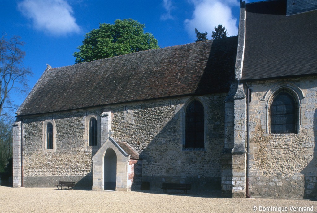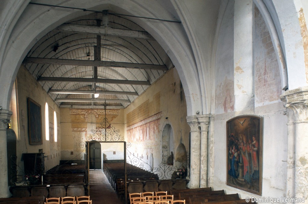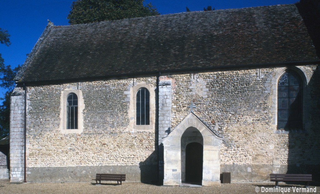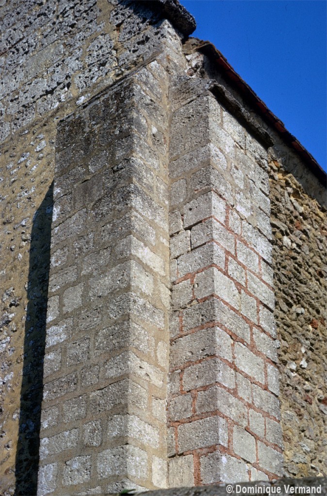 Particulièrement représentative d’un type d’église rurale fort répandu dans le Beauvaisis au 11ème siècle, l’importante nef unique présente un magnifique exemple d’opus spicatum (pierres appareillées en épi) qu’il faut toutefois se garder de vieillir exagérément car son usage sera fréquent jusqu’à la fin du 11ème siècle alors que l’appareil cubique (petites pierres carrées de tradition romaine et carolingienne) ne sera en principe plus mis en œuvre après le premier tiers du même siècle. Les anciennes ouvertures, bien que bouchées, restent parfaitement lisibles. Leur unique ébrasement intérieur, de même que les contreforts plats qui épaulent le mur sud et la façade sont conformes à l’usage du temps. Le mur nord ne comporte ni fenêtres ni contreforts.